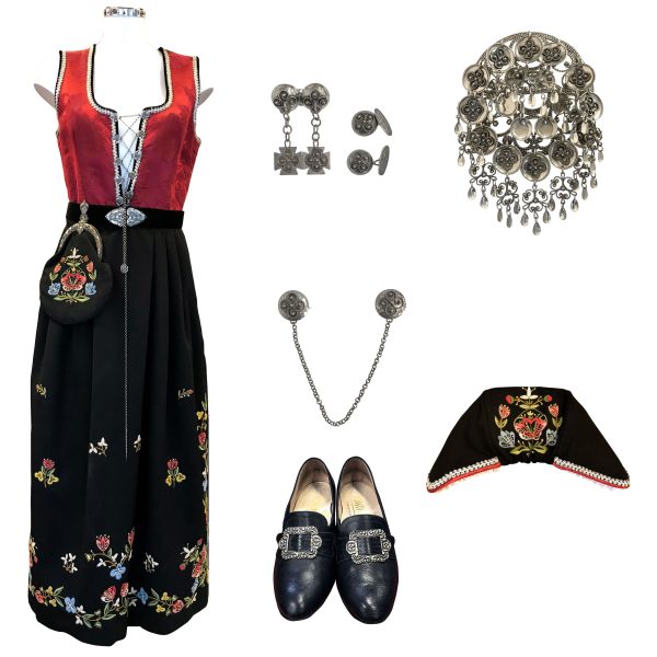 Halssmykke til bunad, diamant, synt. rubin, sølv, gull