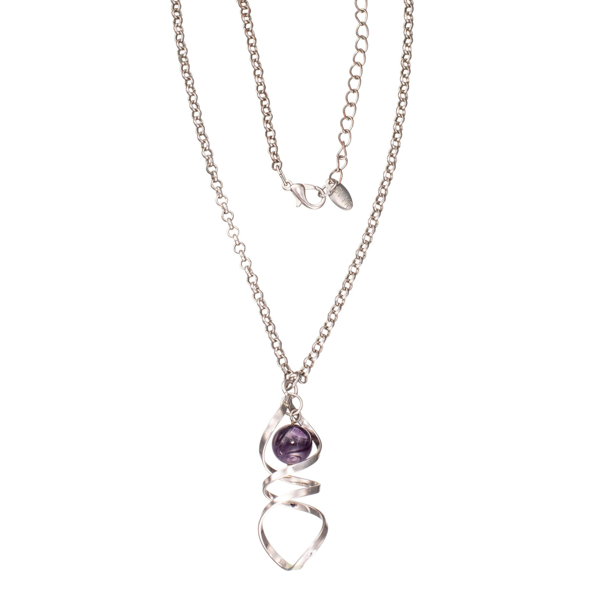 Bijouteri: Anheng med ekte ametyst. Medfølger opprinnelig kjede. Hummerklolås. Uedelt metall. Merket «LBVYR» (LABORATOIRES de BIOLOGIE VEGETALE YVES ROCHER). Frankrike. Sent 1900-tallet til tidl. 2000-tallet.