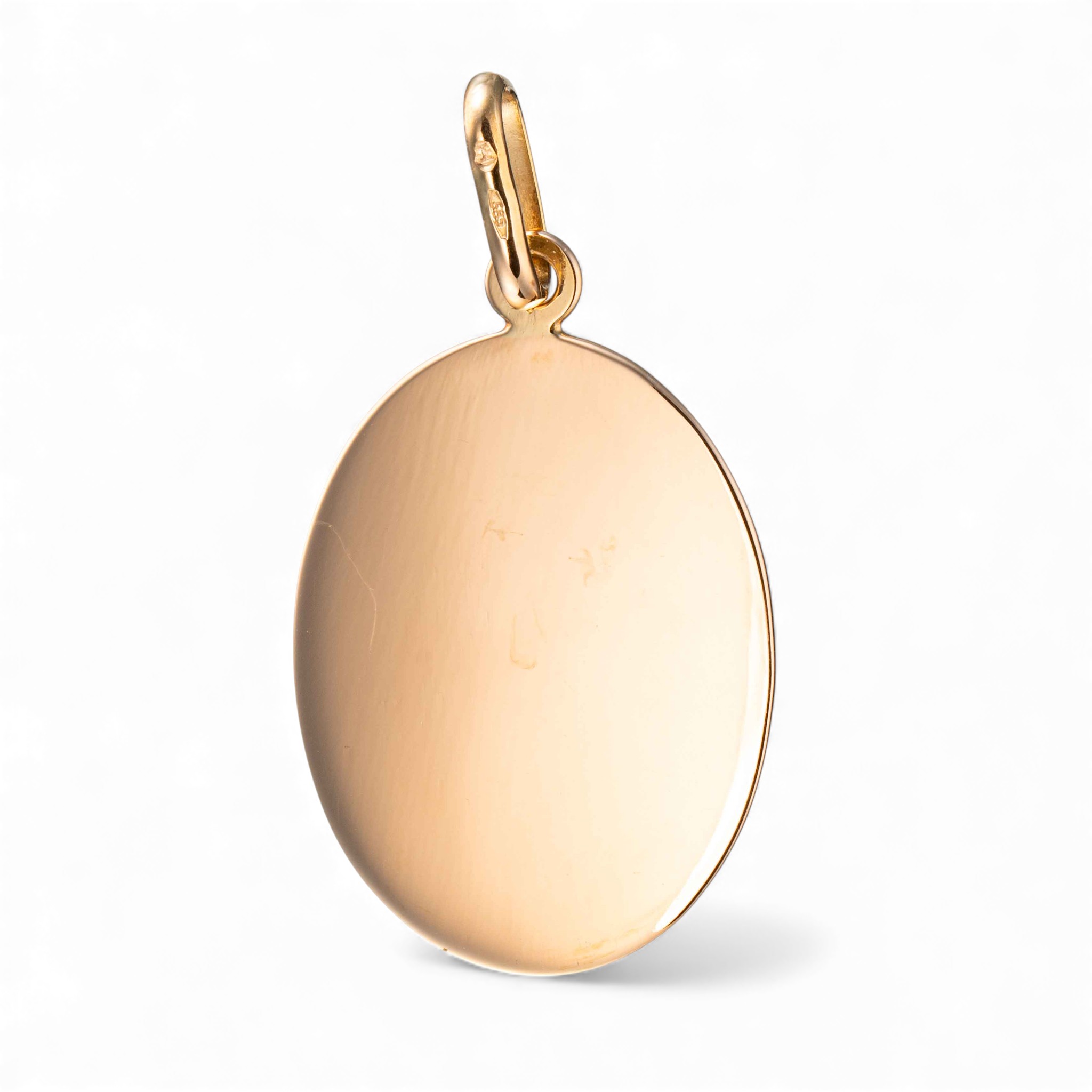 Stort anheng. Flate i glatt, oval og massiv utførelse. Ansvarsmerket for Ivar T. Holth. Oslo. 1900-tallets andre halvdel.