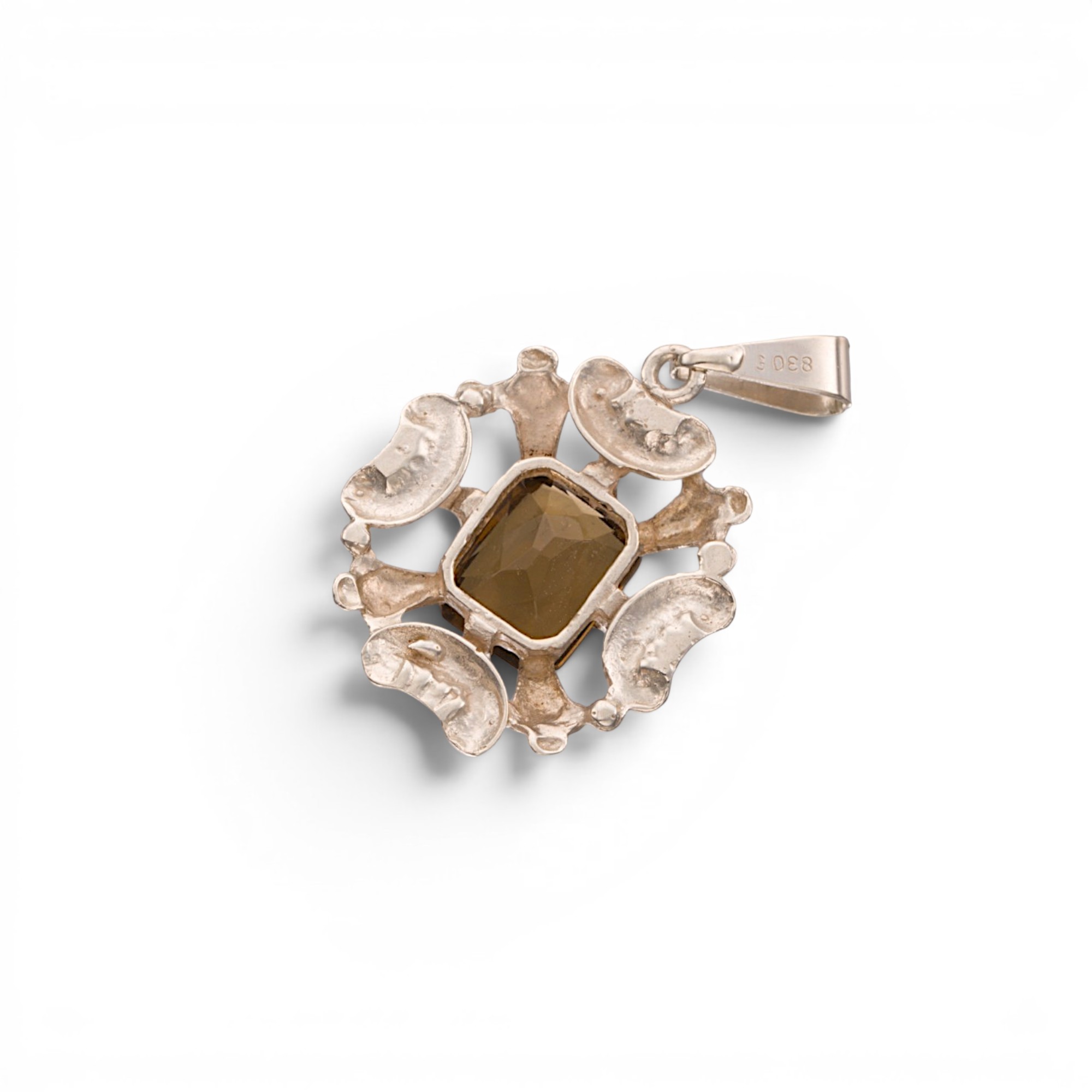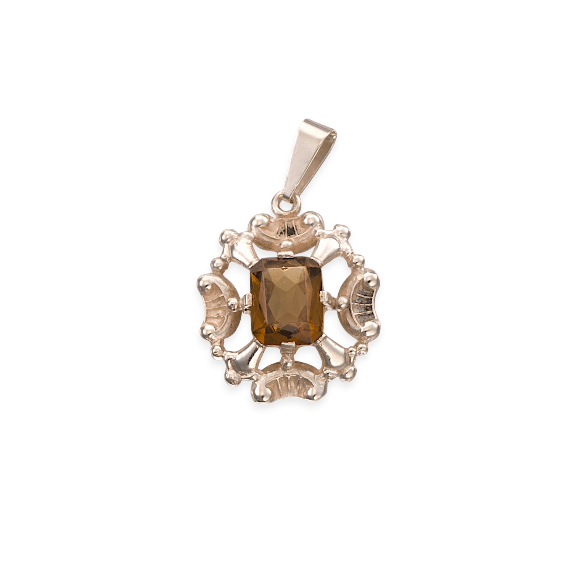 Anheng med fasettert, brunt glass. Lødighetsstemplet. Norge. 1900-tallets andre halvdel.