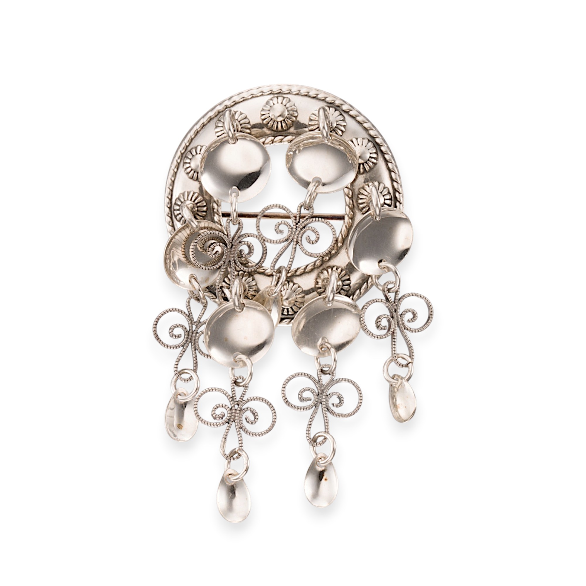 Barnesølje i sølv. Lauv med filigran og drypplauv. Ansvarsmerket for Odd Frisch. Oslo. 1900-tallets andre halvdel.