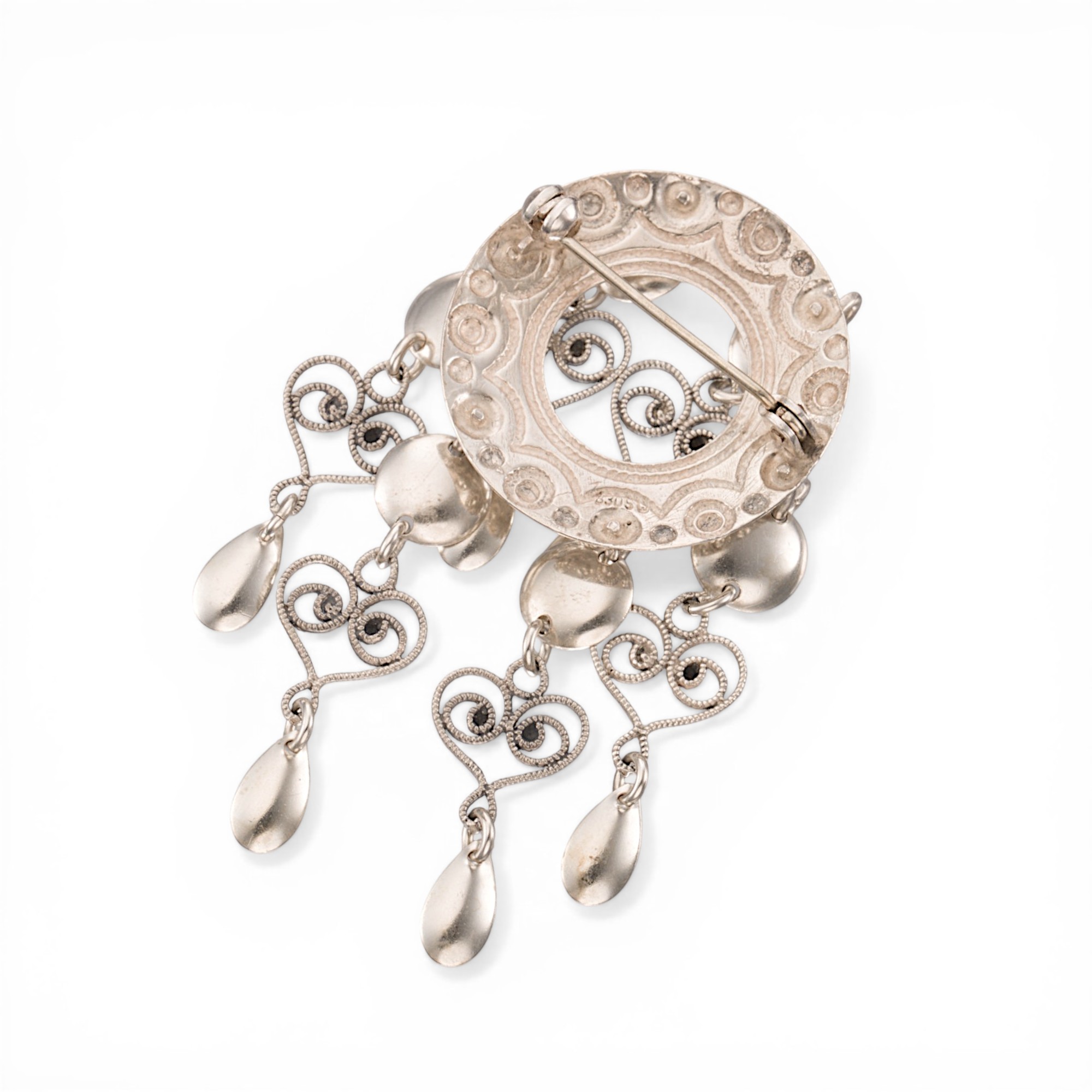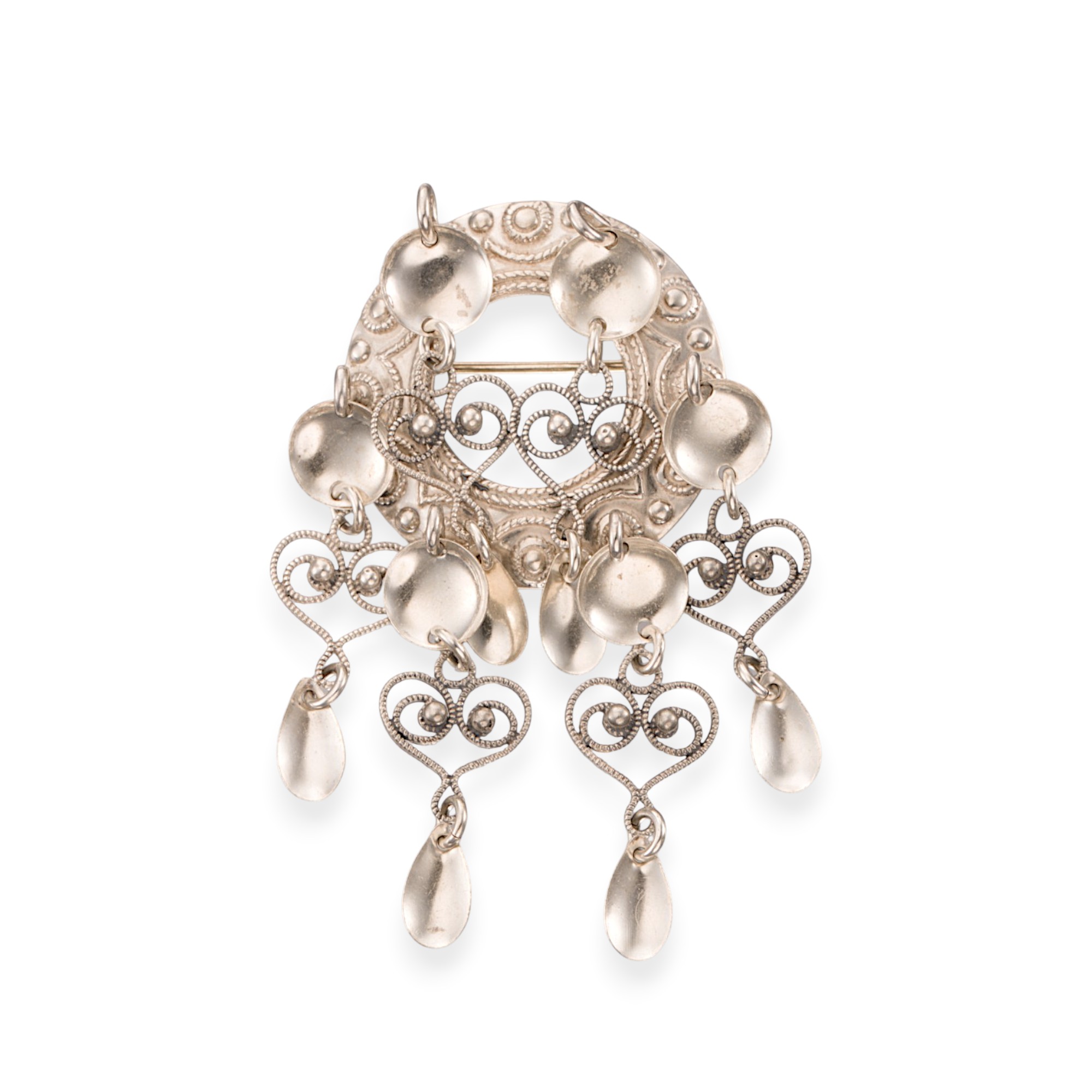 Liten barnesølje med lauv og filigranheng med drypplauv. Ansvarsmerket for Ivar T. Holth. Oslo. 1900-tallets andre halvdel.