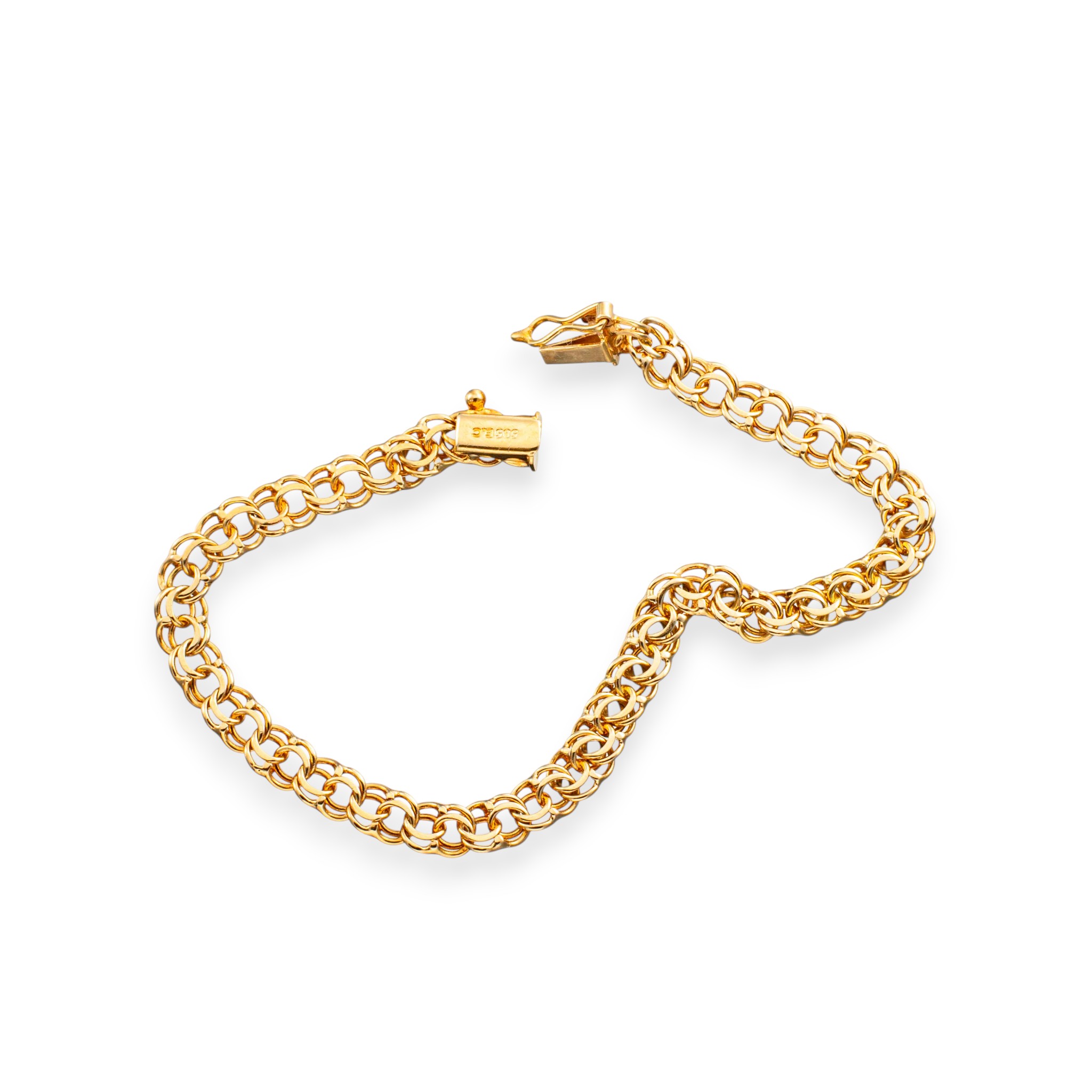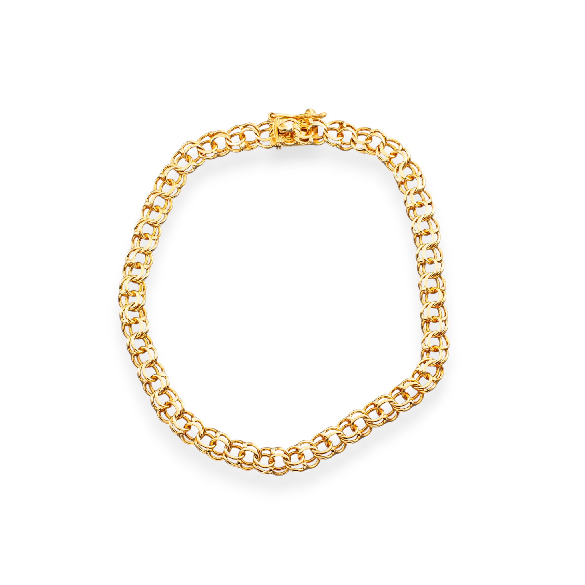 Bismarck armbånd i 14 karat gult gull. Bokslås med enkel sikring. Ansvarsmerket «E.C» for E. Christophersen. Sandnes. 1900-tallets andre halvdel.