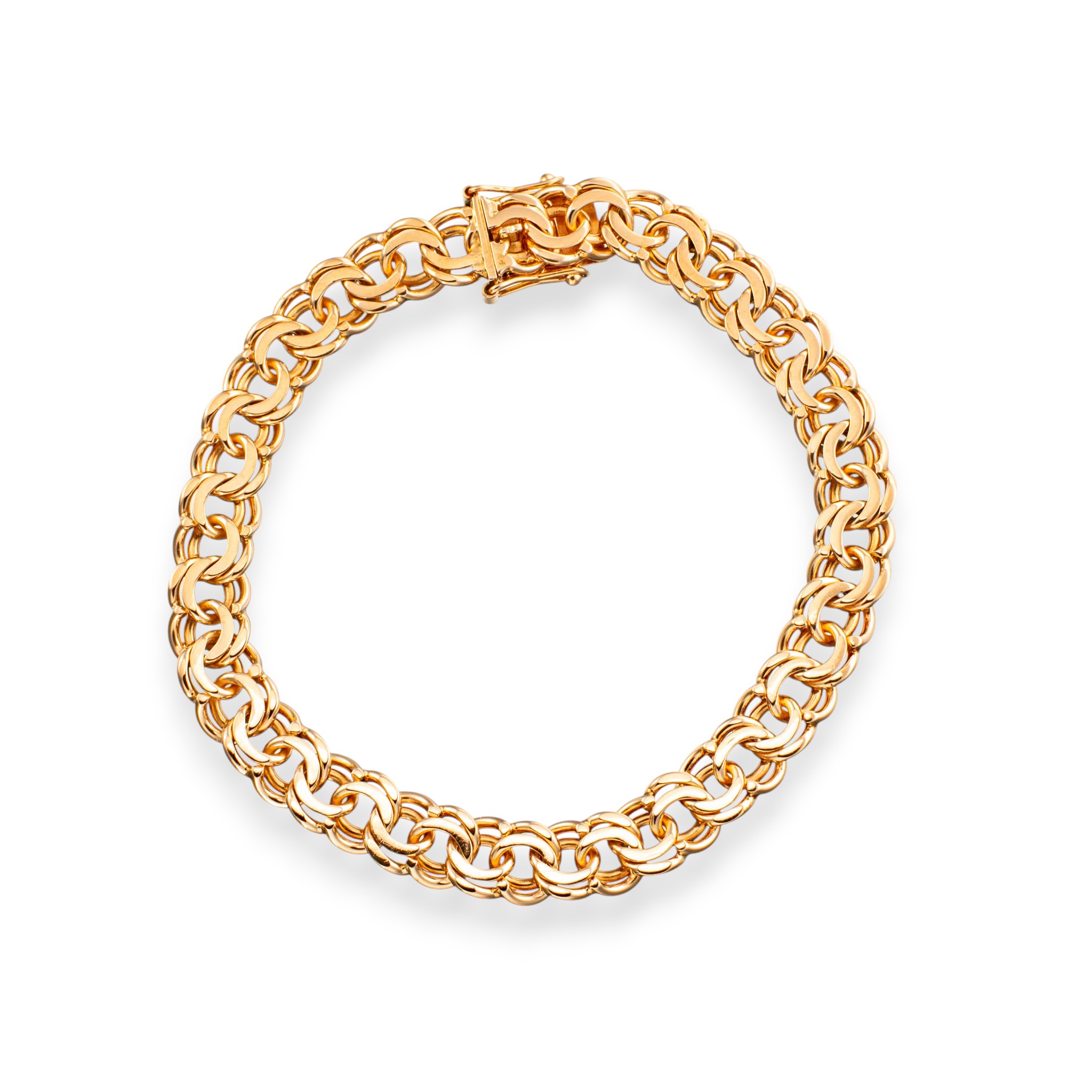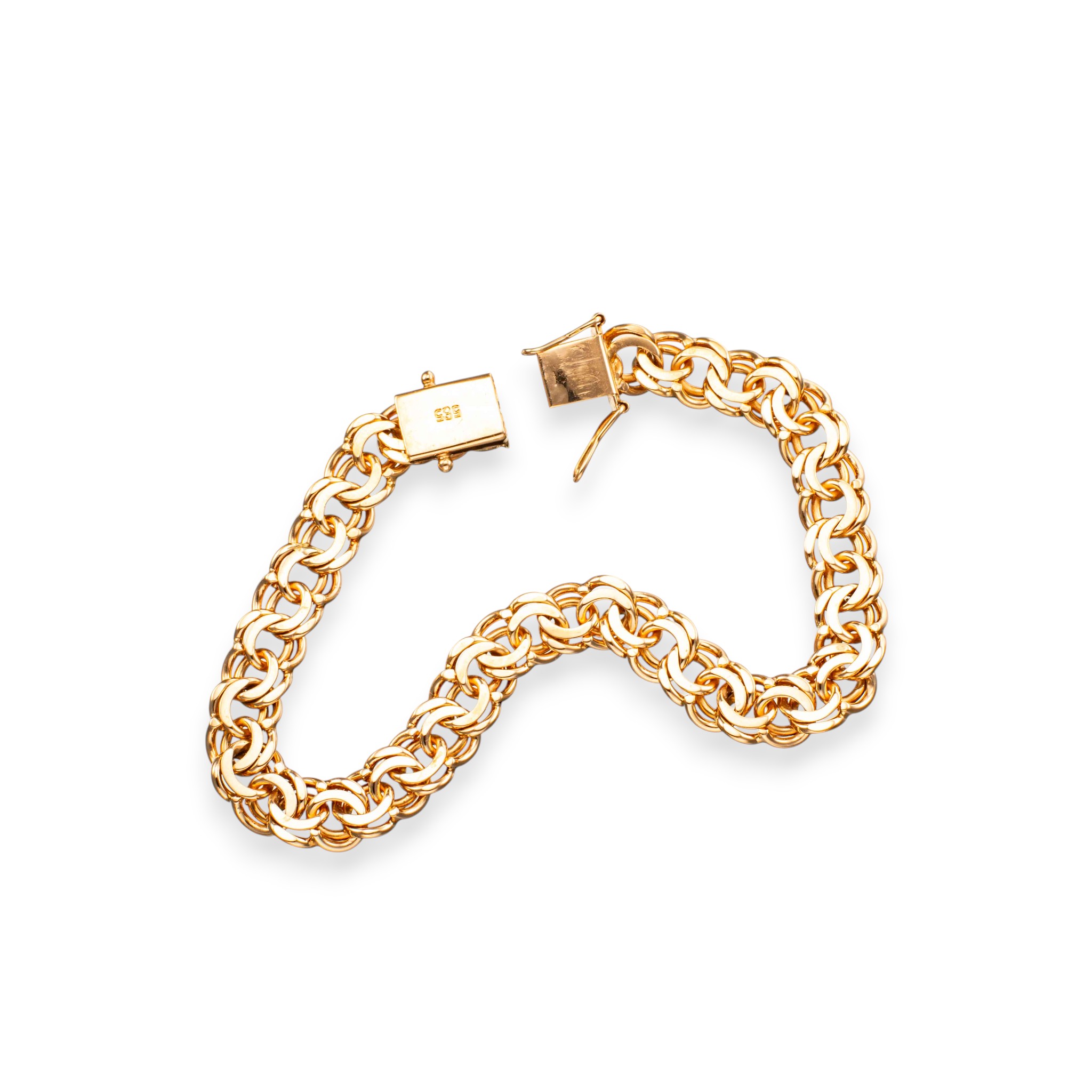 Bismarck armlenke i 14 karat gult gull. Bokslås med dobbel sikring. Ansvarsmerket for Ivar T. Holth. Oslo. 1900-tallets andre halvdel.