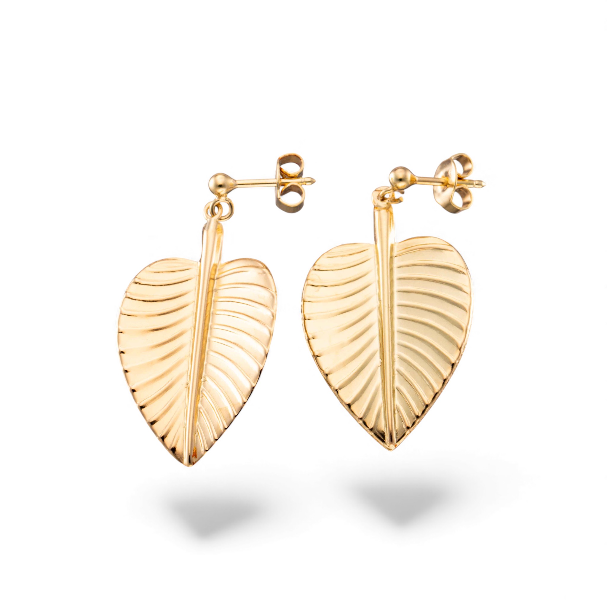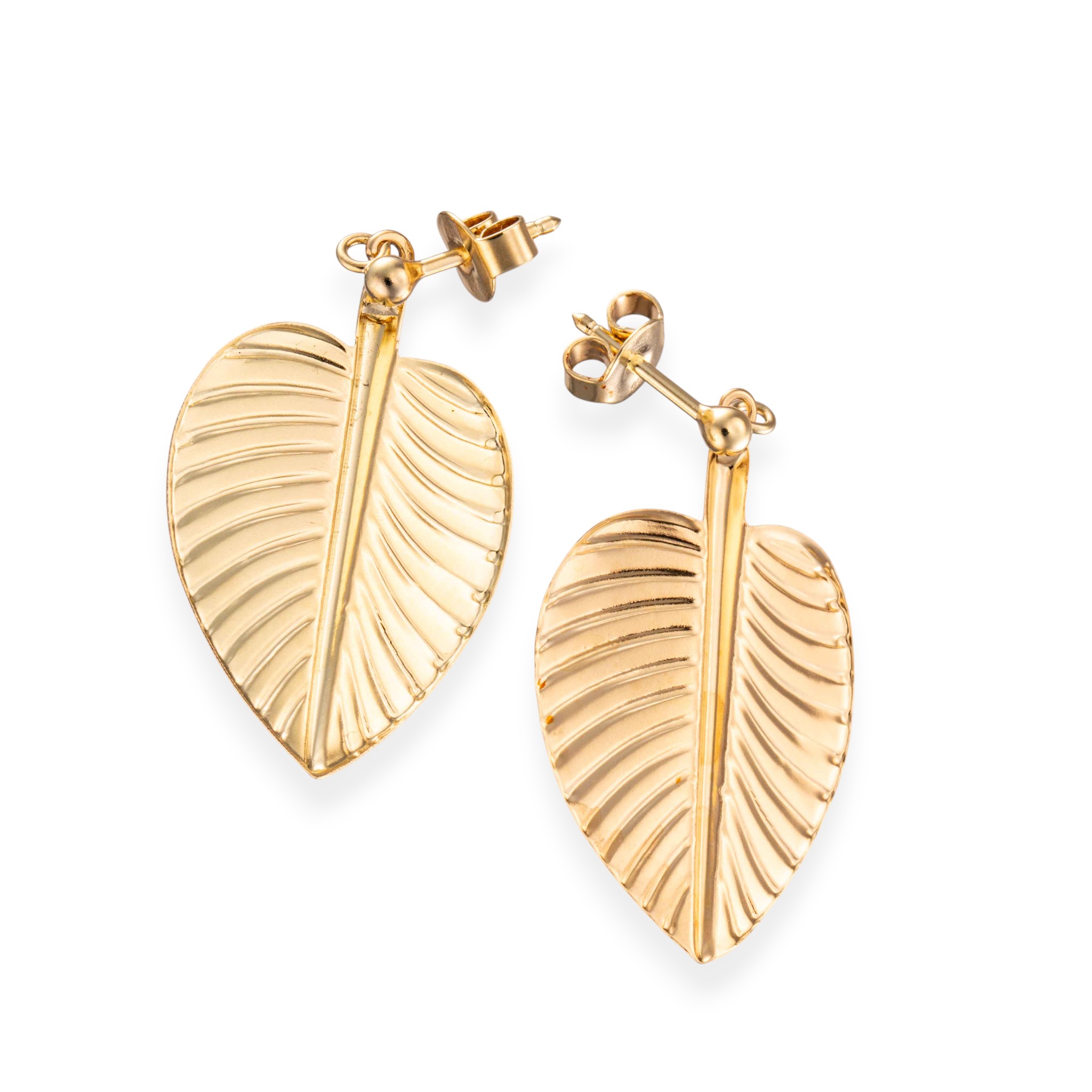 Par: Blad ørepynt i 14 karat gult gull. Mønstret. Ansvarsmerket for Sigurd Homstvedt. Oslo. 1900-tallets andre halvdel.