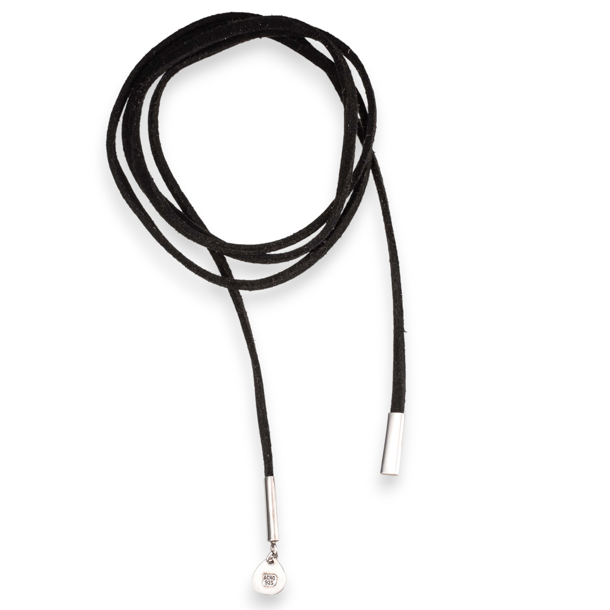 Choker i semsket skinn (3,3 mm) med endestykker i sterling sølv. Ansvarsmerket A&C for Arts & Crafts. Drammen / Oslo. 2000-tallet.