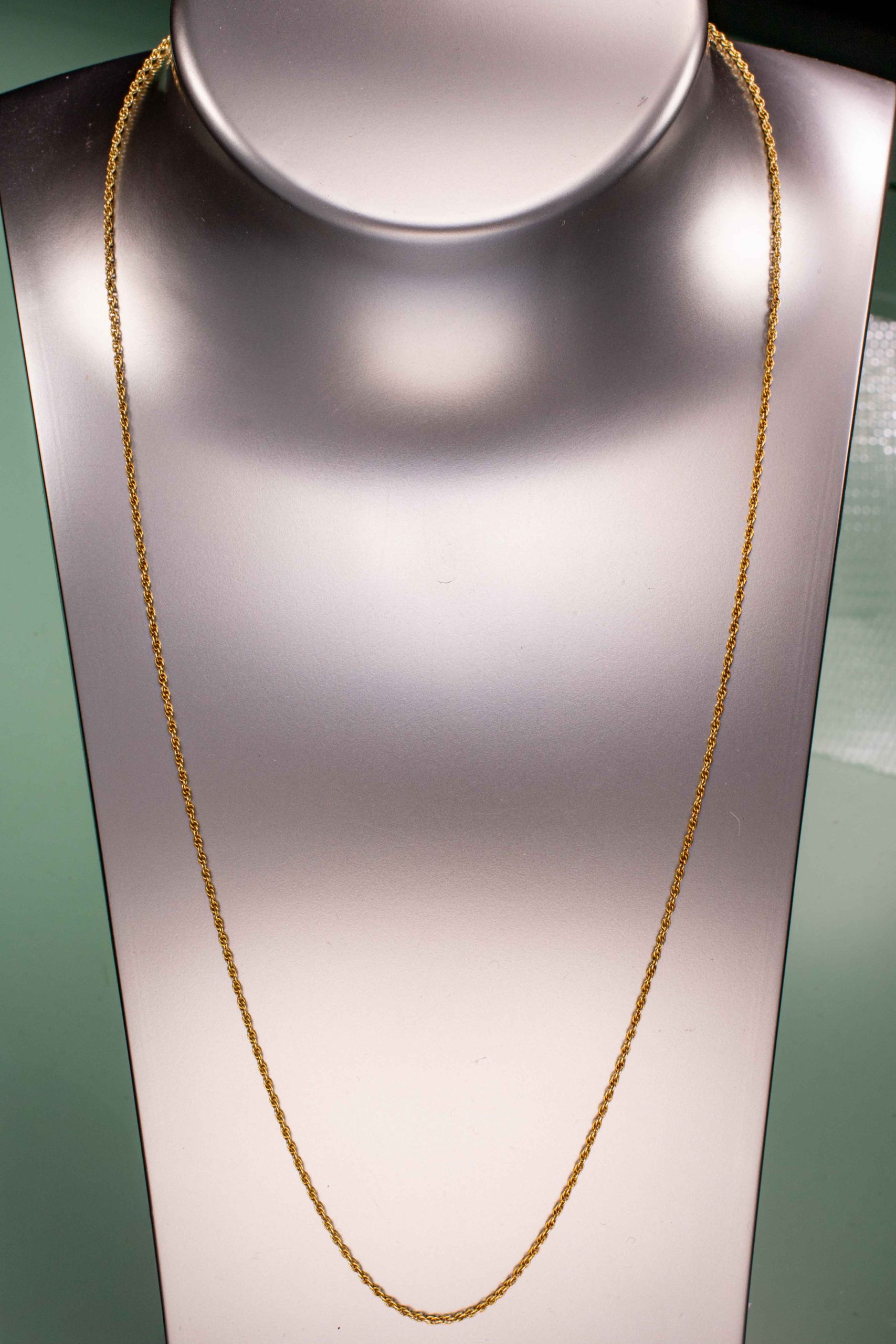 Cordel (variant) halskjede i 14 karat gult gull. Fjærringlås. Ansvarsmerket «EH». Ant. «Schmuckwarenfabrik Emil Hildheim». Tyskland. 1900-tallets andre halvdel.