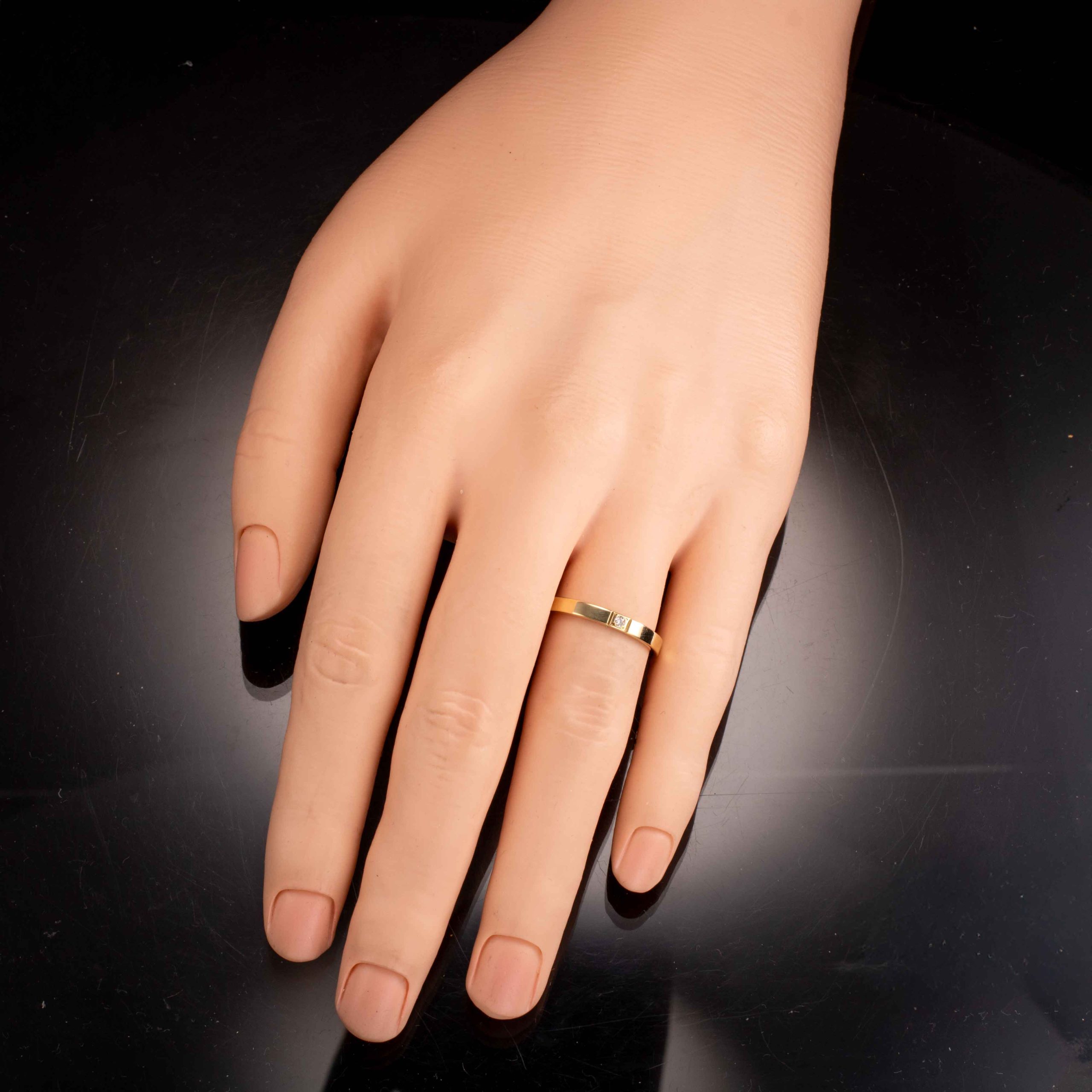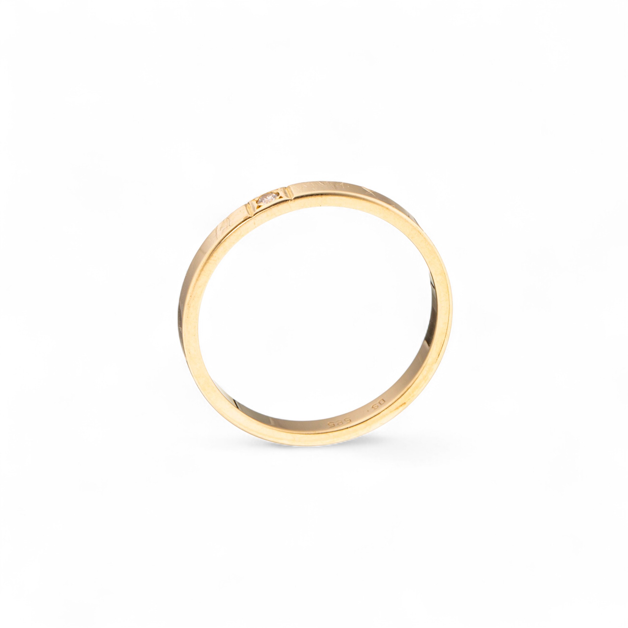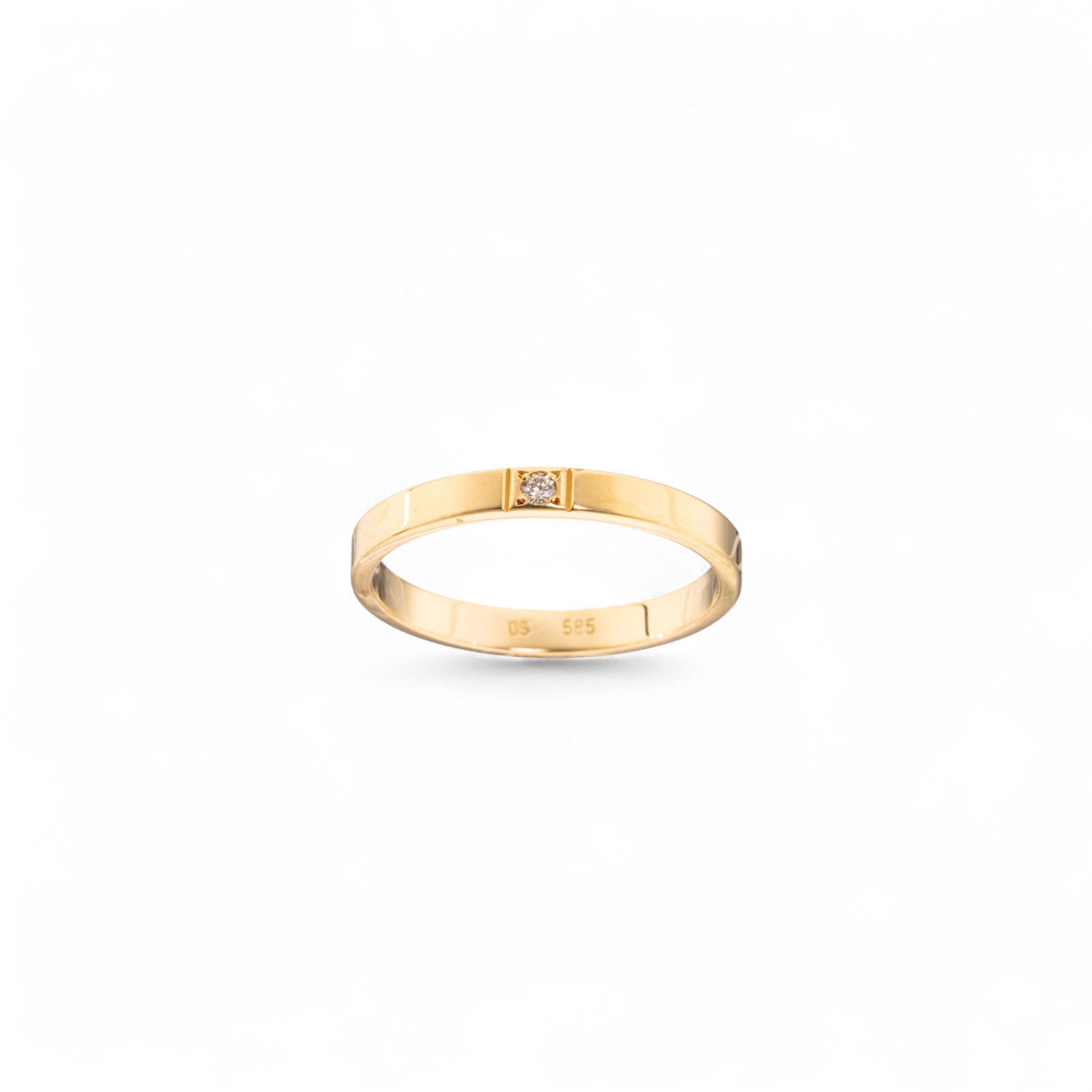 Ring i 14 karat gult gull. Fattet med en liten diamant (ca. 0,015 ct.). Ansvarsmerket «DS» som ble brukt av gullsmed Ole Aas. Trondheim. Slutten av 1900- til tidl. 2000-tallet.