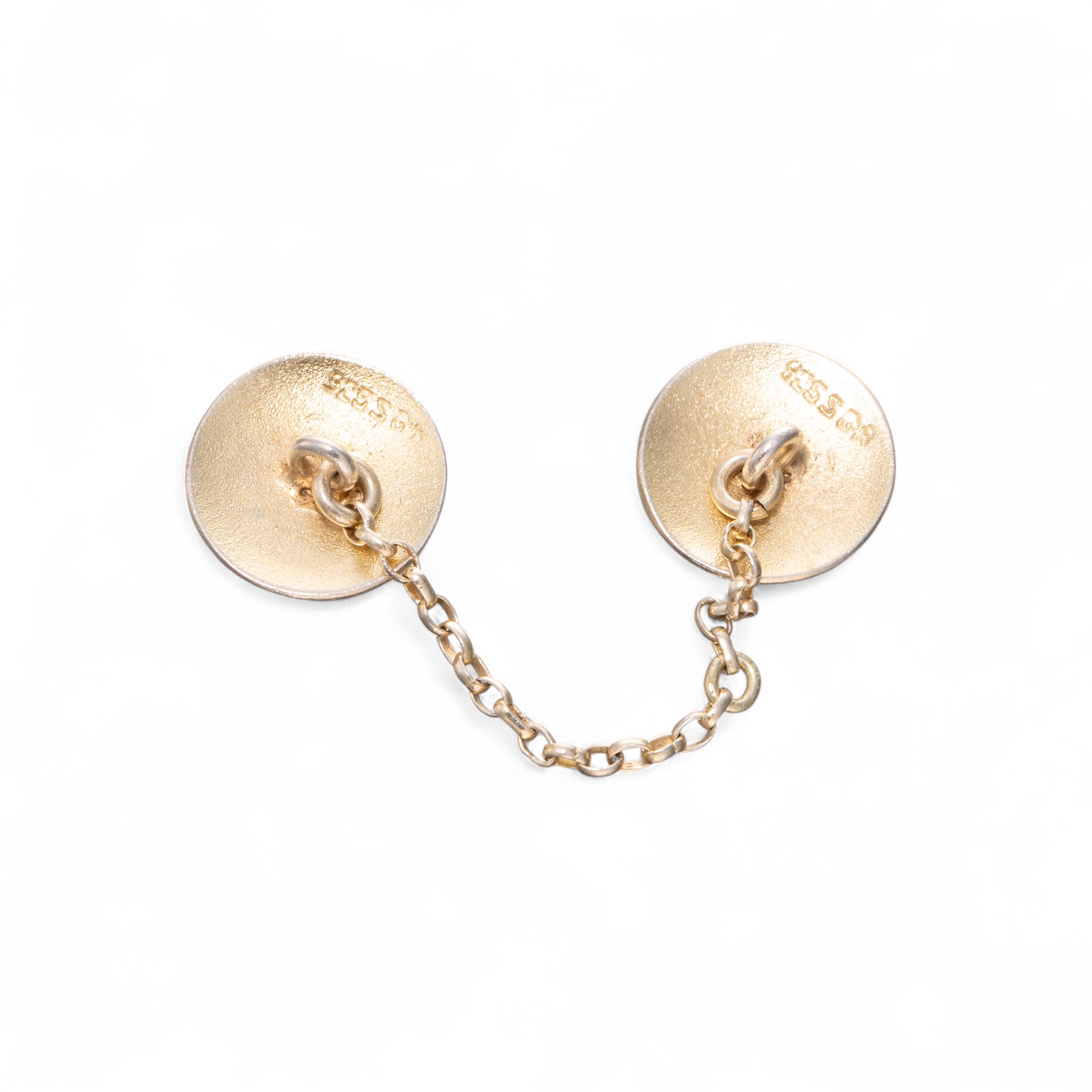 Halsknapper i forgylt, sterling sølv med motiv i emalje. Ansvarsmerket «G.R» for Georg Johannes Ruud. Oslo. 1900-tallets første halvdel.
