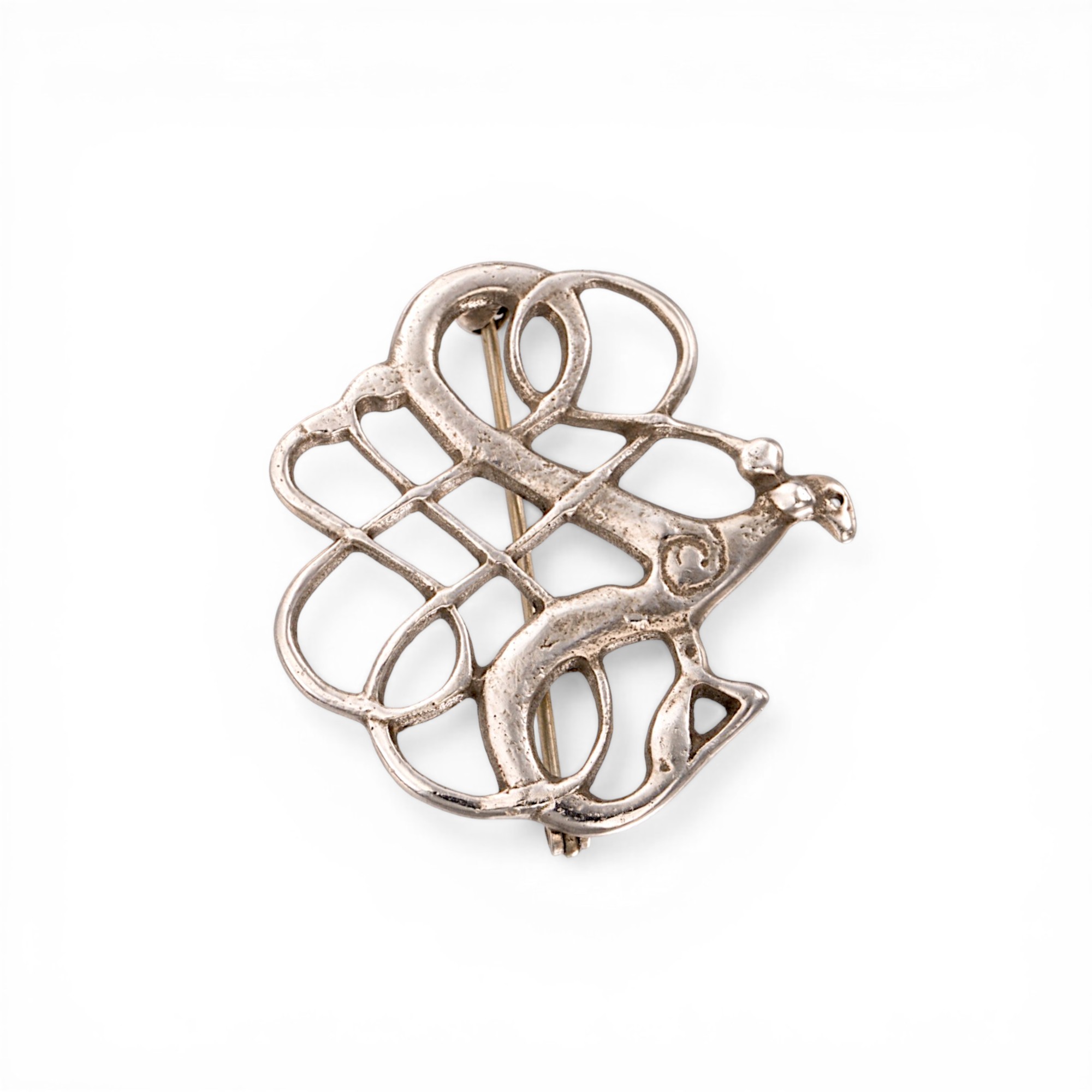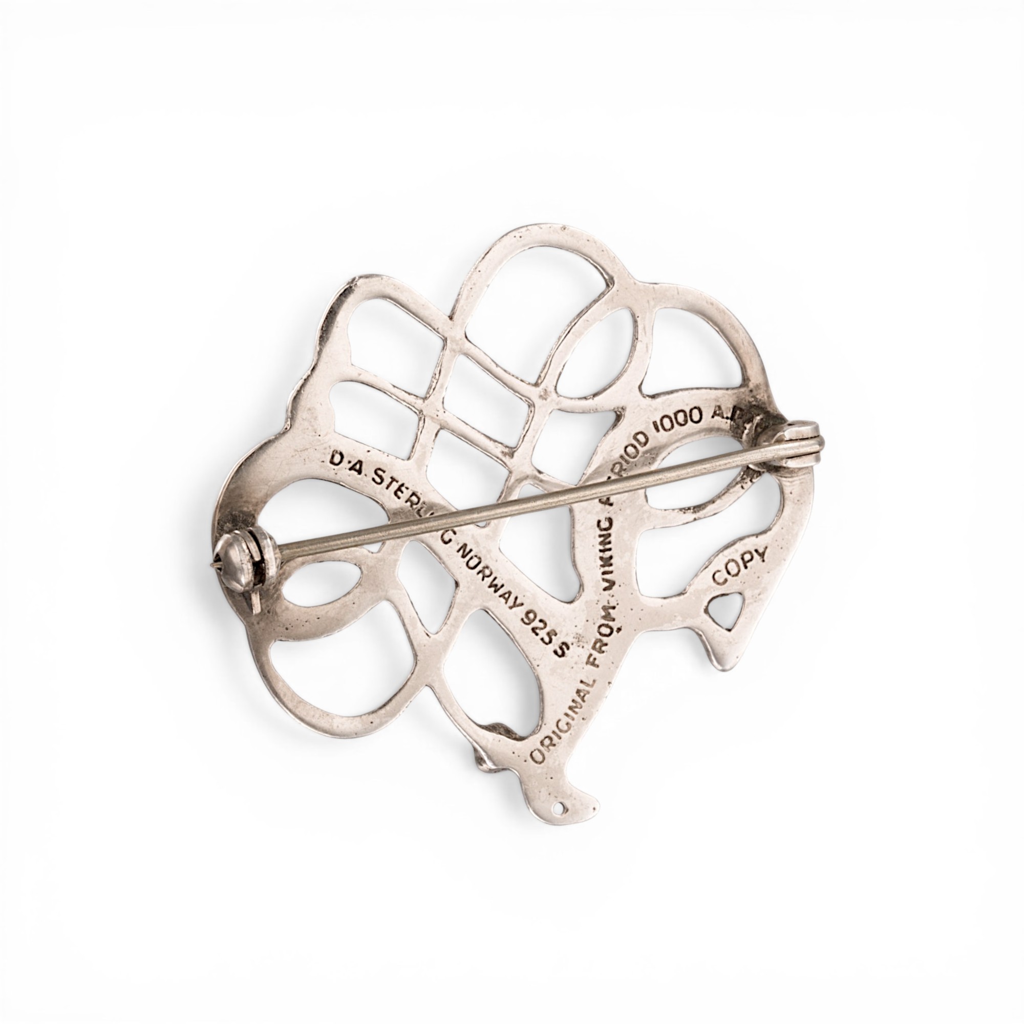 Fabeldyr brosje i sterling sølv. Fra David-Andersen AS’ «Saga» serie som er en kolleksjon smykker inspirert av norsk historie. Sent 1900- til tidl. 2000-tallet.