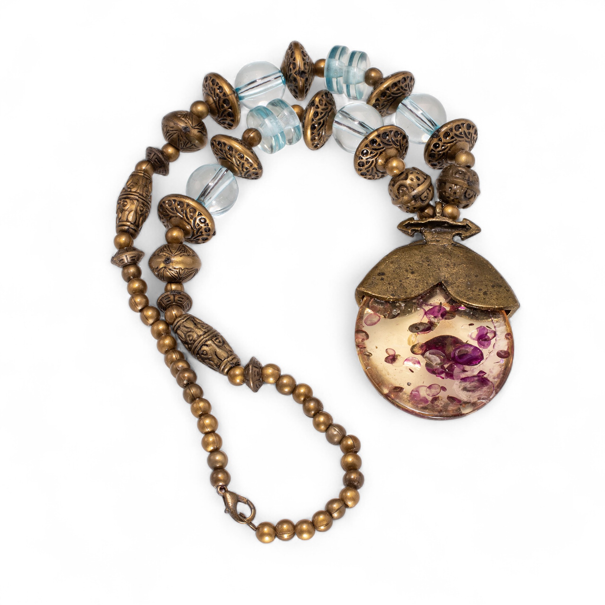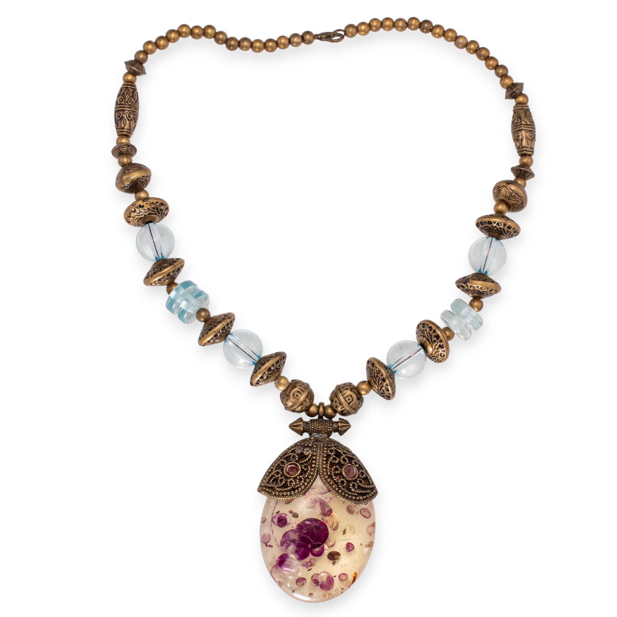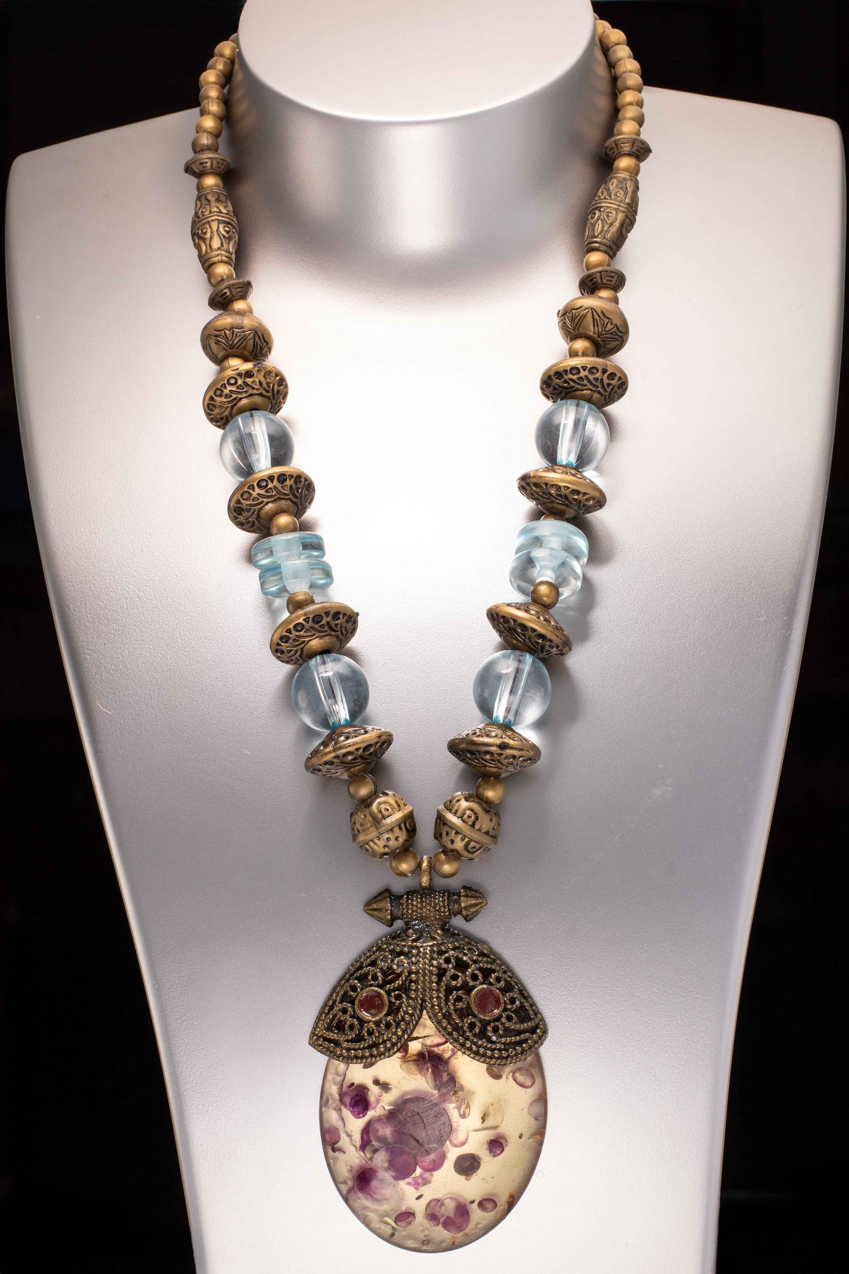 Bijouteri: Halssmykke i akryl og plast. Hummerklolås. Uedelt metall. 1900-tallets andre halvdel.