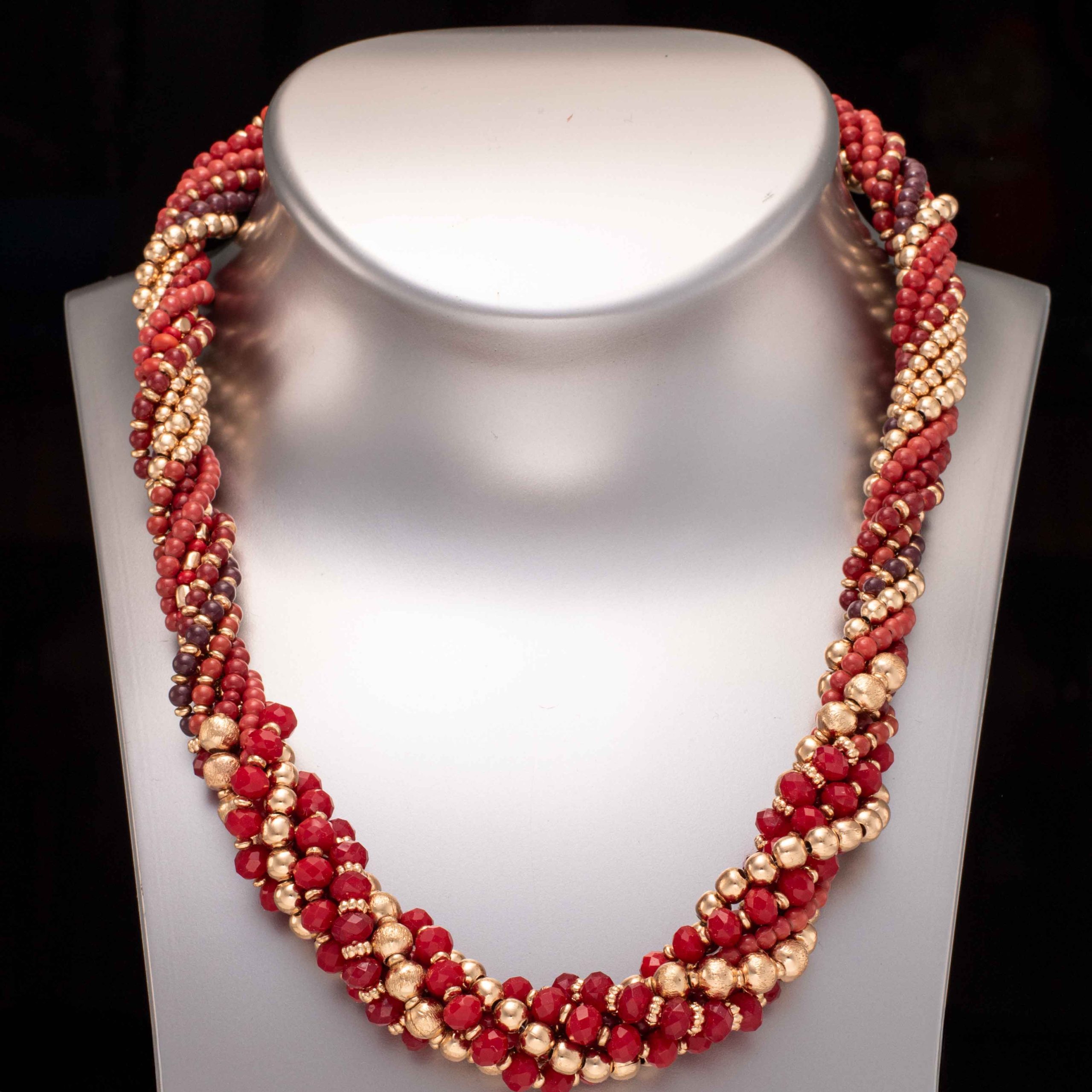 Bijouteri: Collier med runde og fasetterte kuler. Delvis glass, akryl / plast og uedelt metall. Hummerklolås. Sent 1900- til tidl. 2000-tallet.
