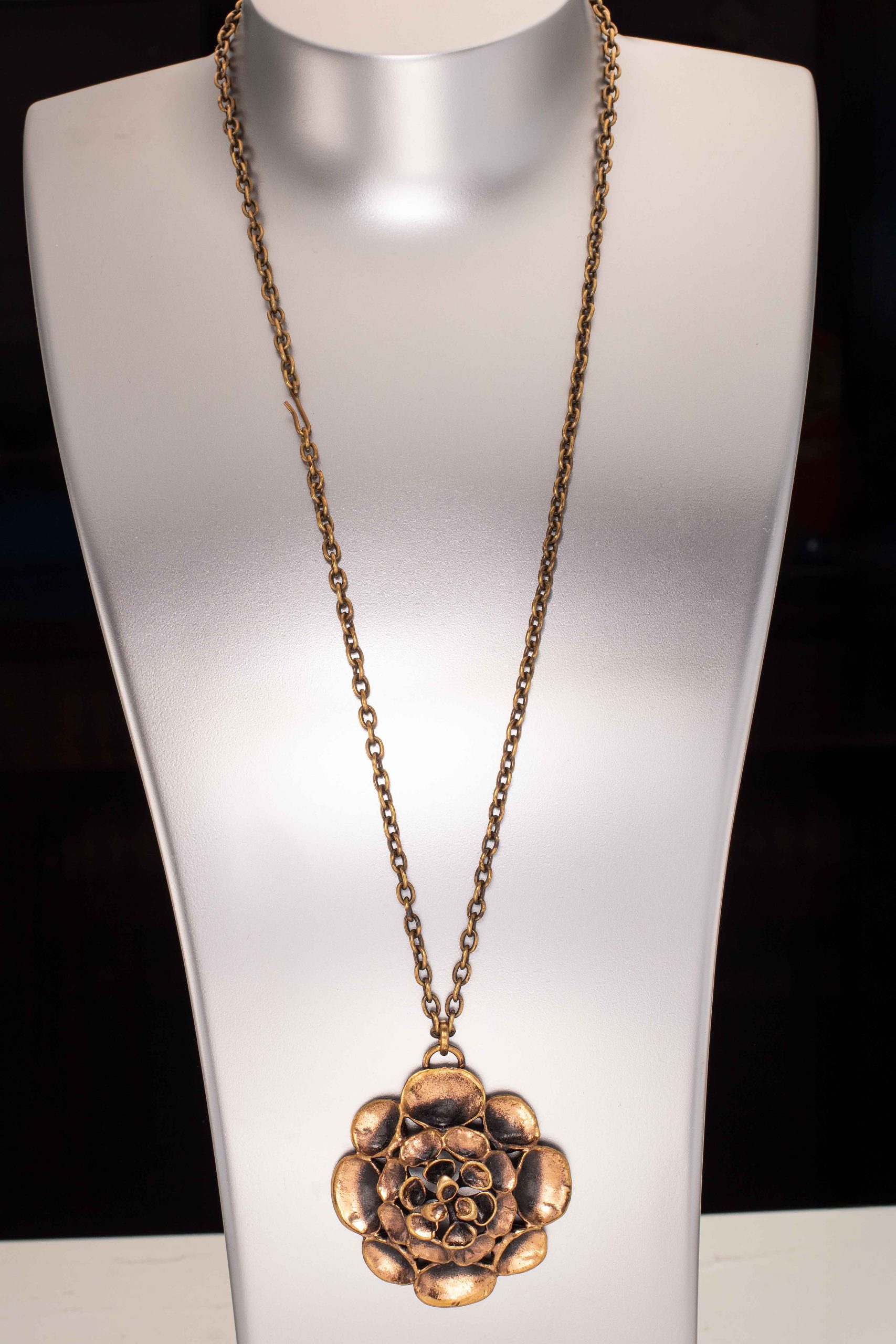 Halsmykke i bronse. Medfølger originalt kjede med kroklås. Reinlavserie fra smykkedesigner Hannu Ikonen ved Valo Koru. Finland. 1970-tallet.
