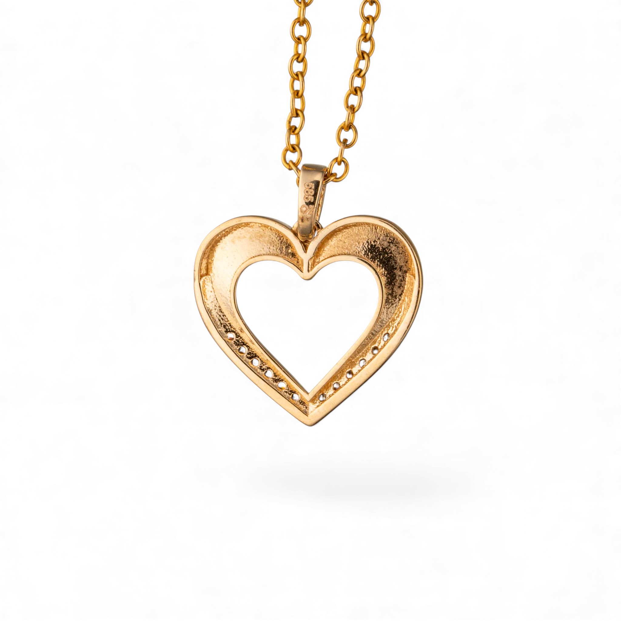 Hjerteanheng i 14 karat gult gull. Fattet med zirkonia. Ansvarsmerket for Sigurd Homstvedt. Bergen. Sent 1900- til tidl. 2000-tallet.