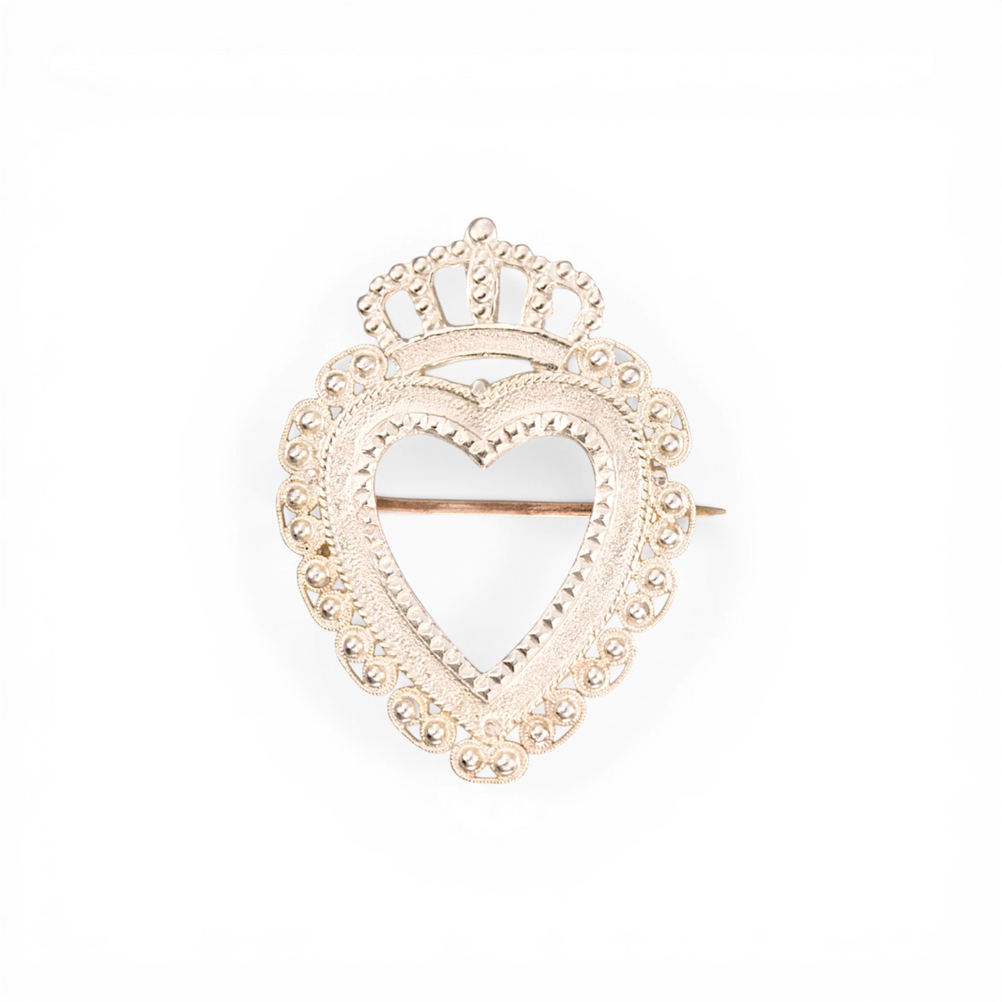 Hjertesølje (også kalt Mariasølje eller kronesølje) i sølv. Uten heng. Ansvarsmerket for Karin Elisabeth Andersen. Oslo. Sent 1900- til tidl. 2000-tallet.