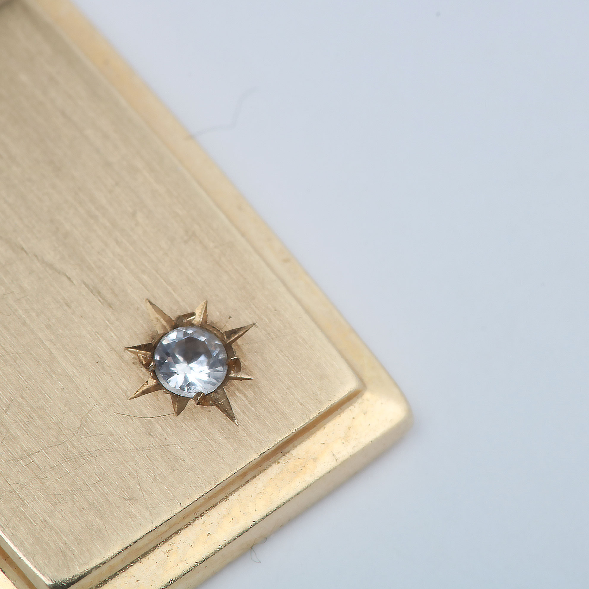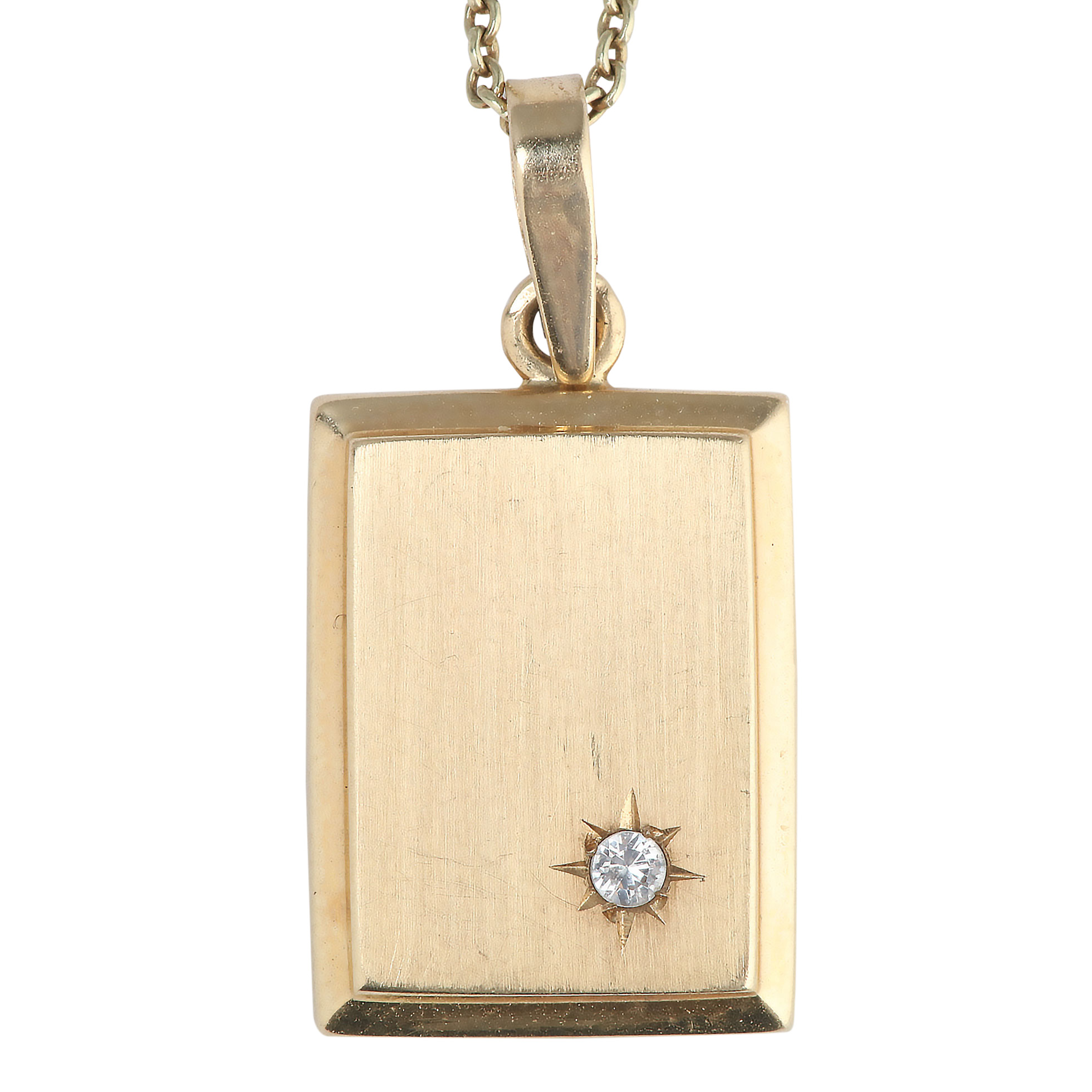 Firkantet anheng i gult gull. Fattet med èn liten diamant (ca. 0,02ct).