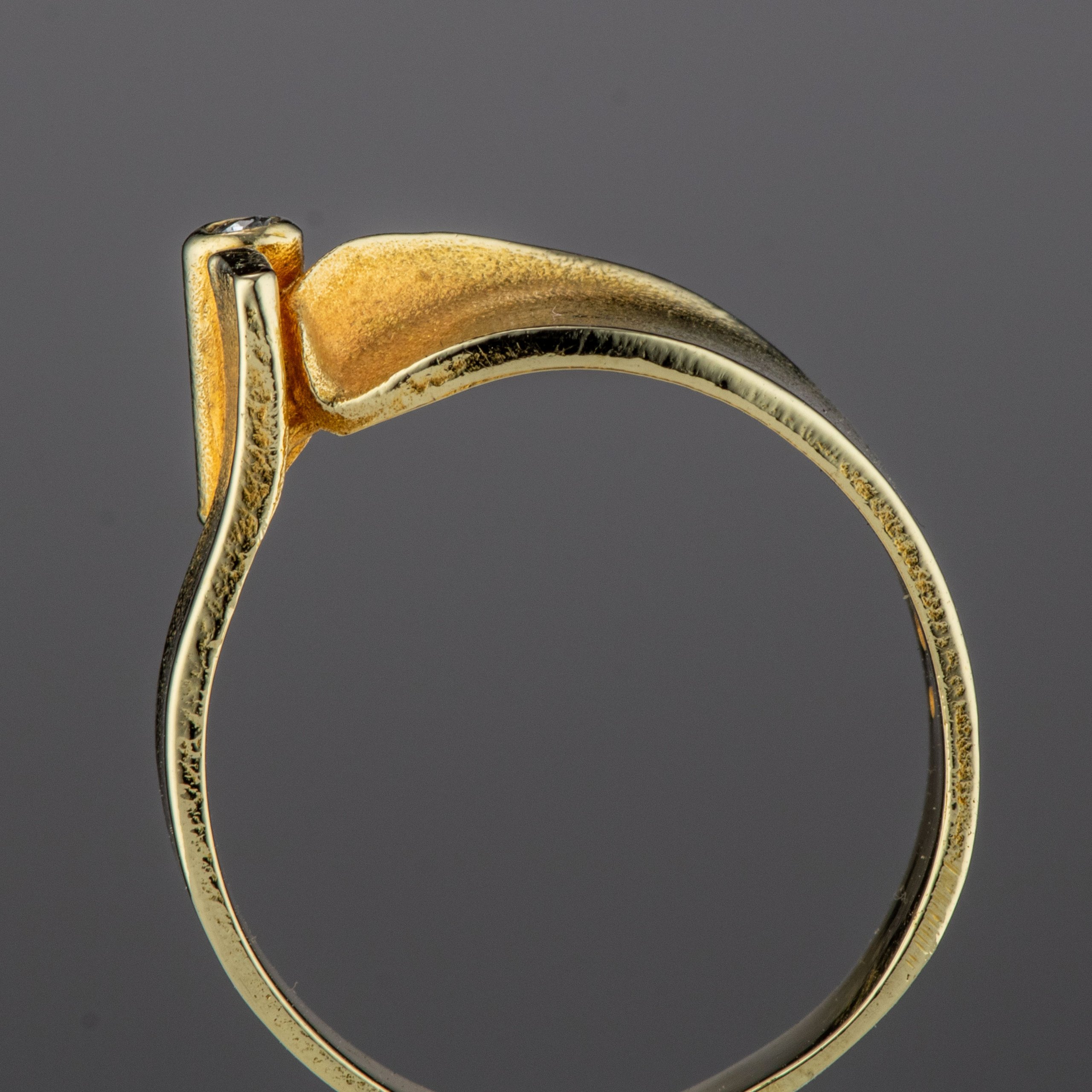 Ring i gult gull fattet med èn diamant (0,04 ct.). Ivar Holth.