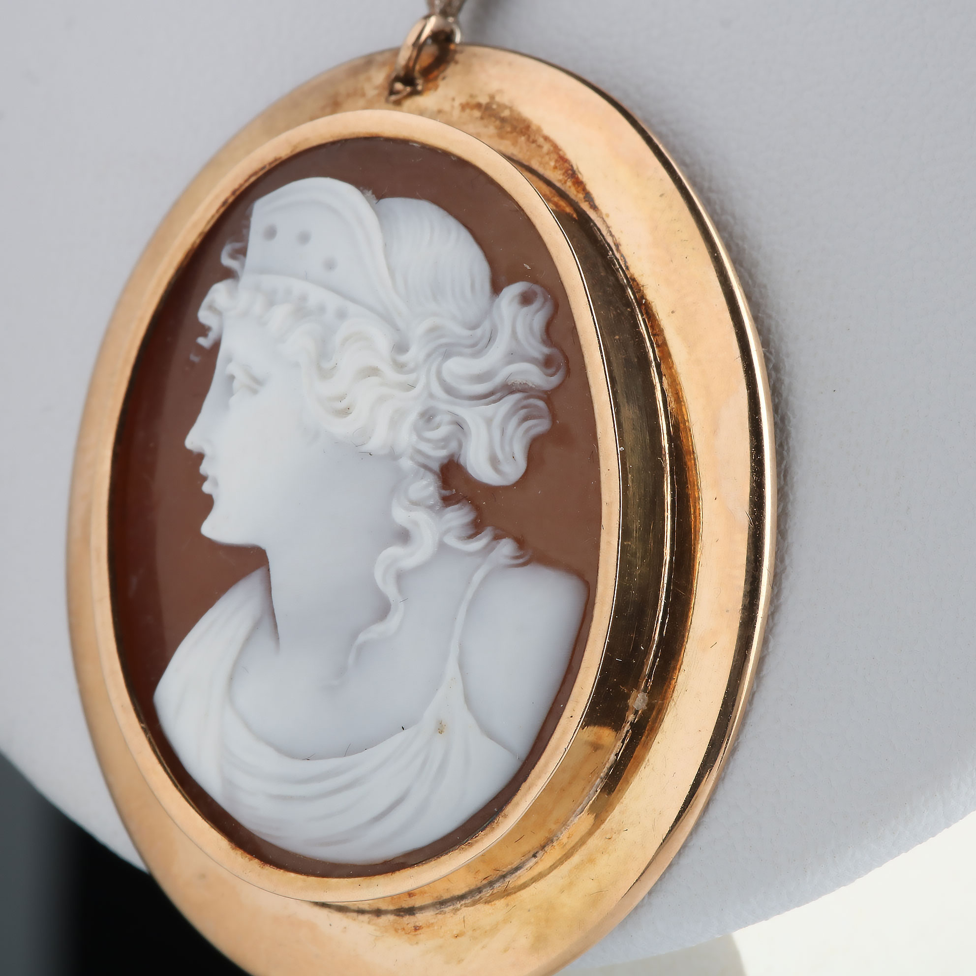 Kamé innsatt i anheng i gult gull. Ustemplet, men signert bak kamé. 1800-tallet. (Kjedet er ikke inkludert).