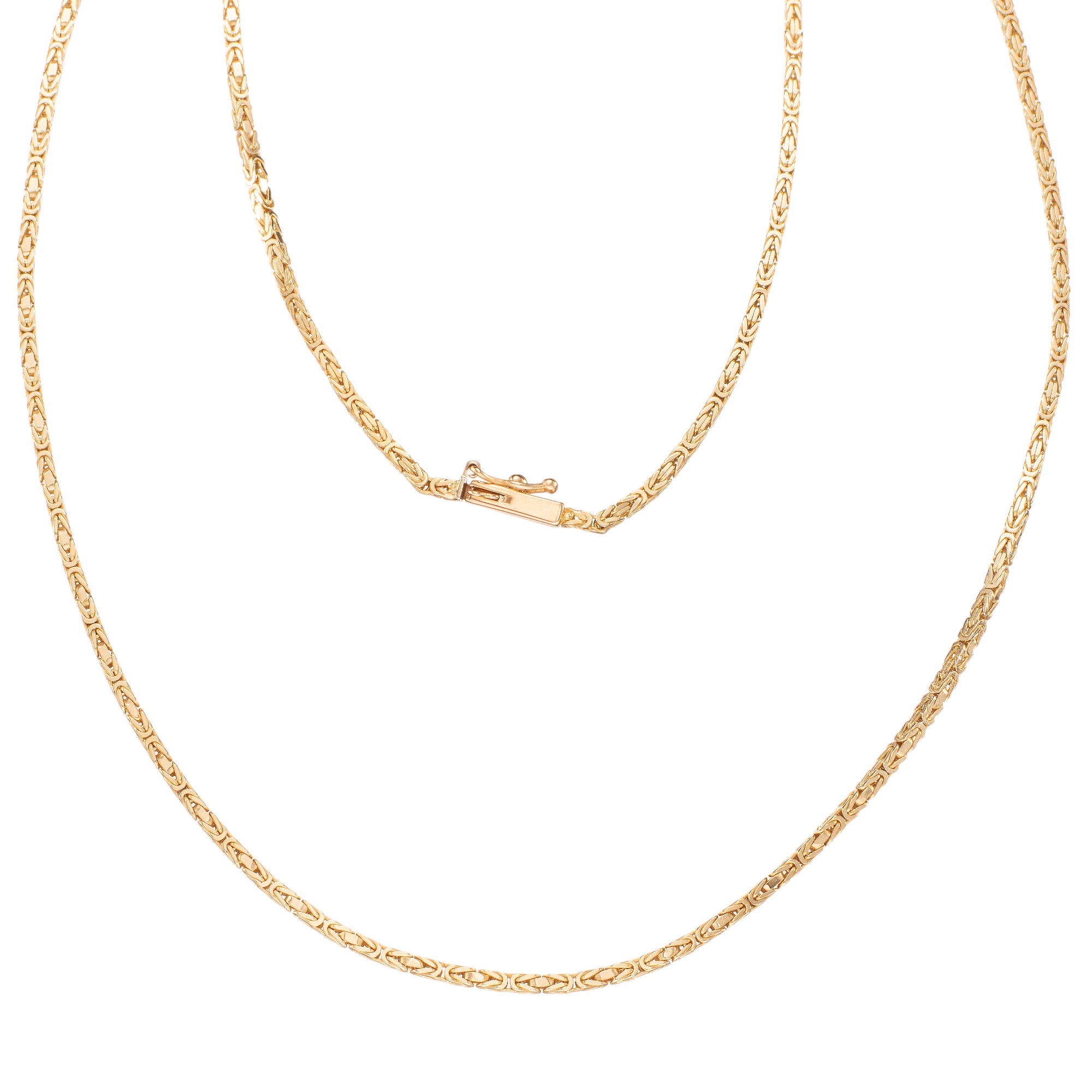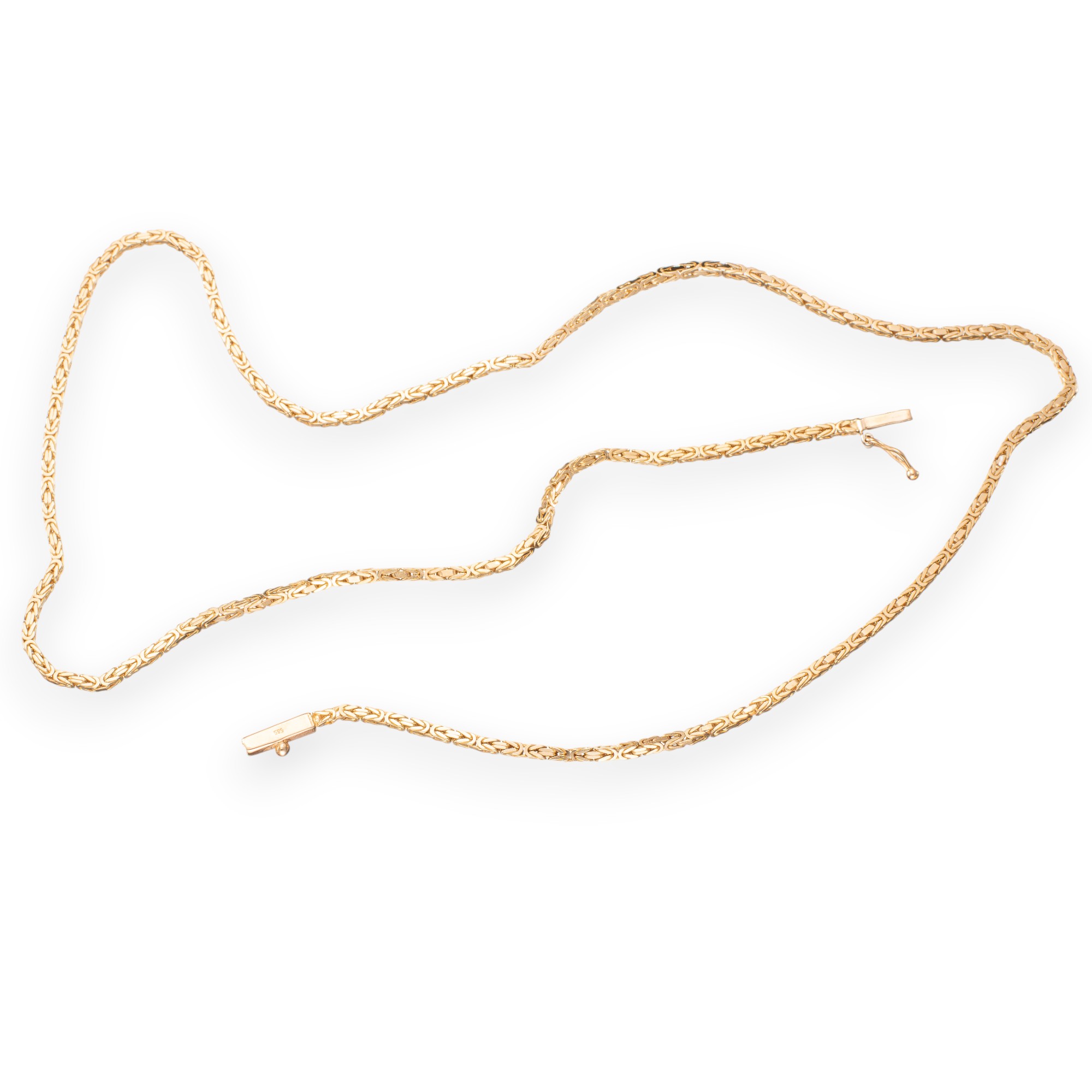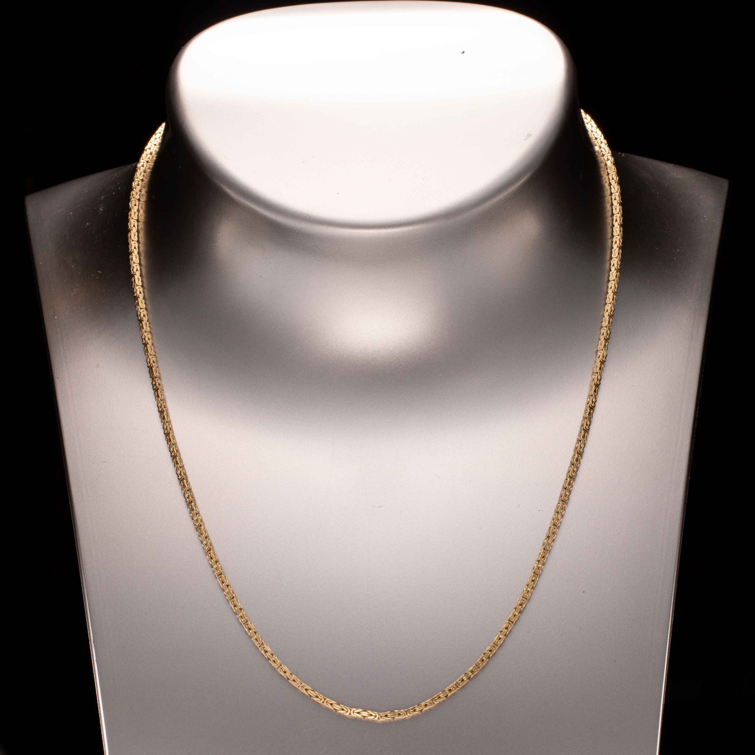 Konge halskjede i 14 karat gult gull. Bokslås med enkel sikring. Ansvarsmerket for Th. Olsens eftf. Bergen. 1900-tallets andre halvdel.