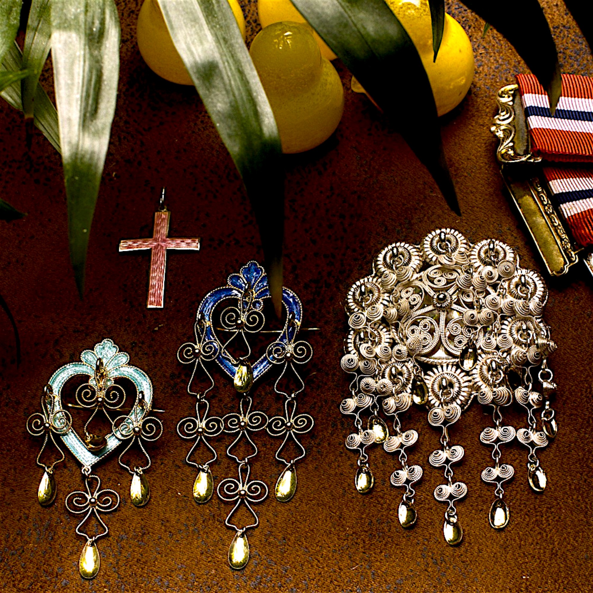 Anheng i sterling sølv med mønstret, rosa emalje. Ansvarsmerket «Norne». Aksel Holmsen AS. Midten av 1900-tallet.