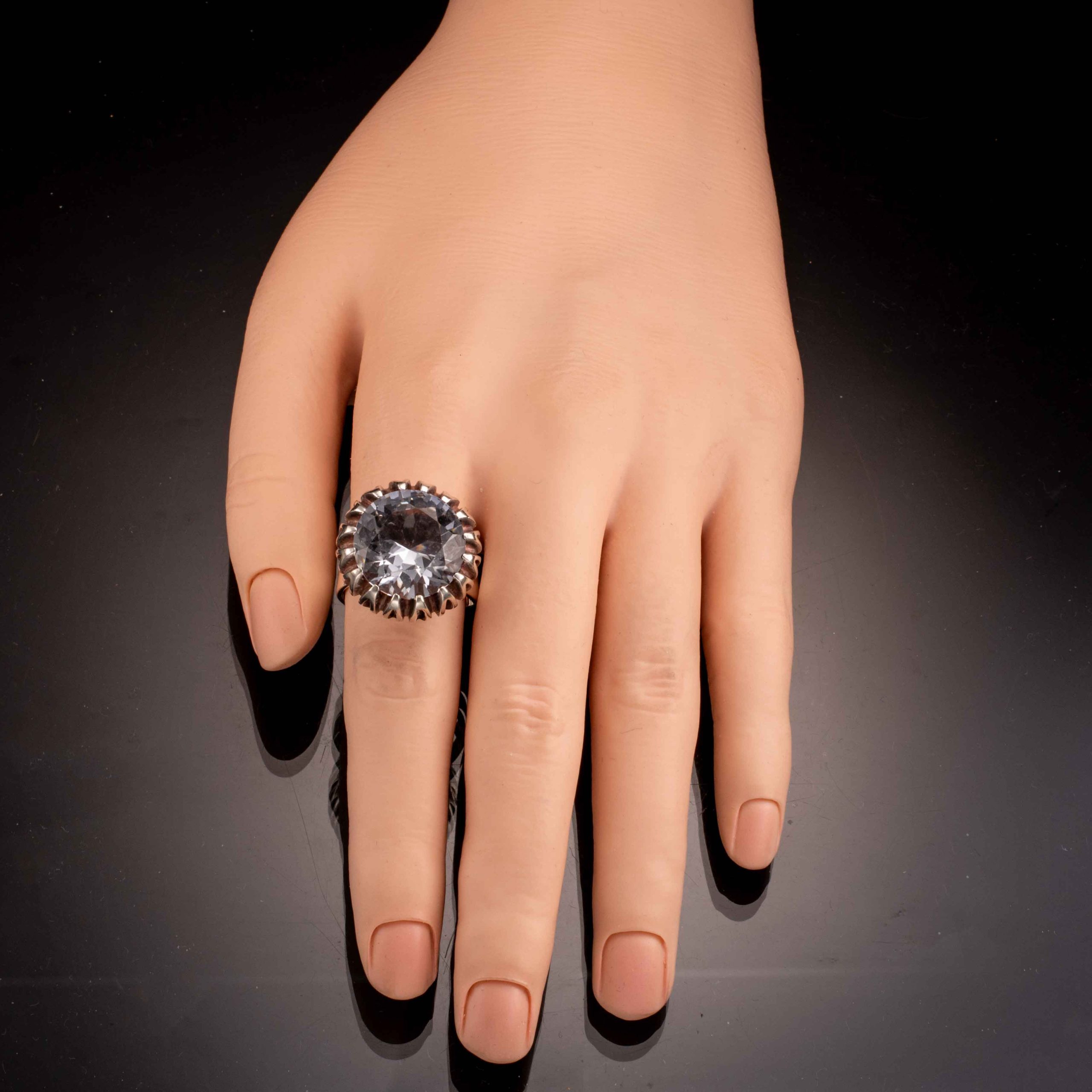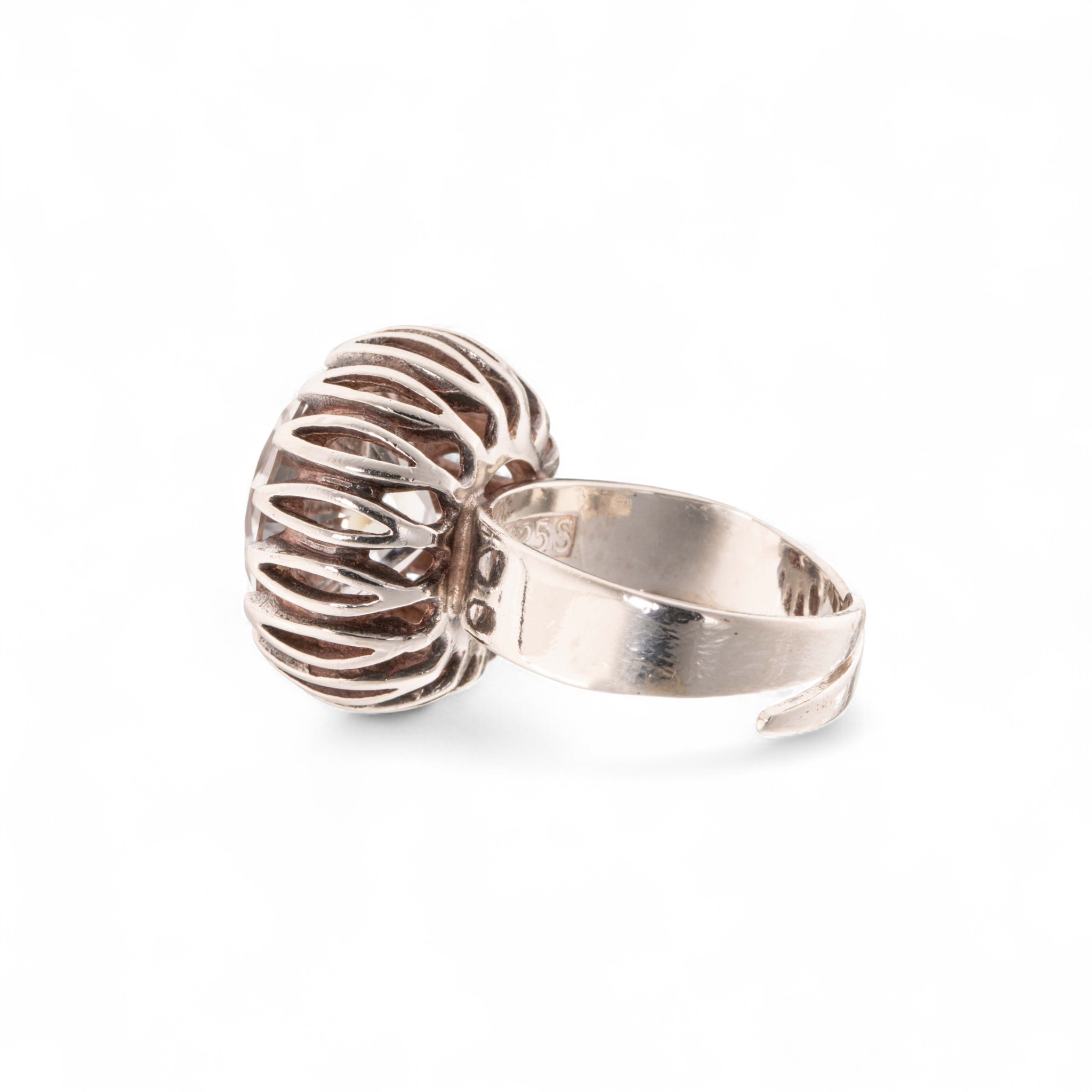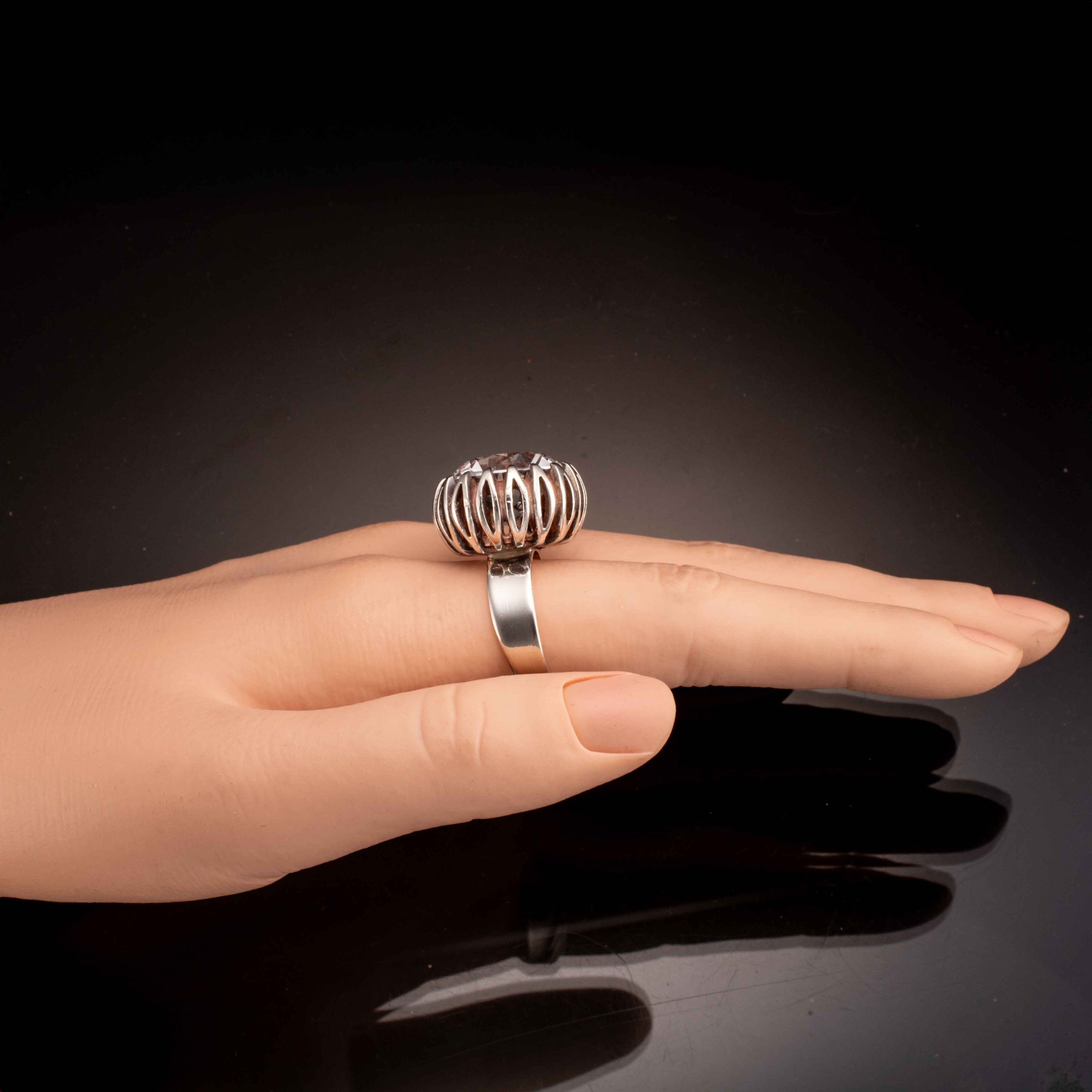 Ring i sterling sølv fattet med stor kvarts på høy krone. Ansvarsmerket «BeH» for Bengt Hallberg. Köping, Sverige. Modernisme. 1900-tallets andre halvdel.
