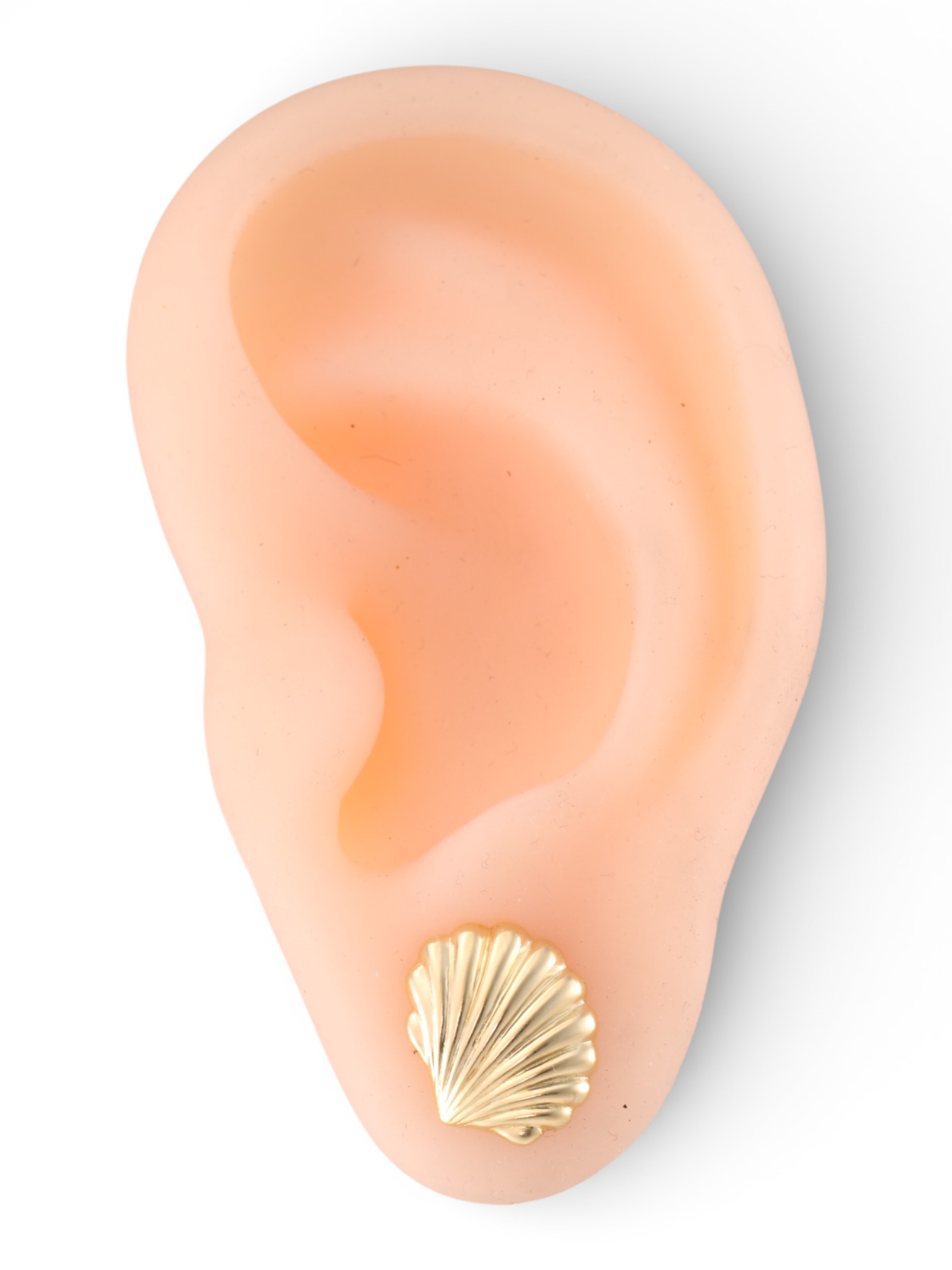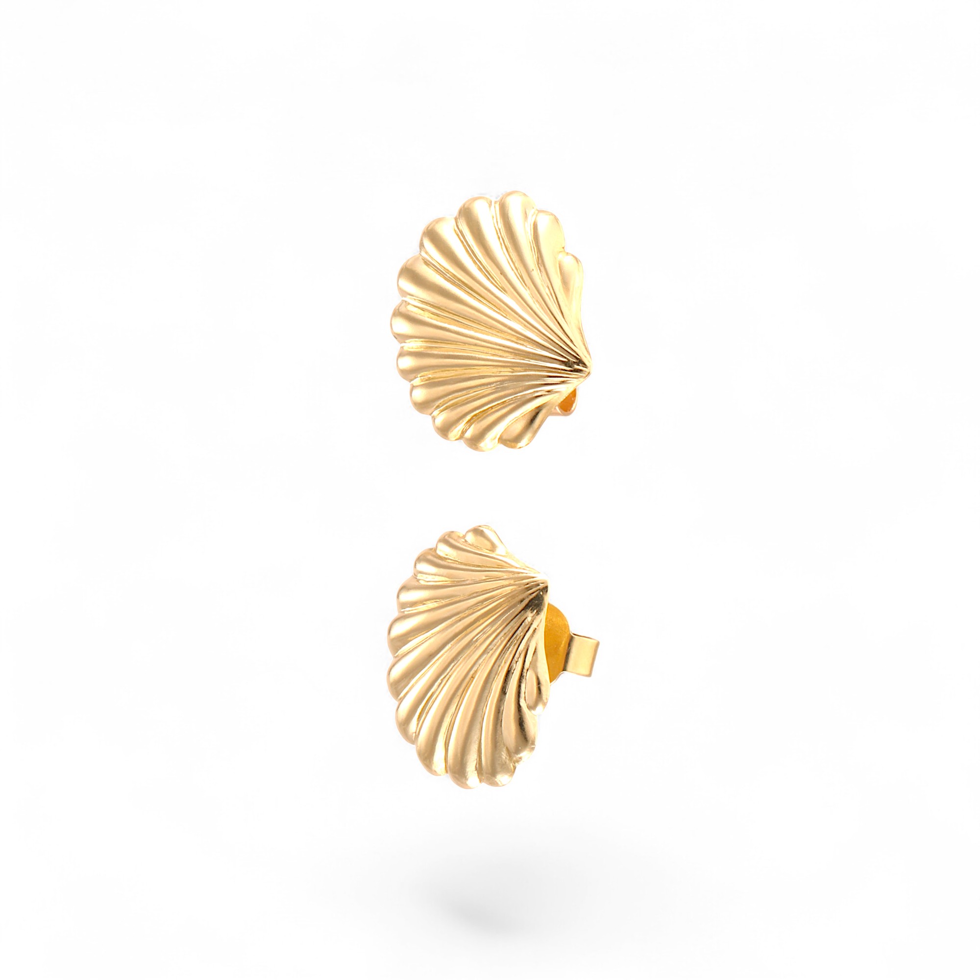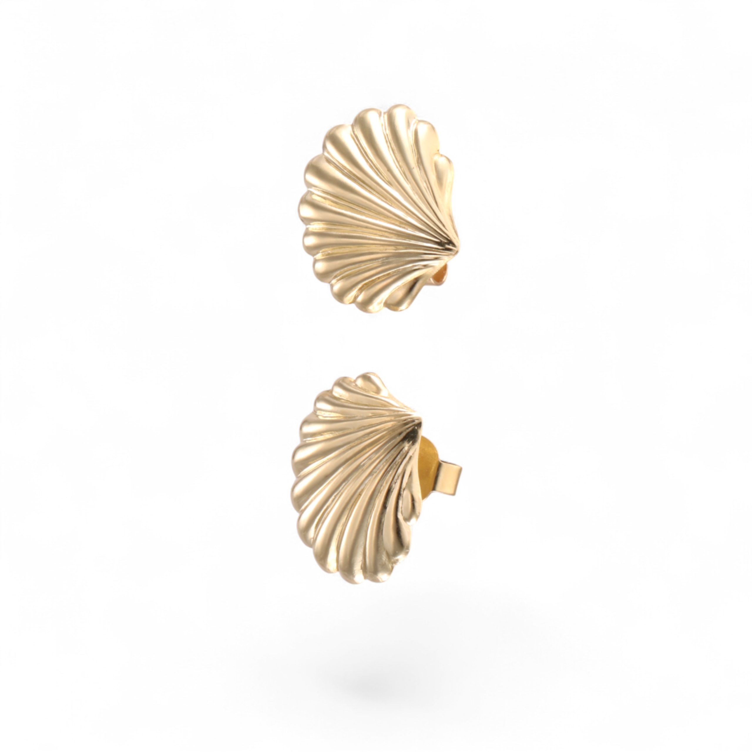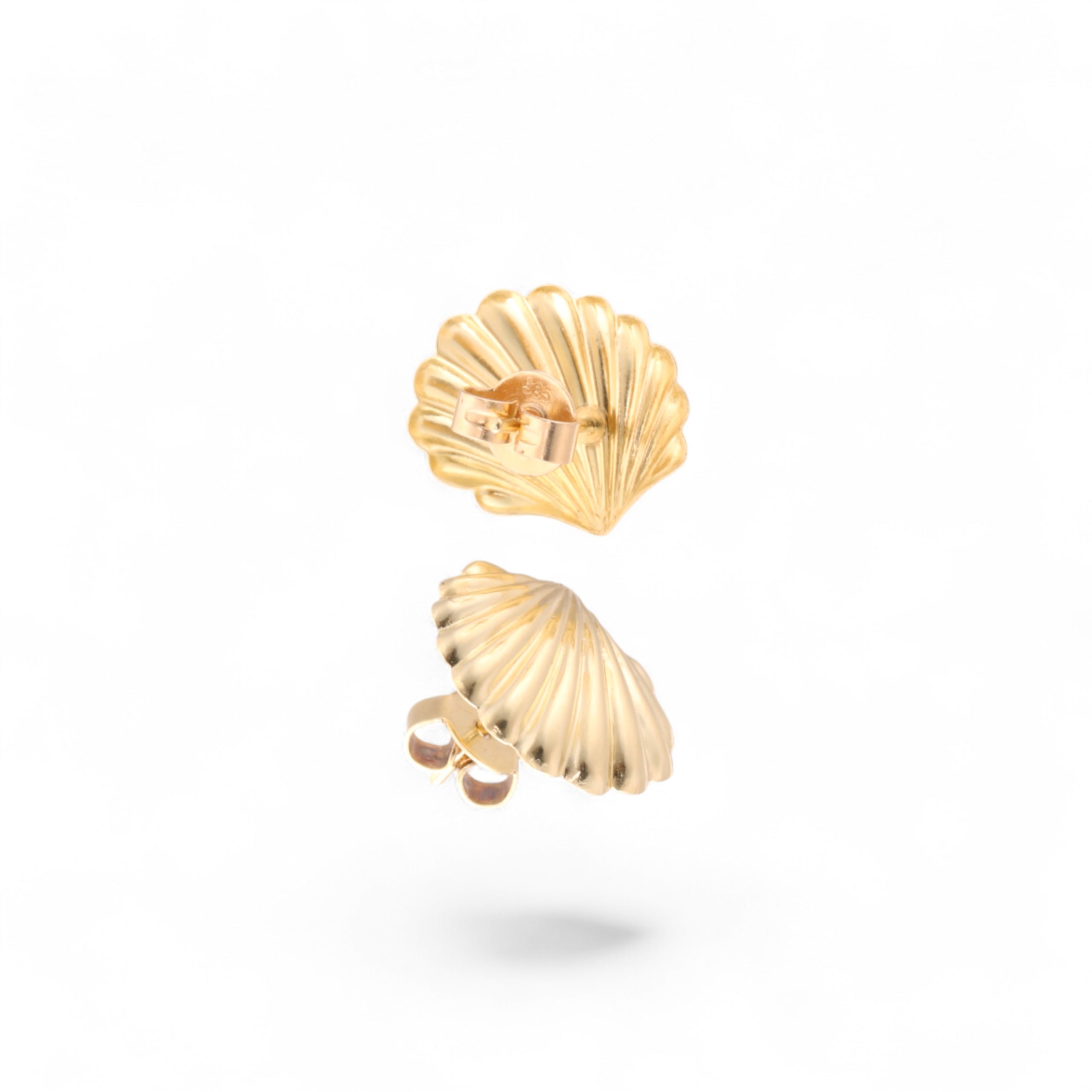 Par: Muslingmønstrede øredobber i 14 karat gult gull. Sent 1900- til tidl. 2000-tallet.