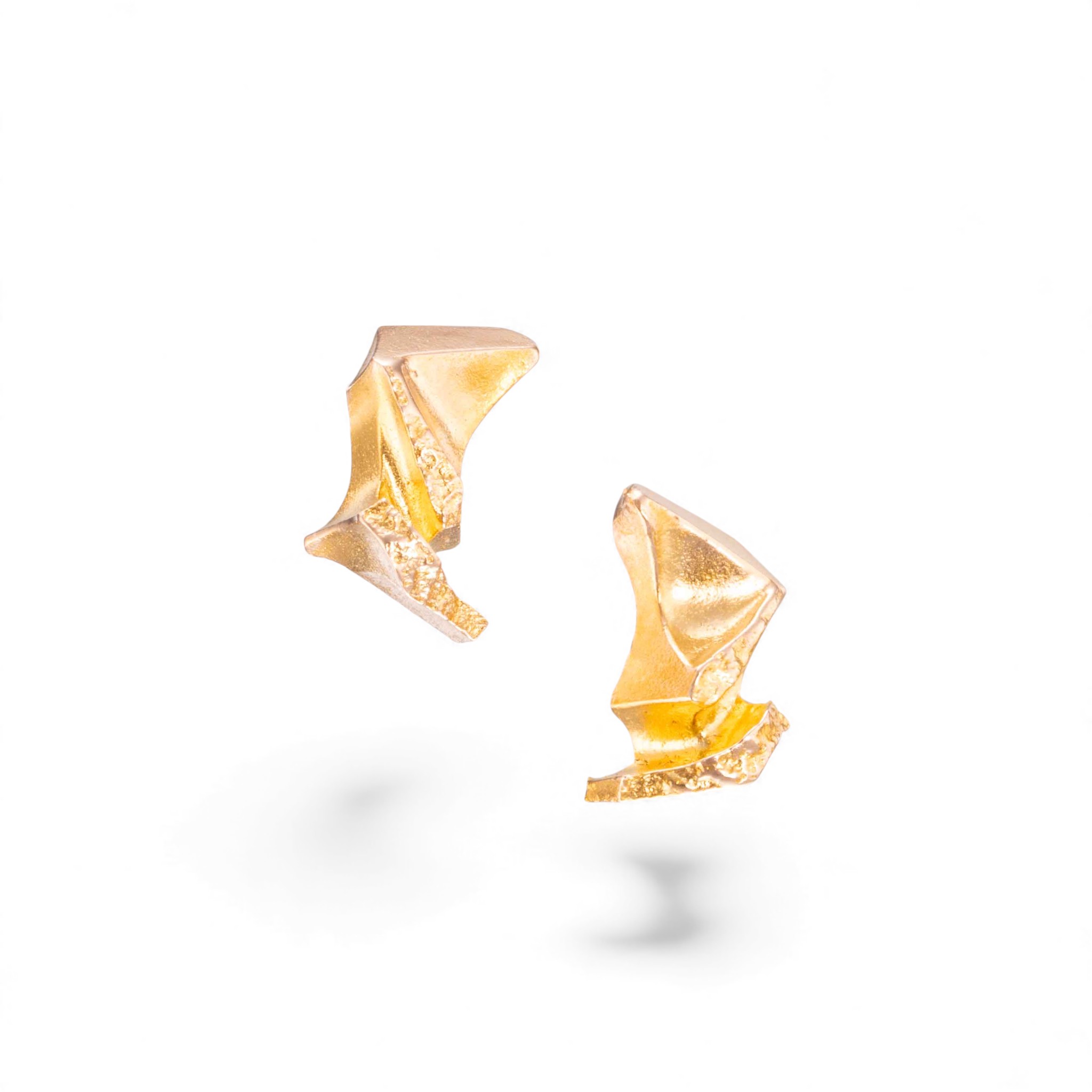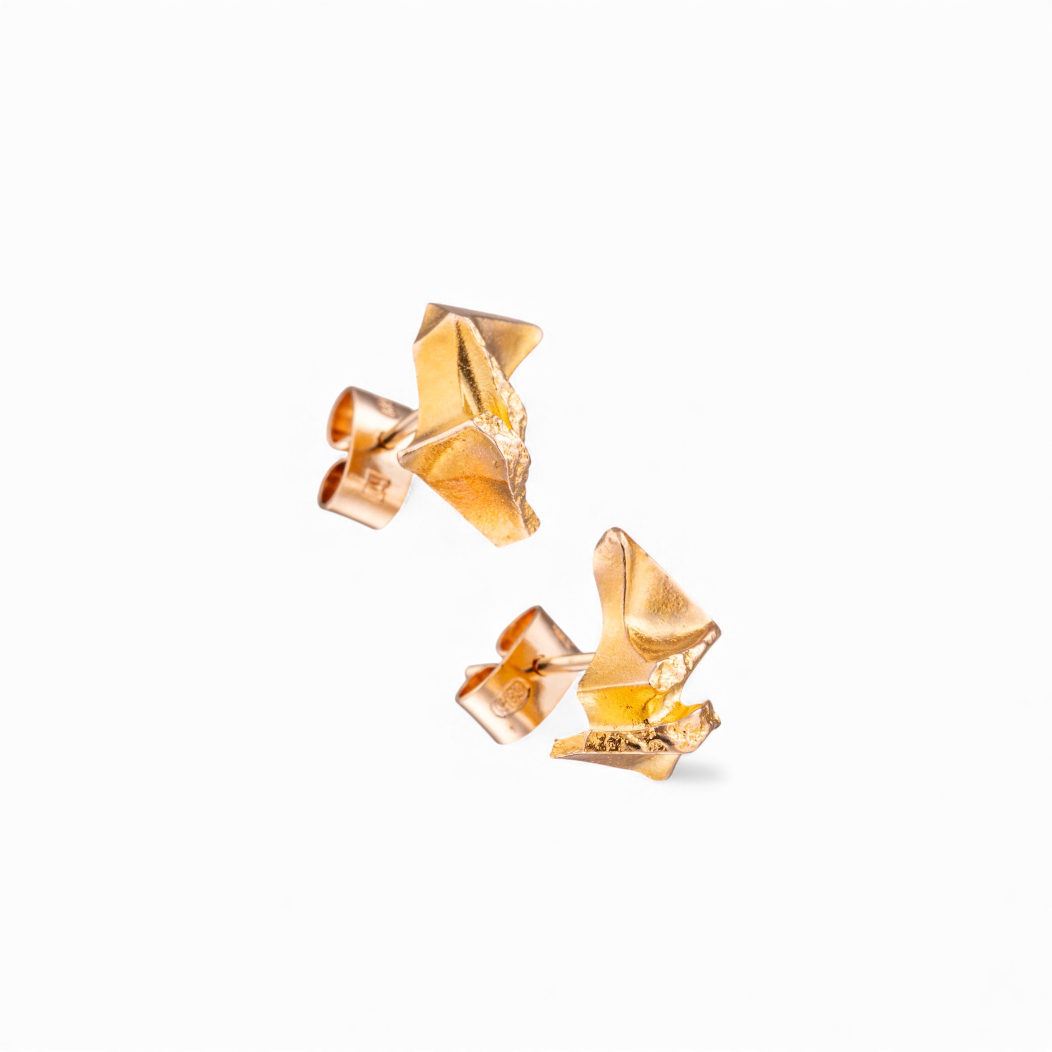 Par: Øredobber i 14 karat gult gull. Nugget-mønster. Design av anerkjente Björn Weckström for Lapponia. Finland. Sent 1900-tallet.