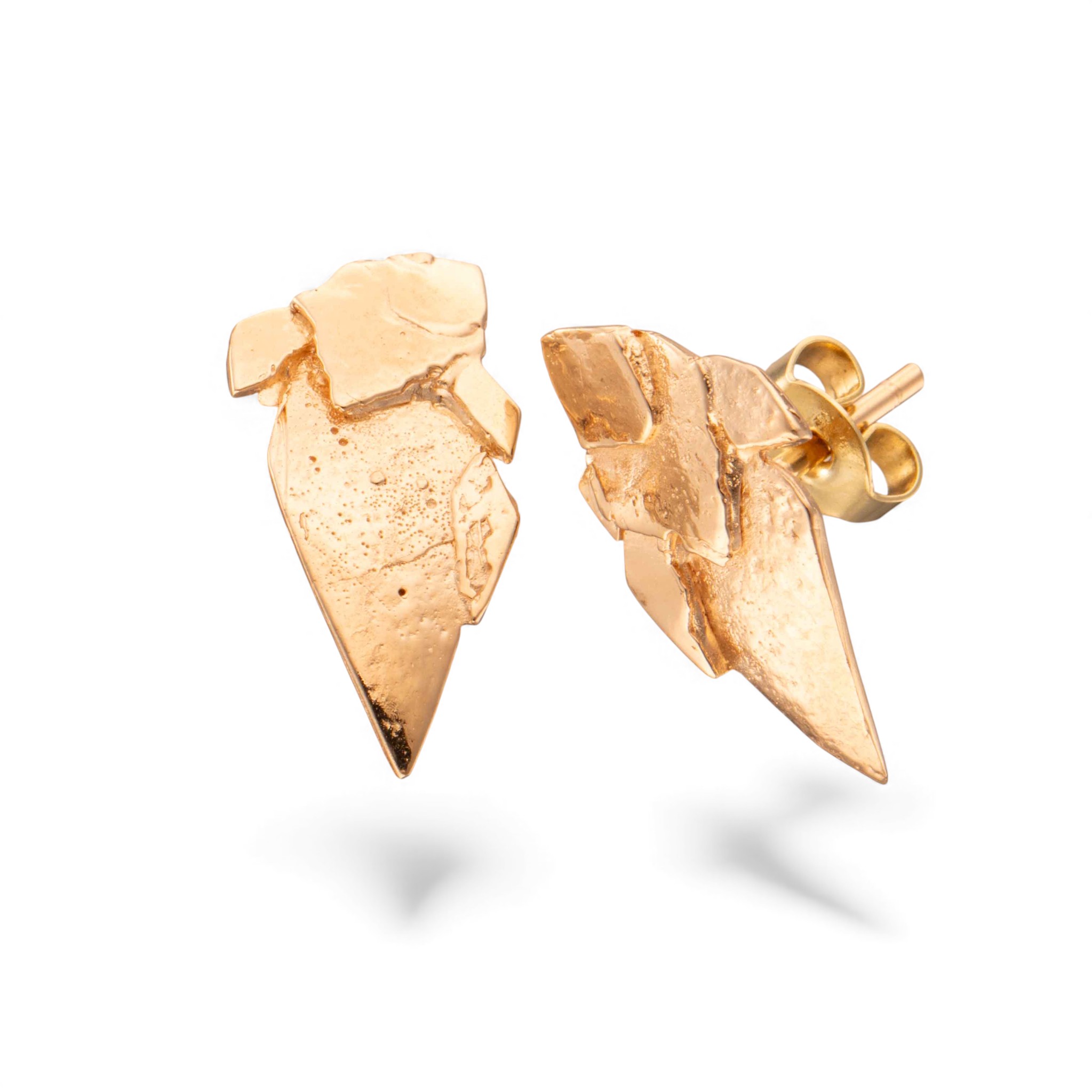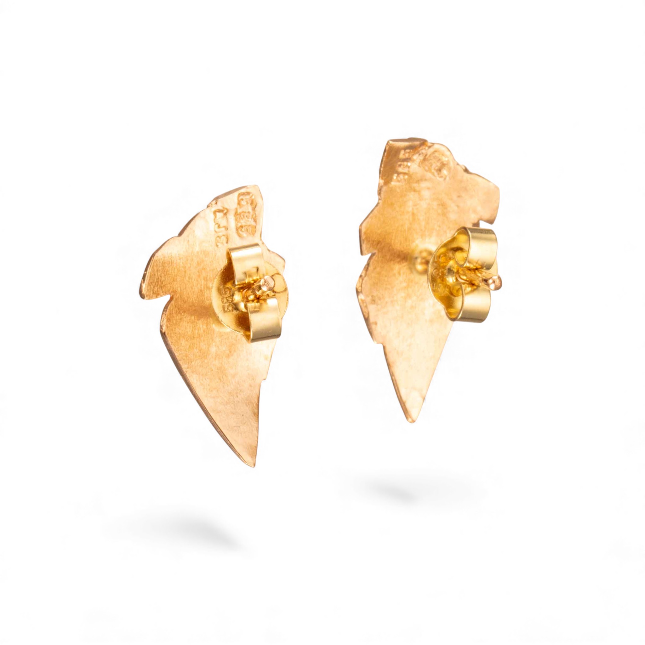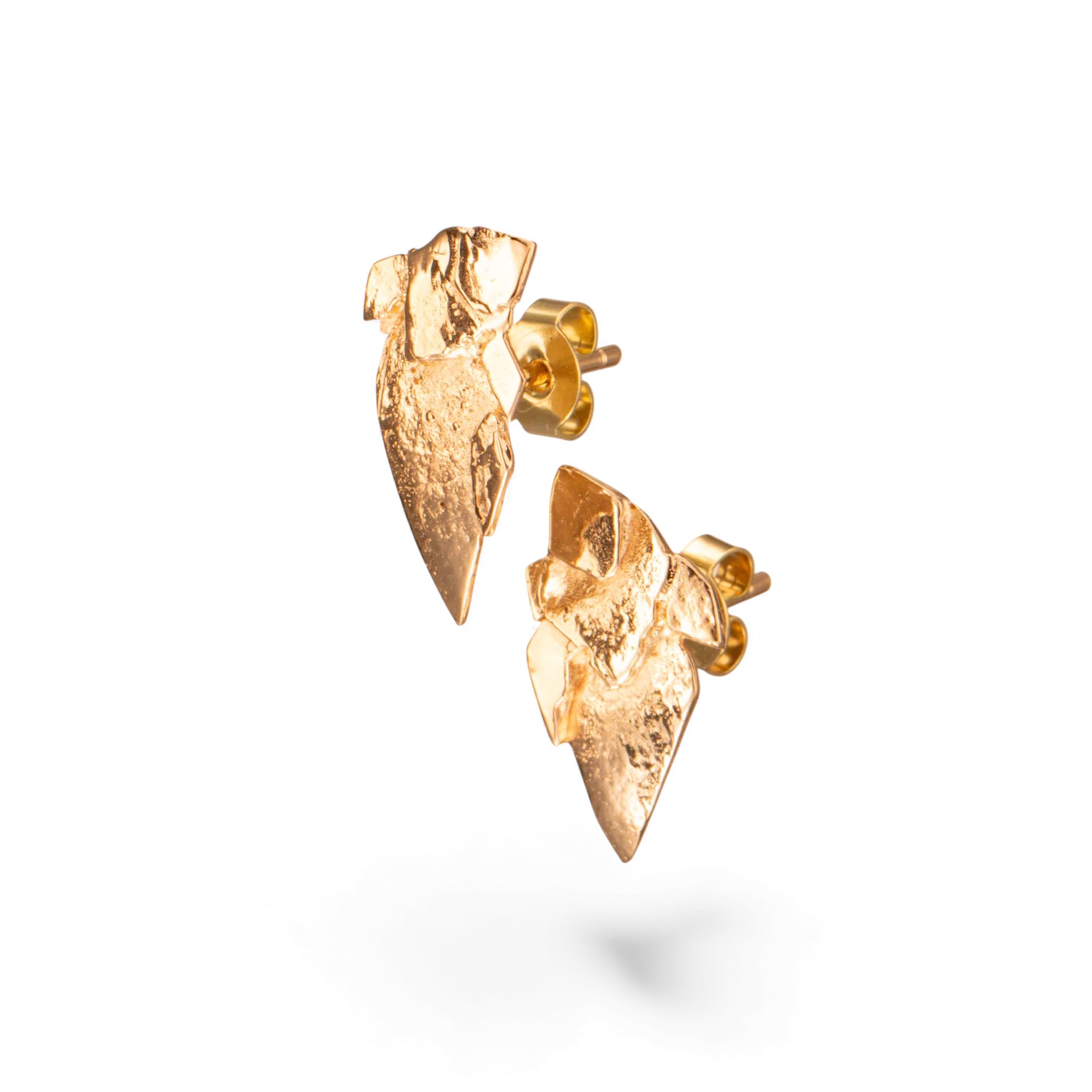Par: Øredobber i 14 karat gult gull. Flate med organisk mønster. Ansvarsmerket «AJS» for Arne & Jahn-Viggo´s Smie. Bergen. 1900-tallets andre halvdel.