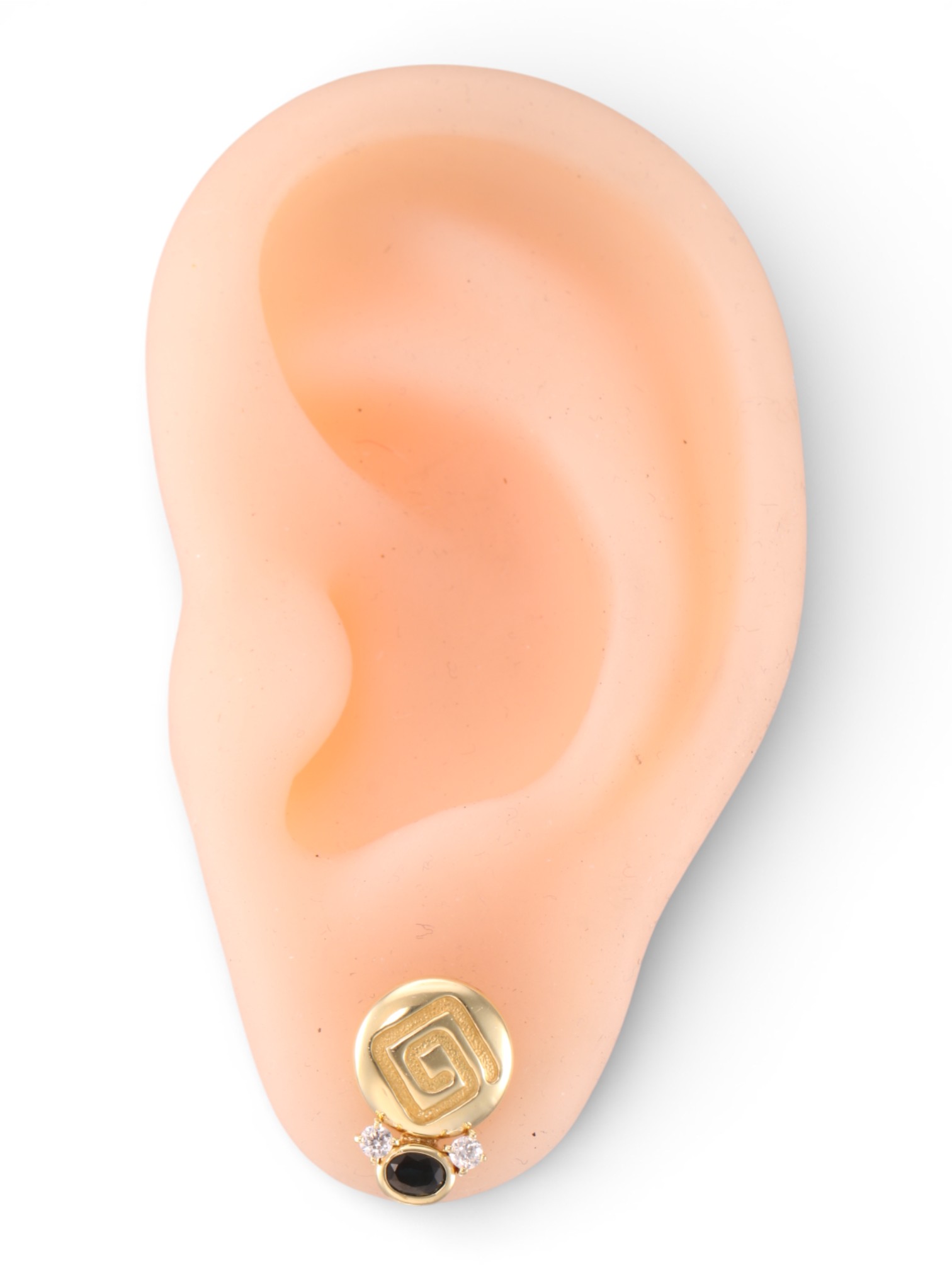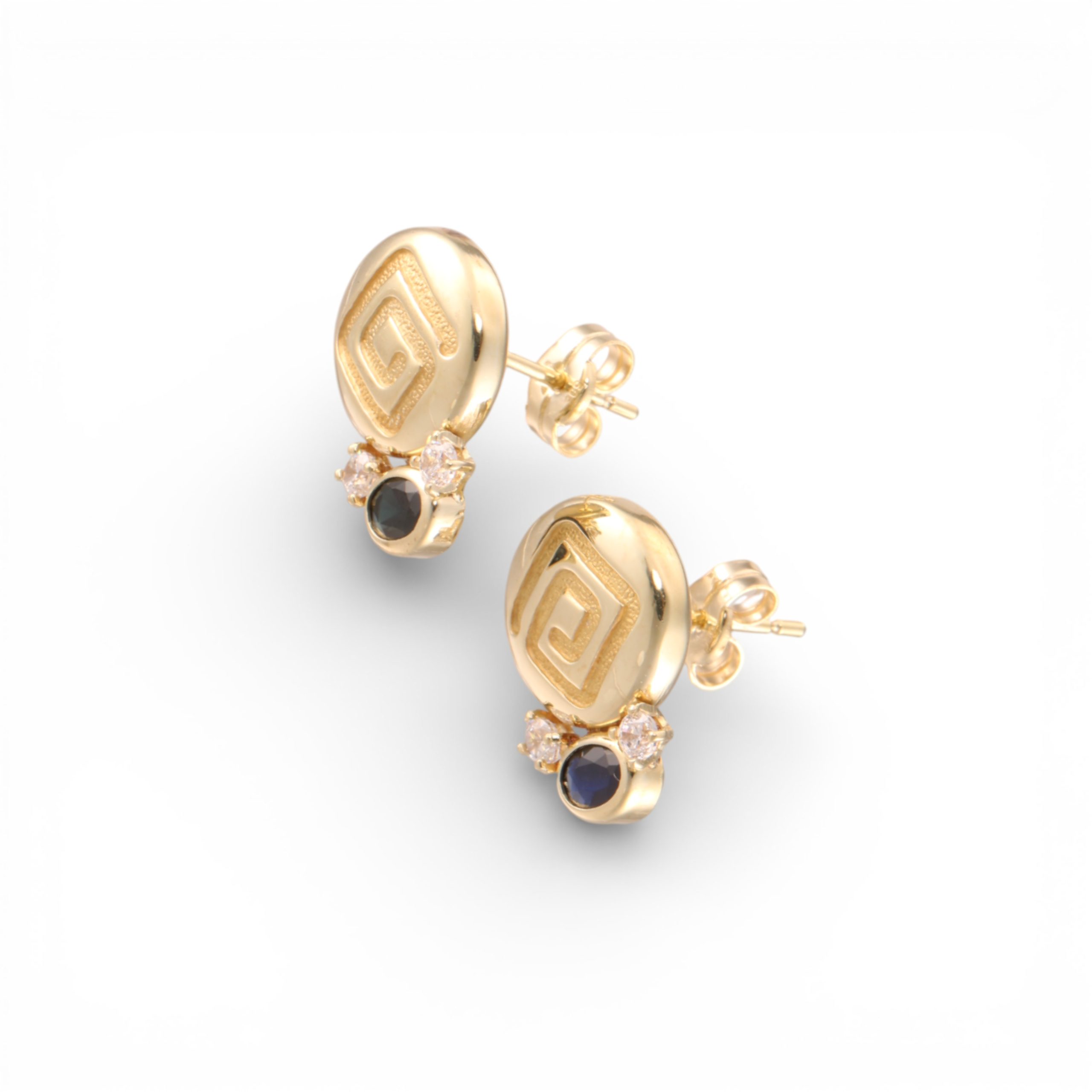 Par: Øredobber i 14 karat gult gull. Fattet med safir og zirkonia. Ørestoppere ansvarsmerket «EC» for E. Christophersen. Sandnes. Sent 1900- til tidl. 2000-tallet.