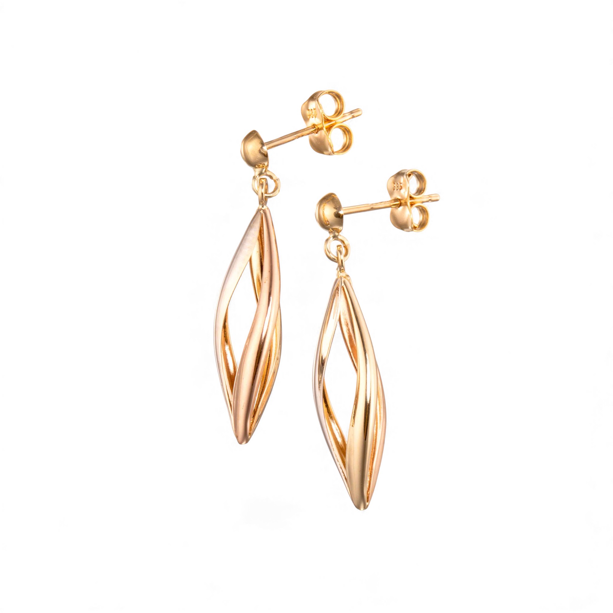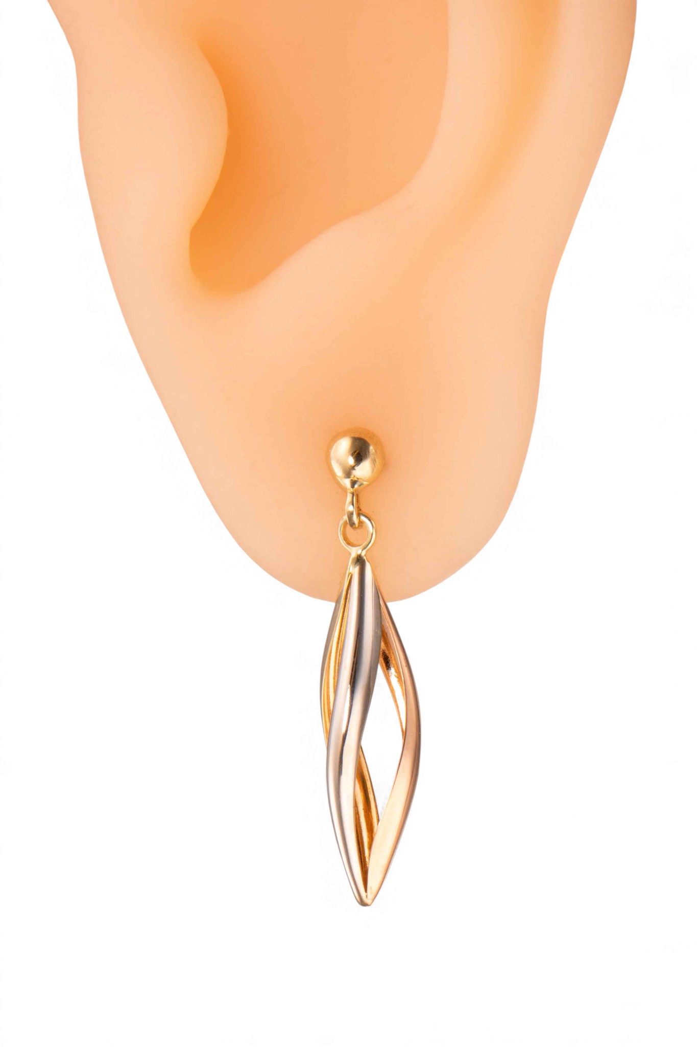 Par: Øredobber med langt heng i 14 karat gult og hvitt gull. Ansvarsmerket «SE» for Sigmund Espeland. Årnes. 1900-tallets andre halvdel.