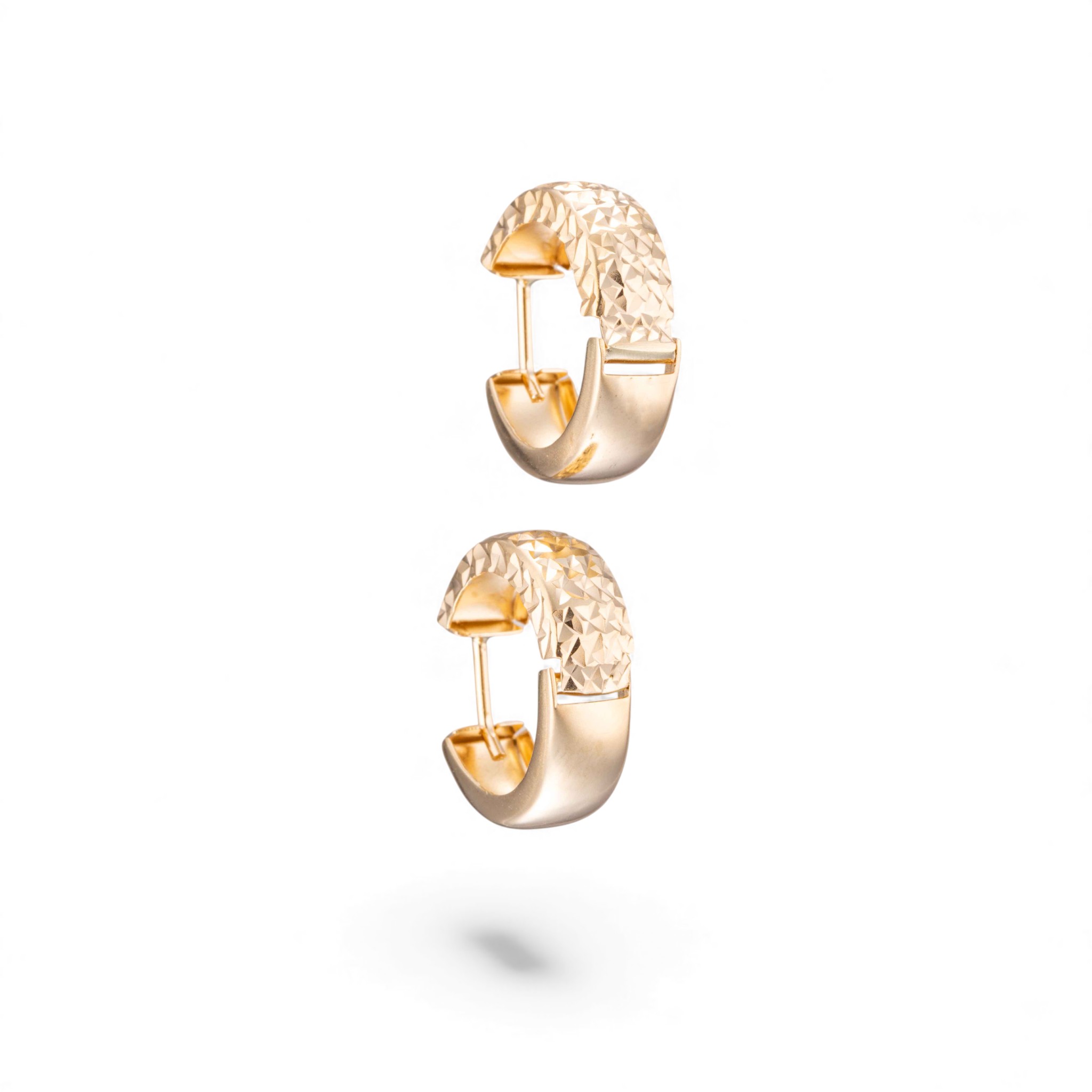 Par: Øreringer i 14 karat gult gull. Devis mønstret. Ansvarsmerket «Arpas». Istanbul. Sent 1900-tallet.