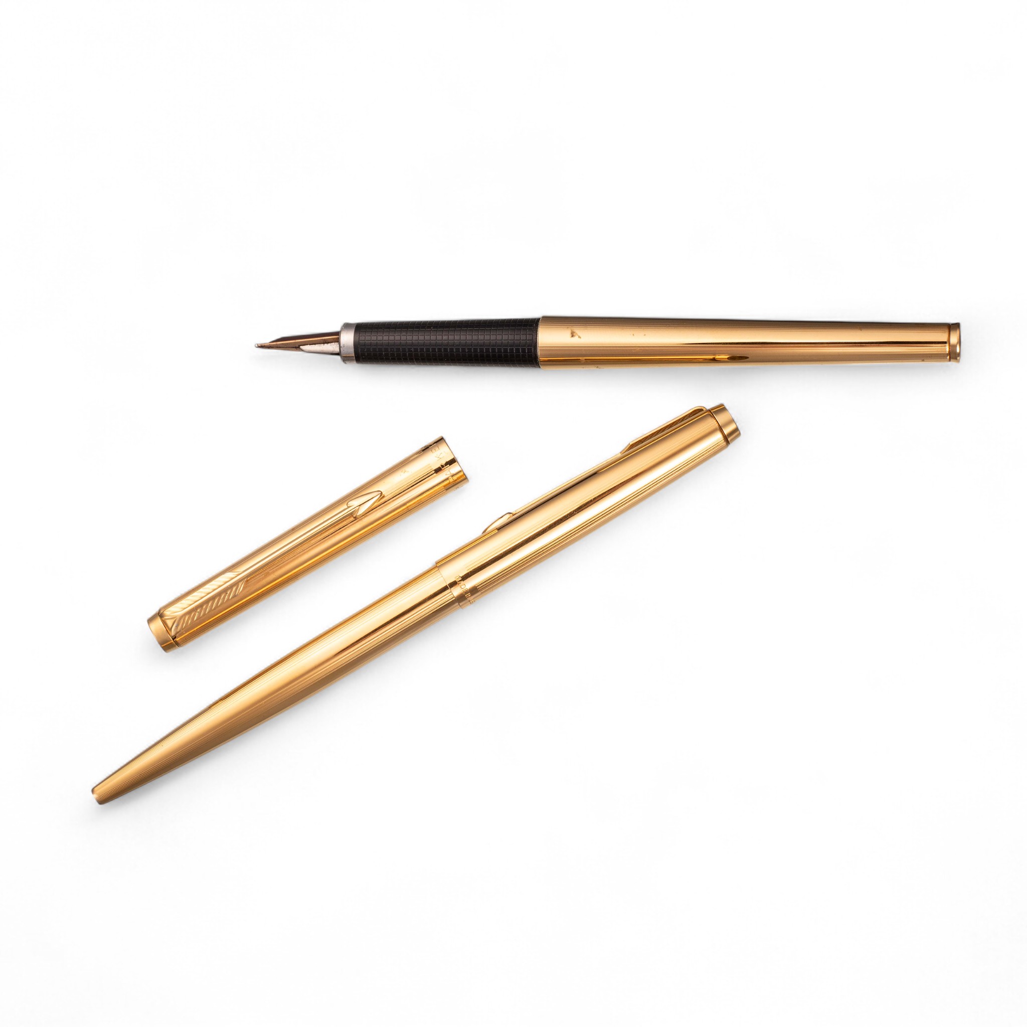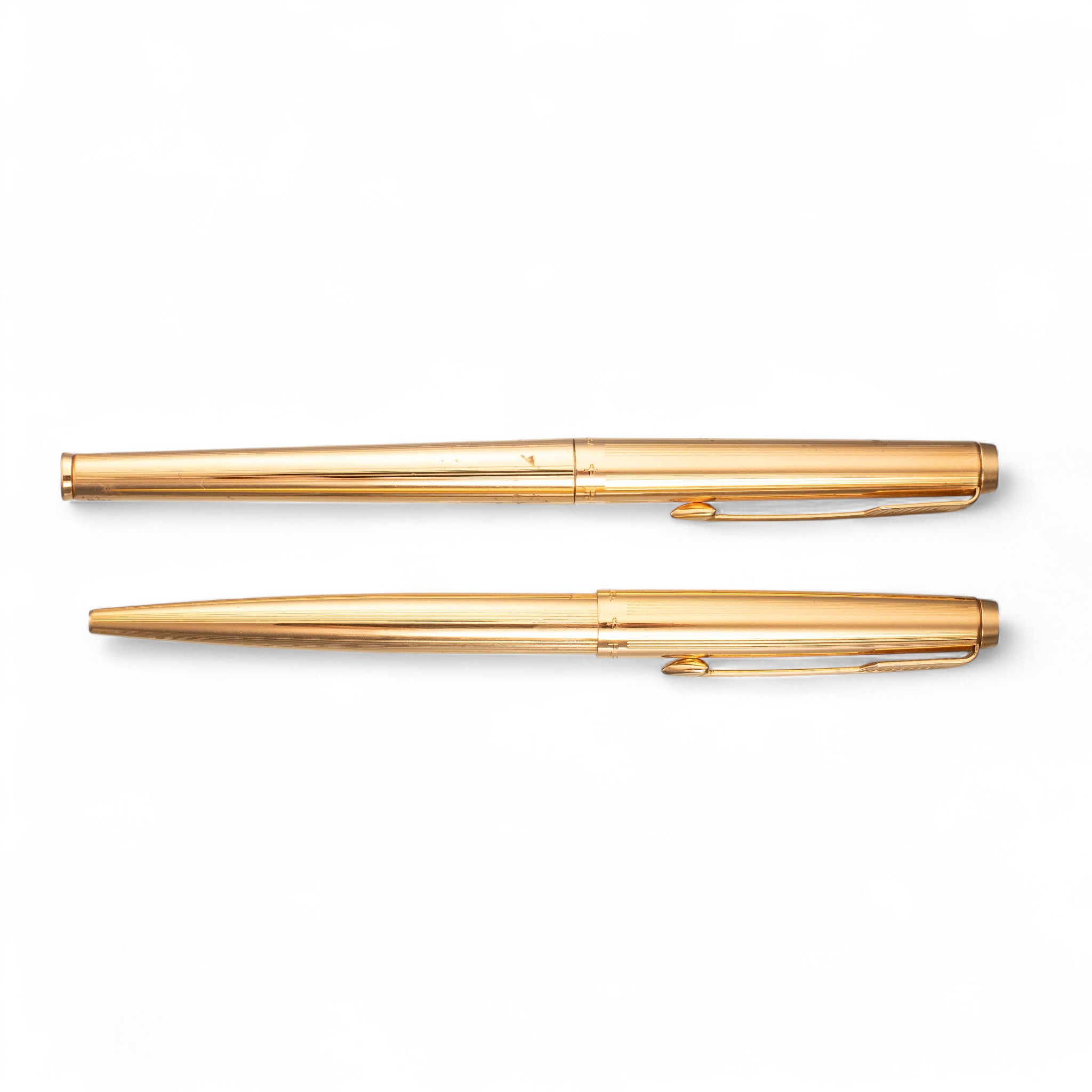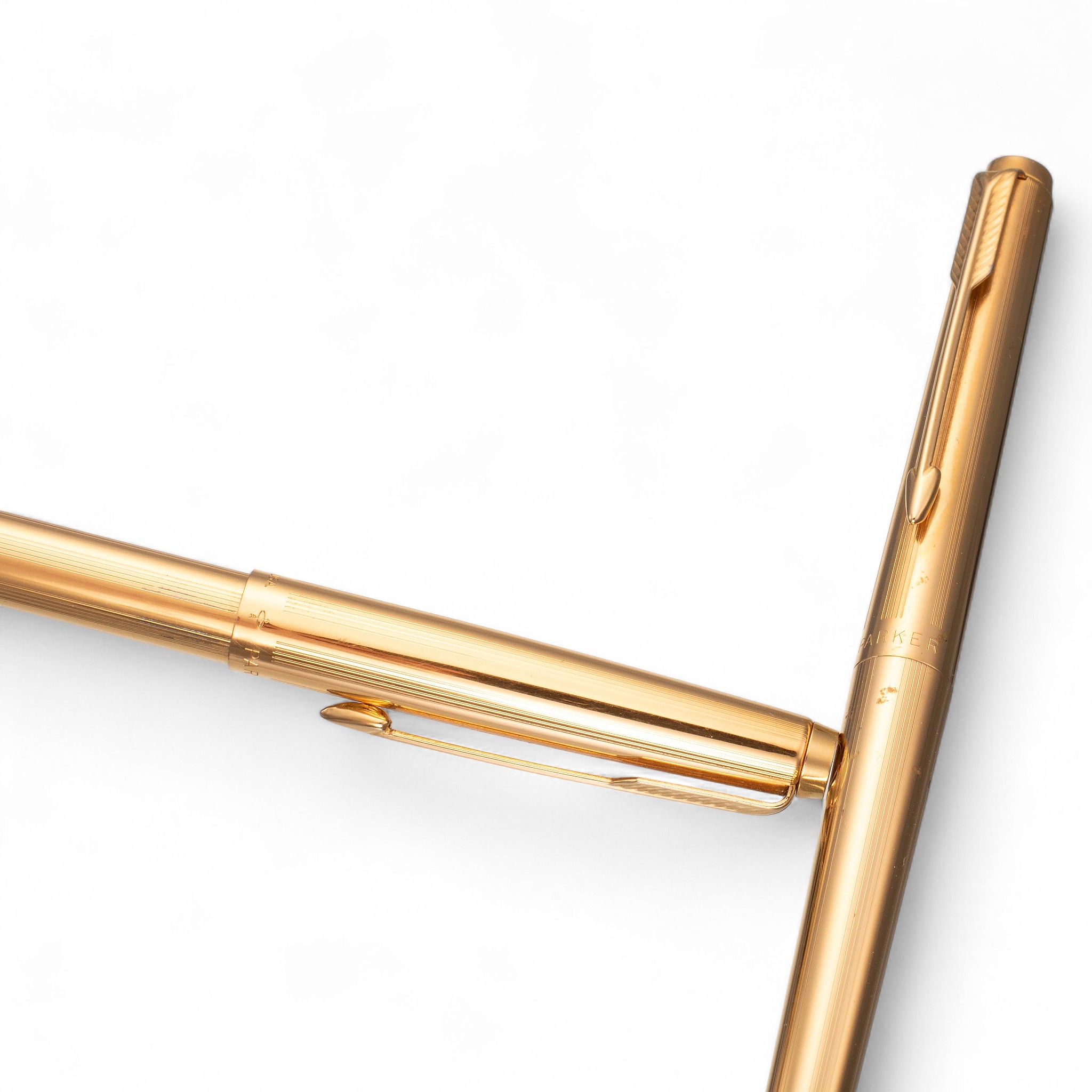 Samlet: Parker kulepenn uten innmat og Parker fyllepenn. Forgylt metall. USA. 1900-tallets andre halvdel.