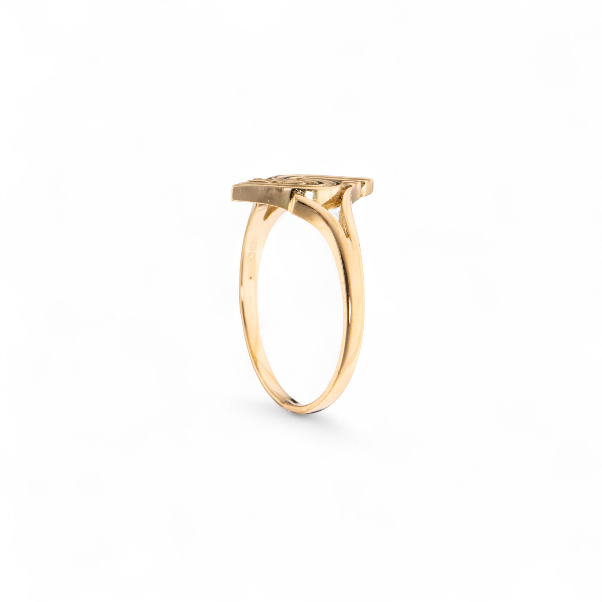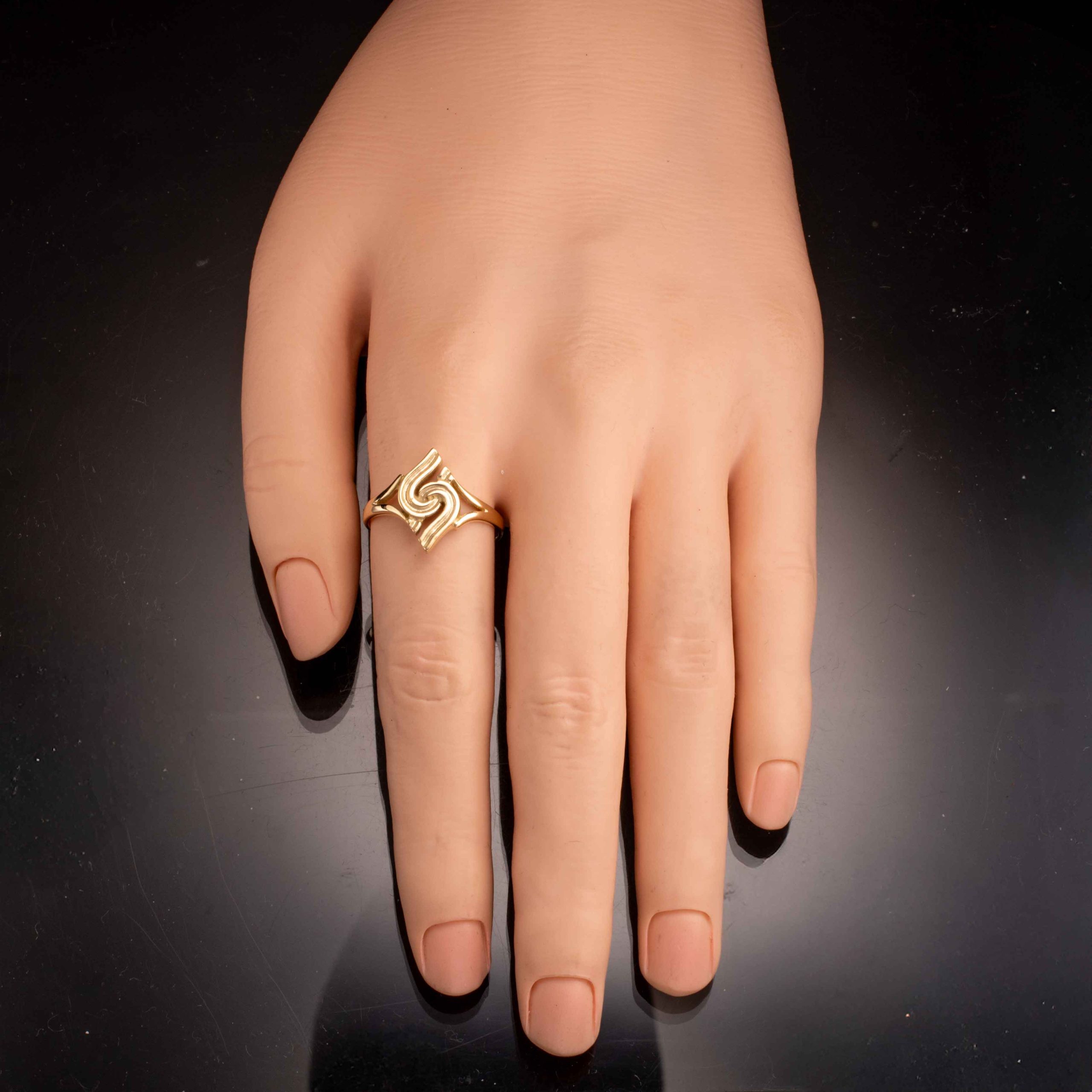 Ring i 14 karat gult gull. Ansvarsmerket for Sigurd Homstvedt. Bergen. 1900-tallets andre halvdel.