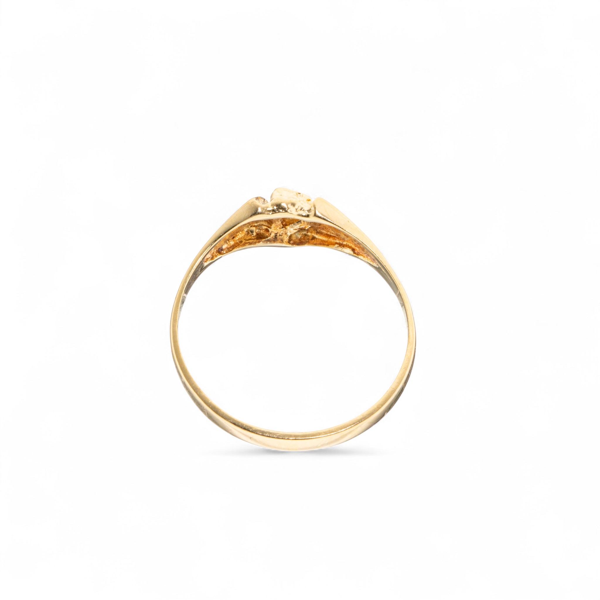 Ring i 14 karat gult gull. Nugget-mønster. Ansvarsmerket “EC” for E. Christophersen. Sandnes. 1900-tallets andre halvdel.