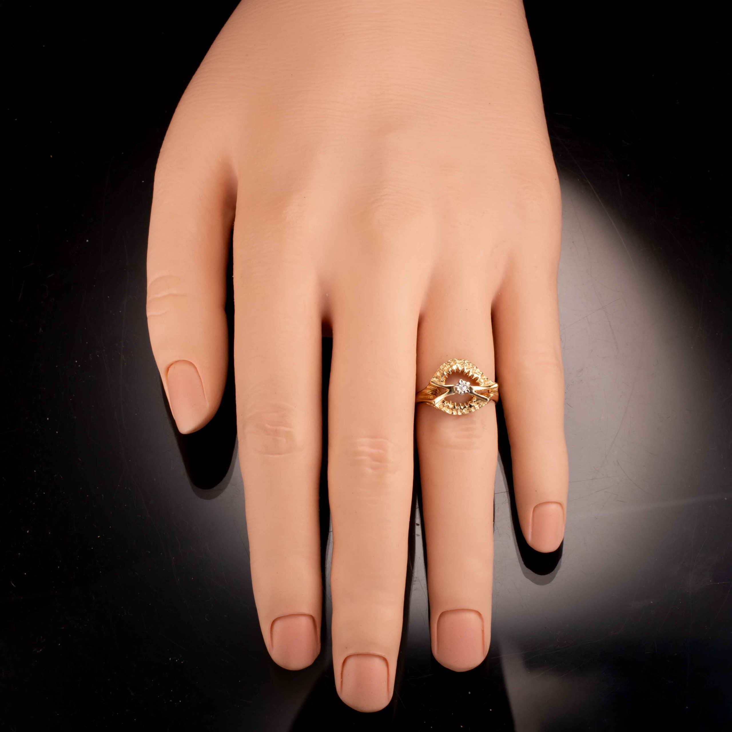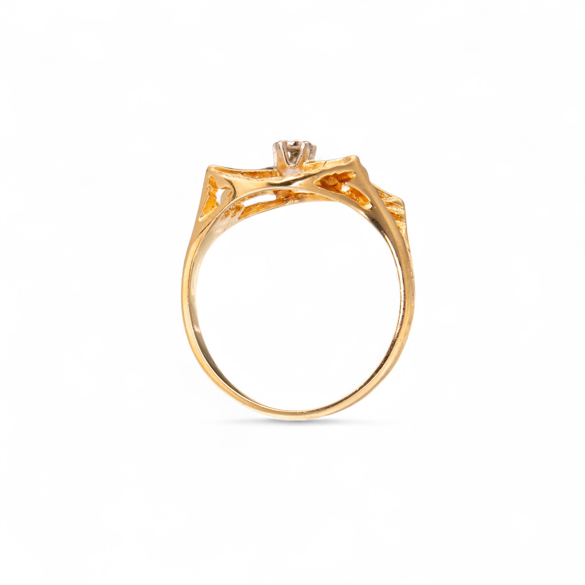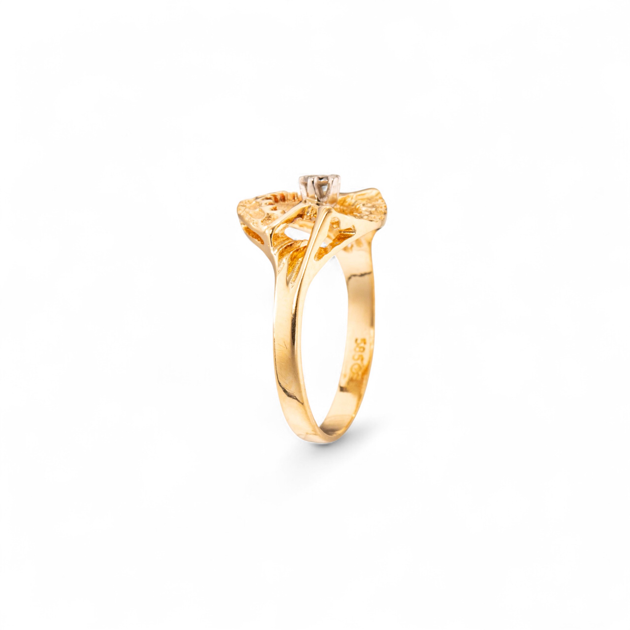 Ring i 14 karat gult gull. Fattet med en roseslipt diamant (ca. 0,025 ct.). Ansvarsmerket for Sigurd Homstvedt. Bergen. 1900-tallets andre halvdel.