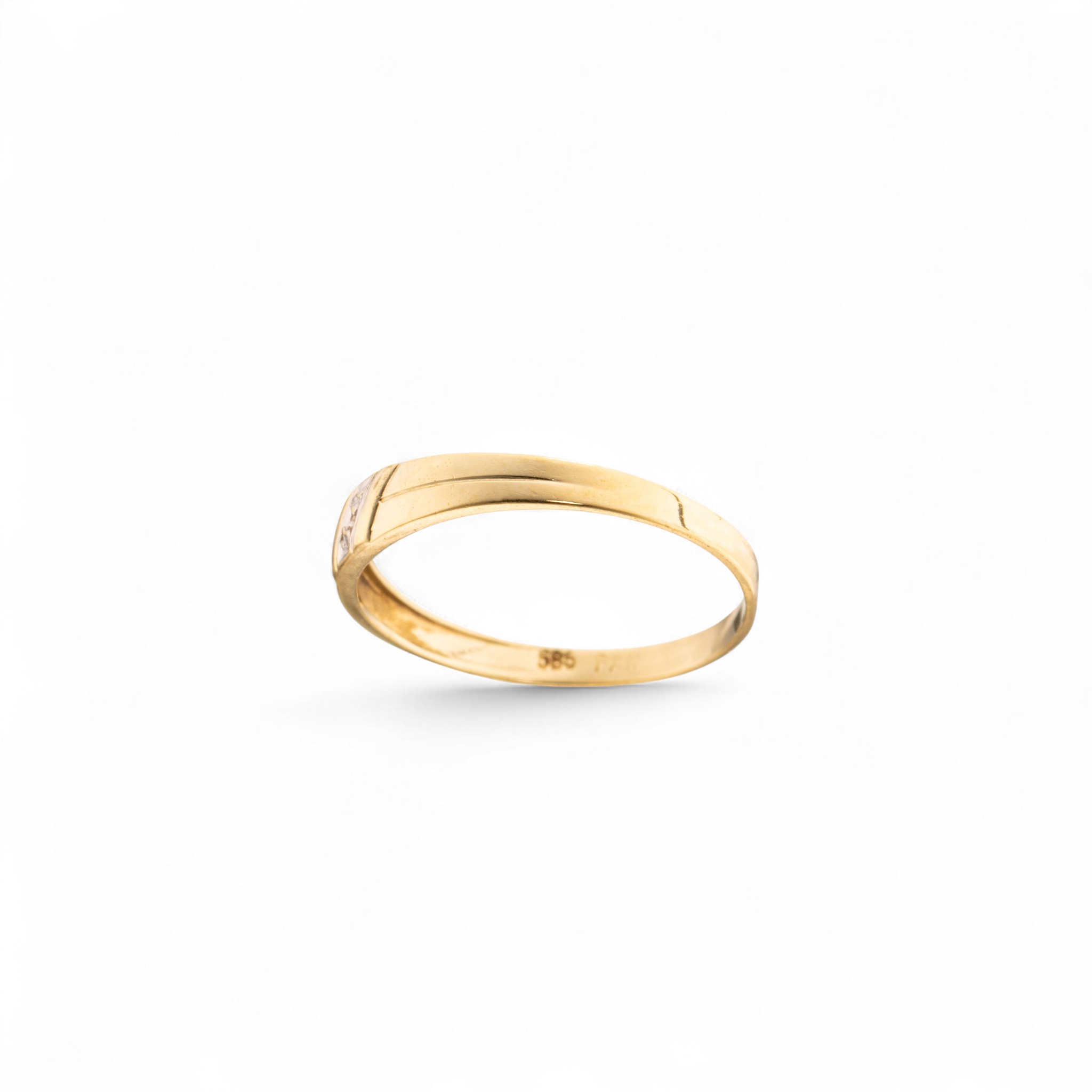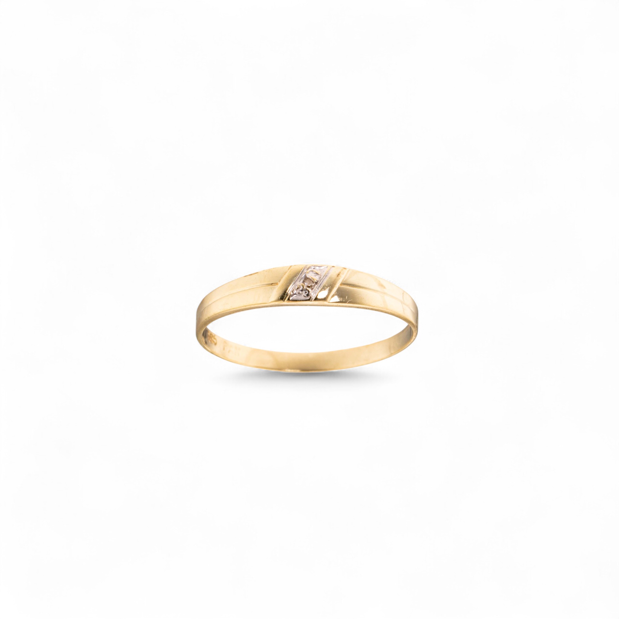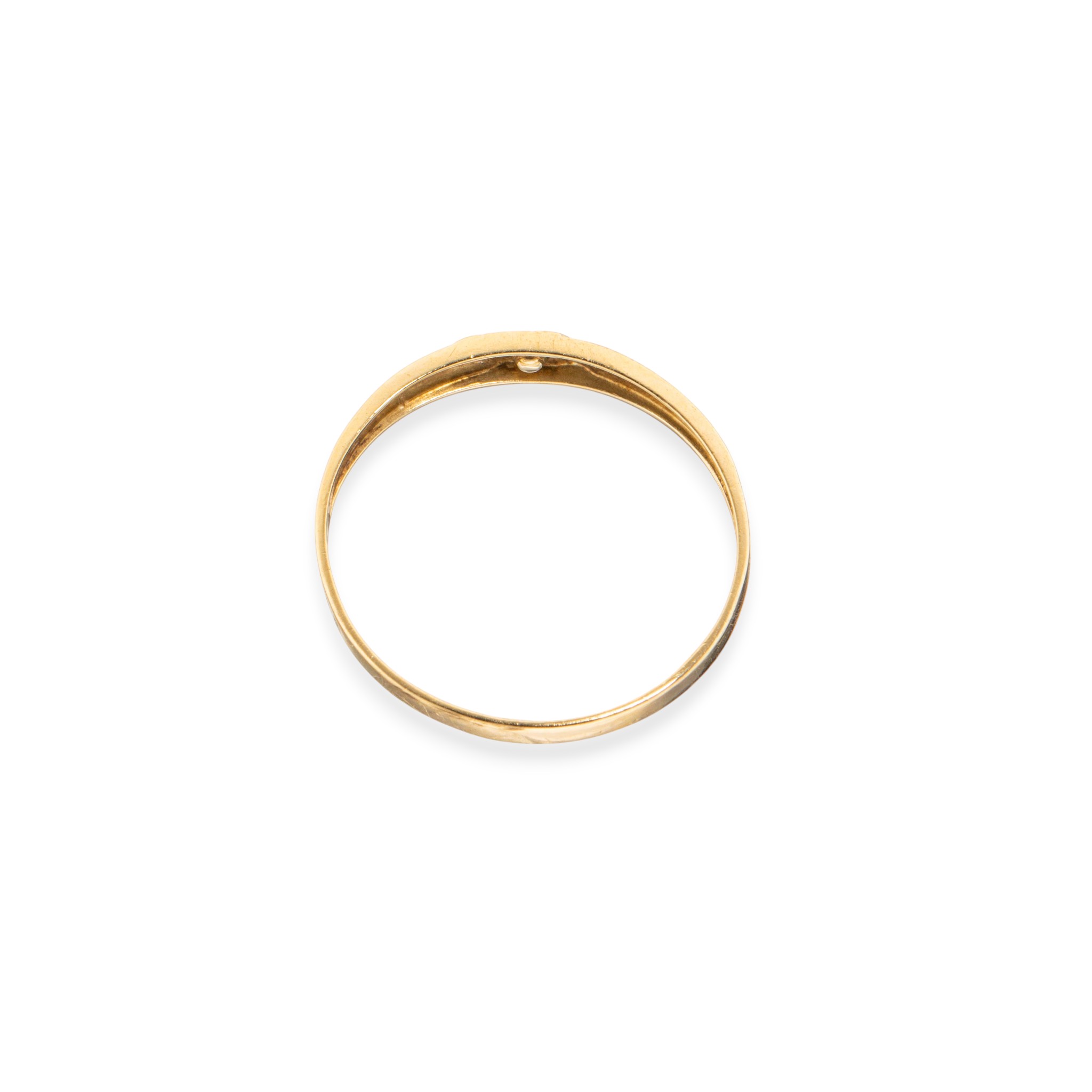 Ring i 14 karat gult gull fattet med en liten, roseslipt diamant (ca. 0,0025 ct.). Ansvarsmerket «PAN» for «Panorama AS». Kolbjørnsvik. Sent 1900-tallet.