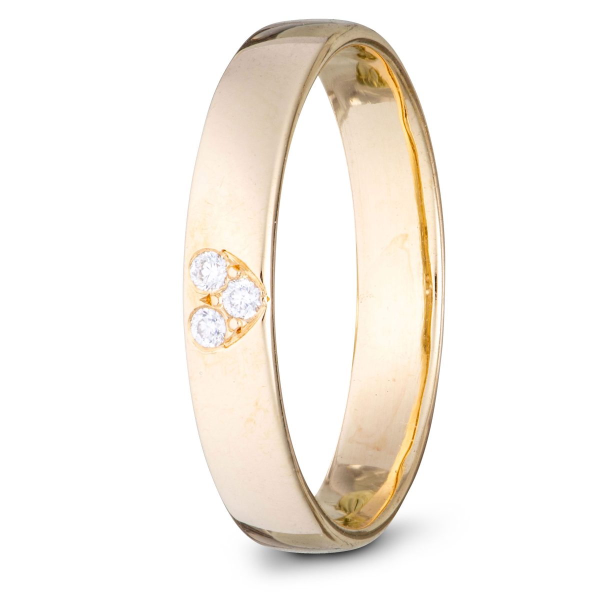 Ring i gult gull fra Sigurd Homstvedt. Fattet med tre diamanter (tot. 0,05 ct.) i et hjerte.