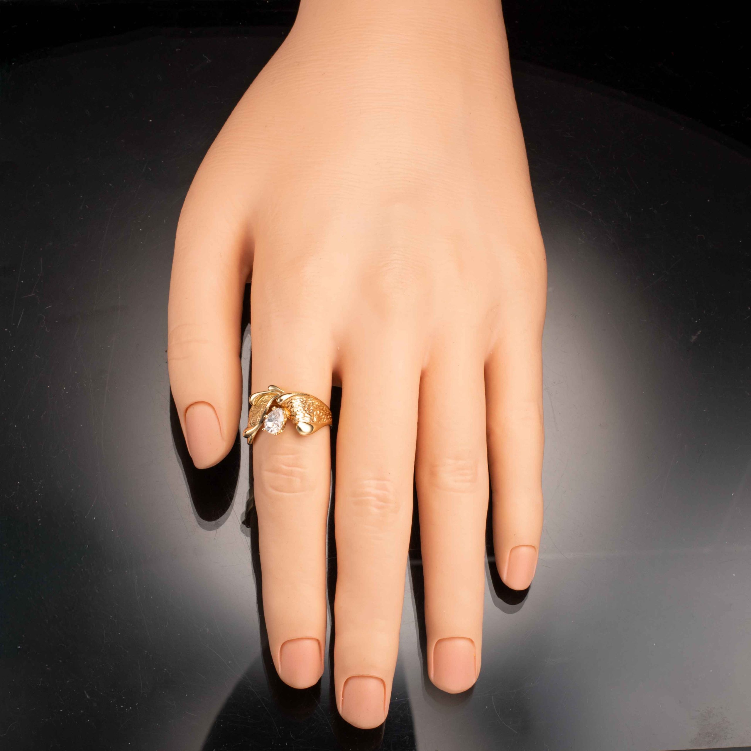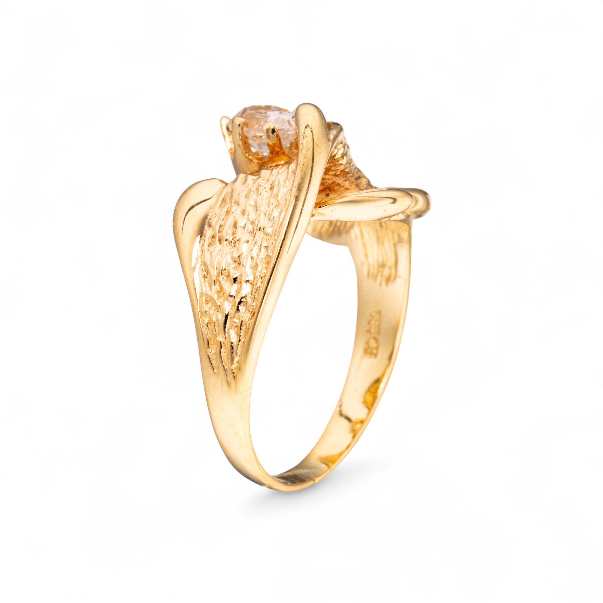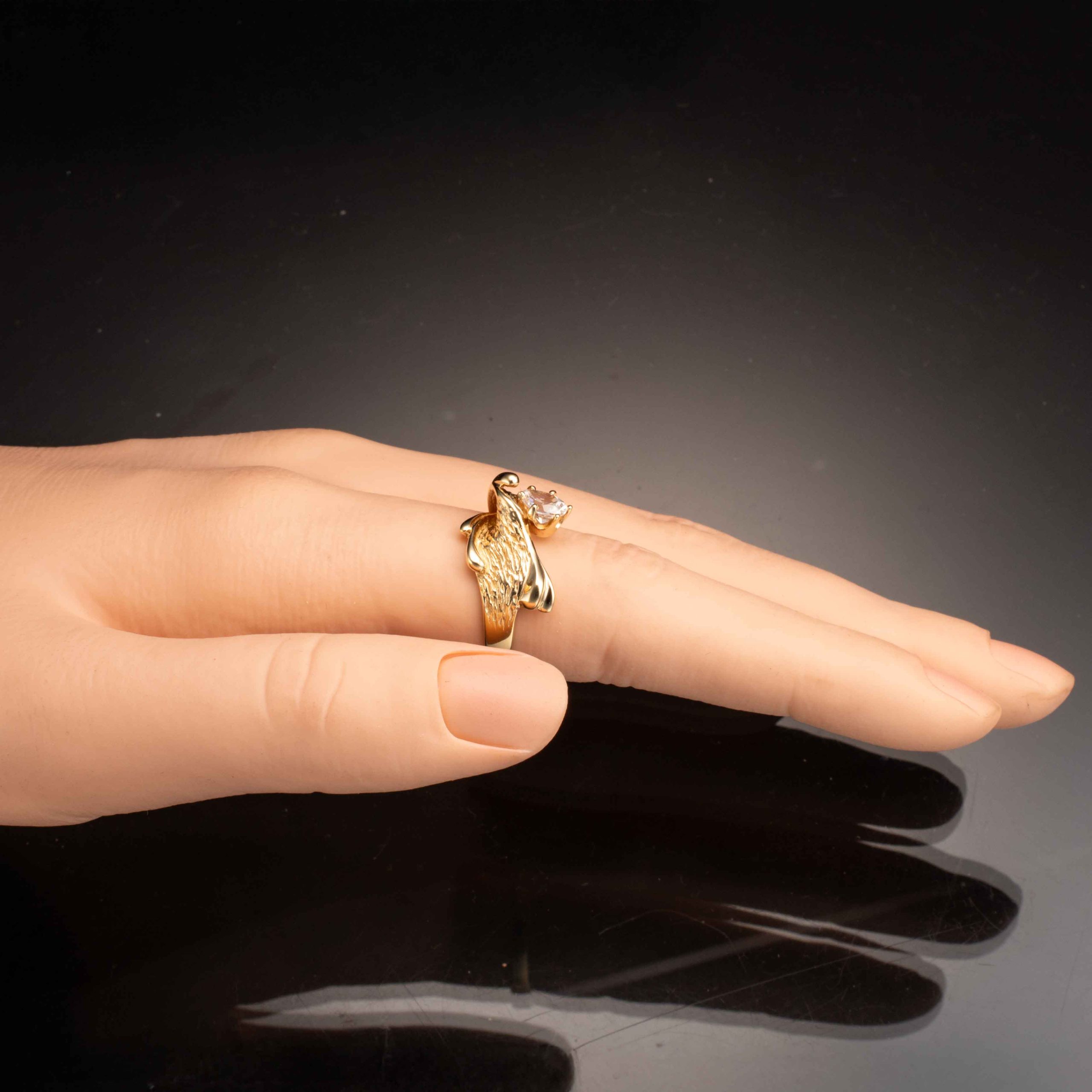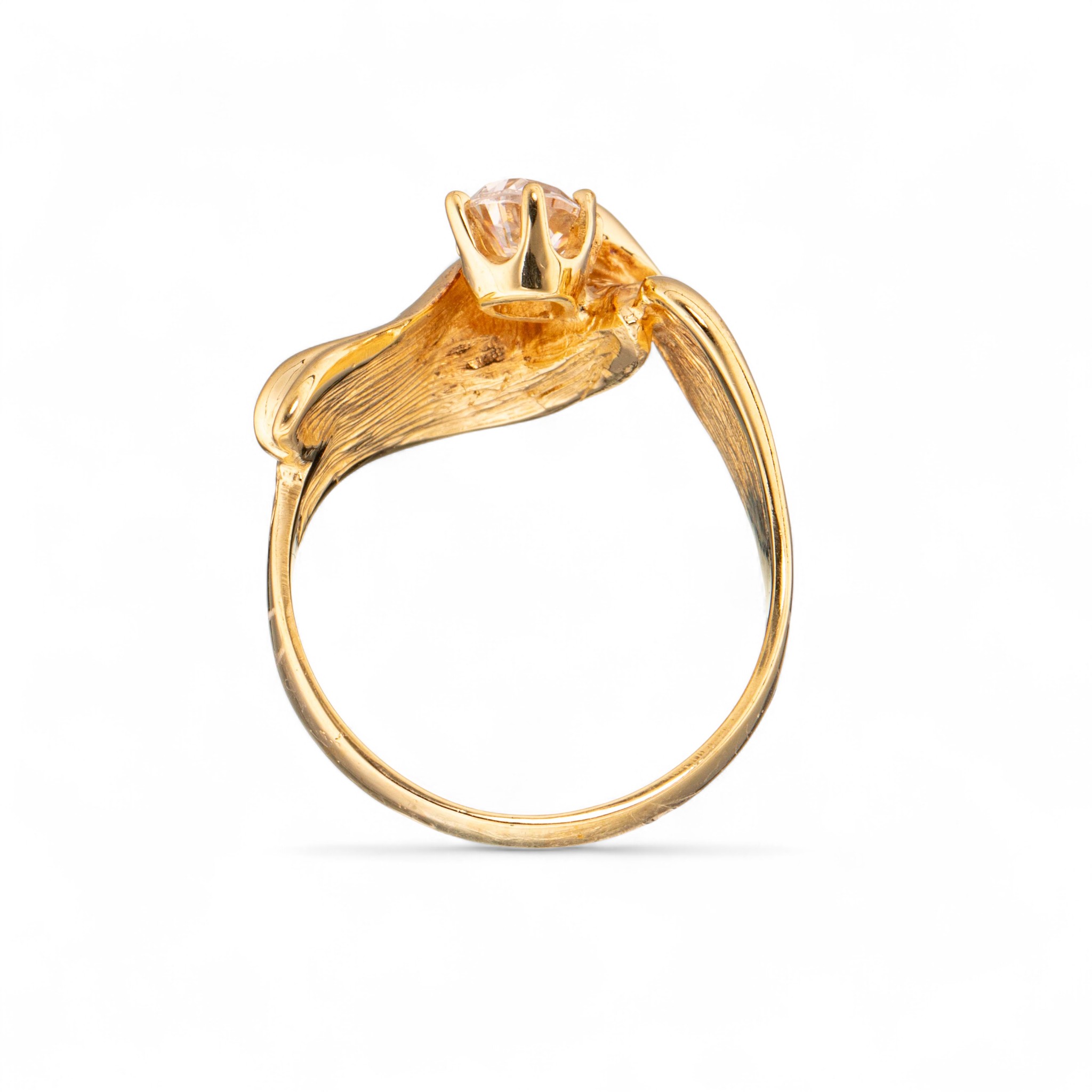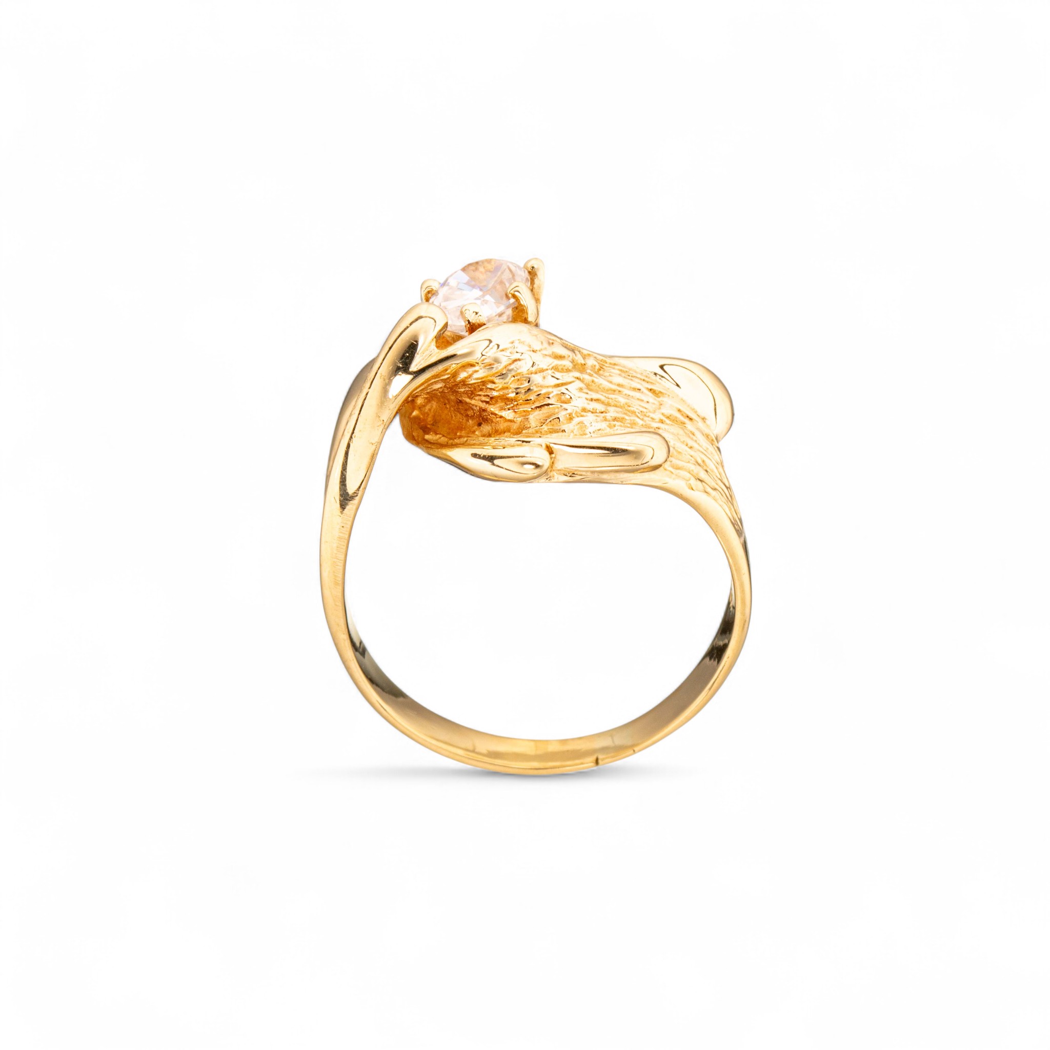 Ring i 14 karat gult gull fattet med pæreslipt zirkonia. Organisk utførelse. Ansvarsmerket for Sigurd Homstvedt. Bergen. Sent 1900- til tidl. 2000-tallet.