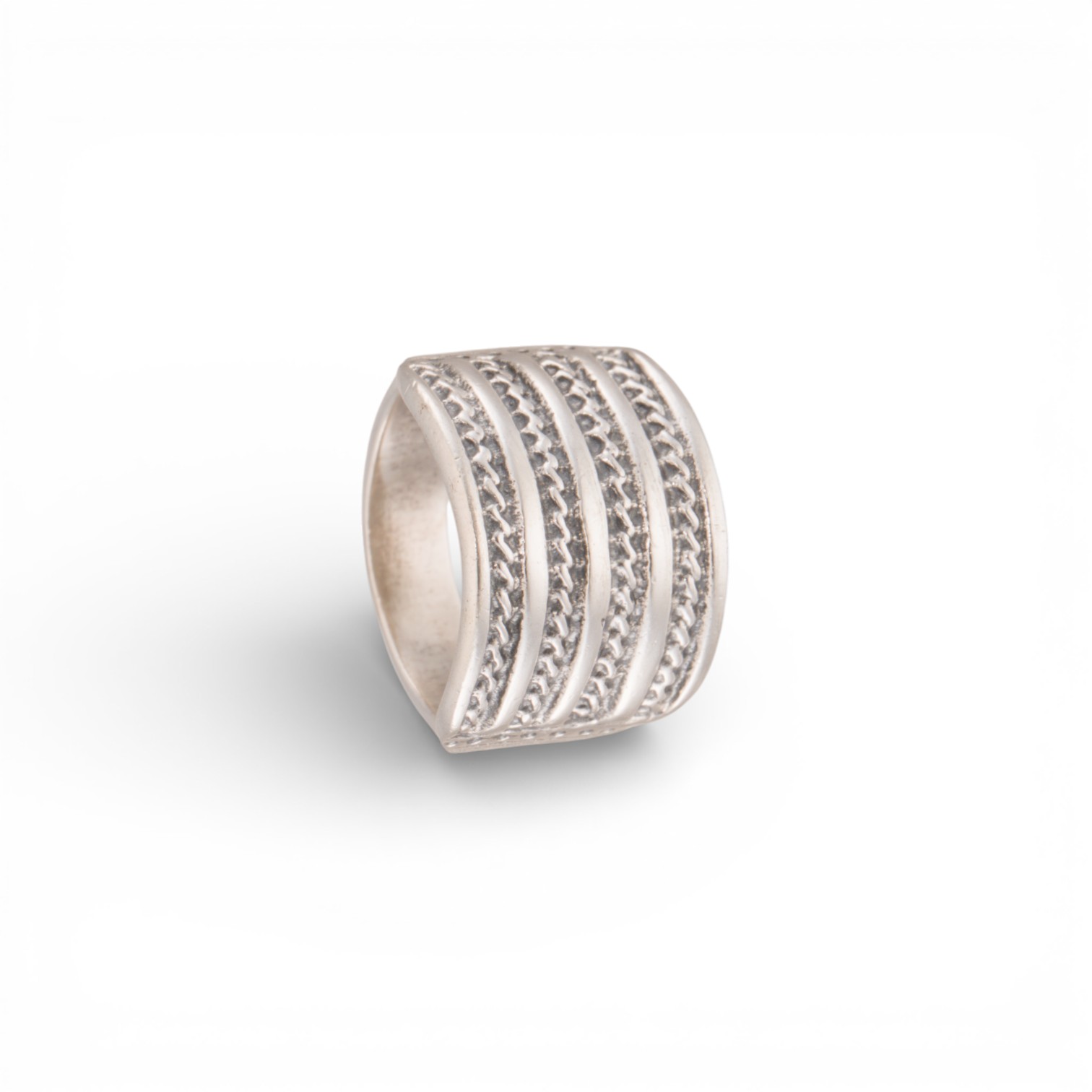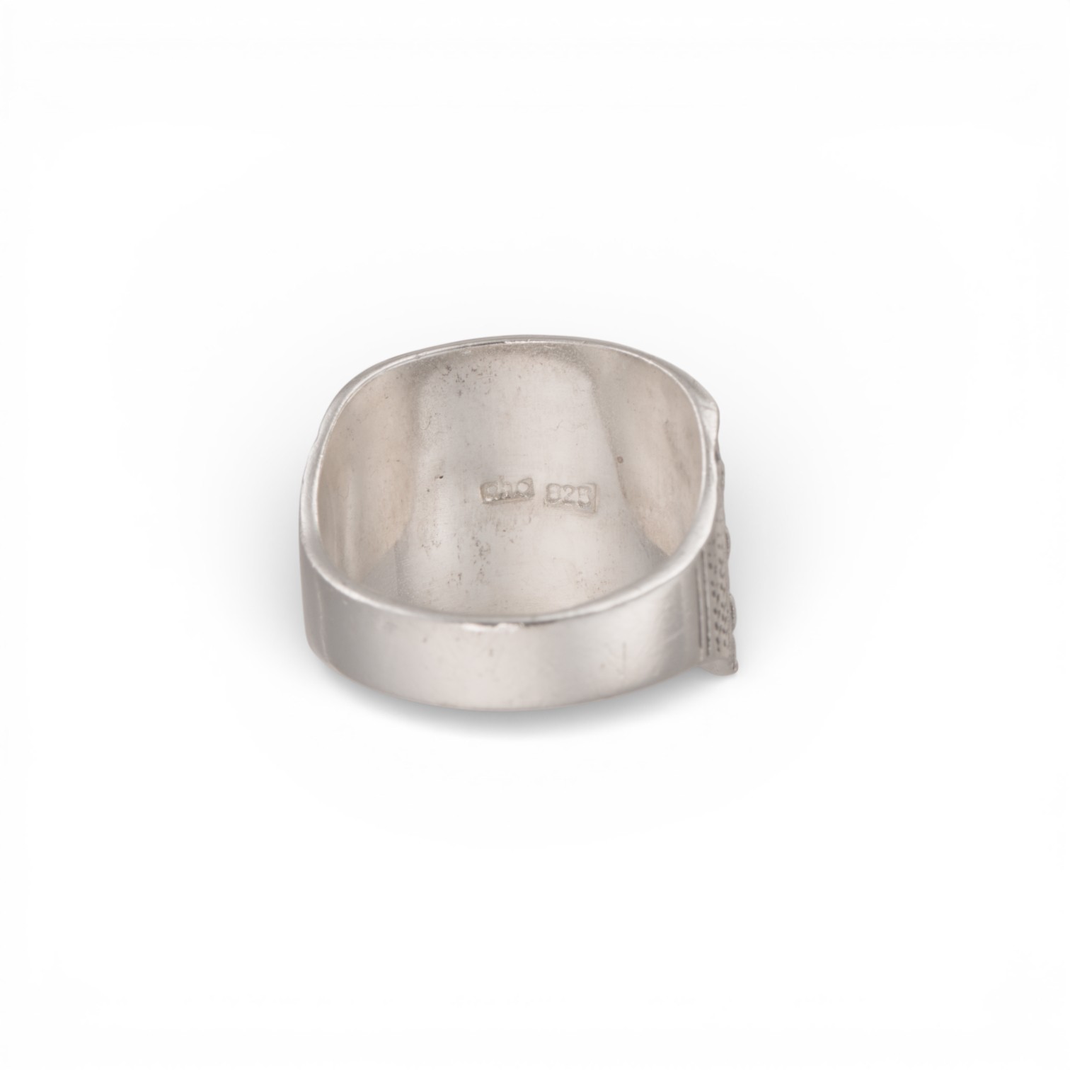 Ring i sterling sølv. Liten størrelse. Gammel nordisk stil. Ansvarsmerket «aha» for Astri Holthe A.S. Arendal. Sent 1900-tallet.