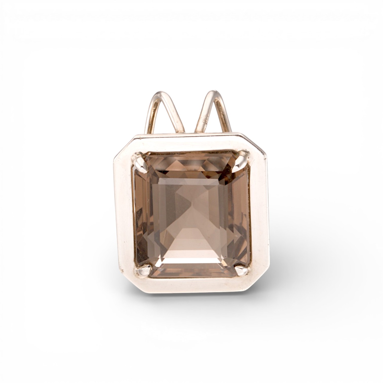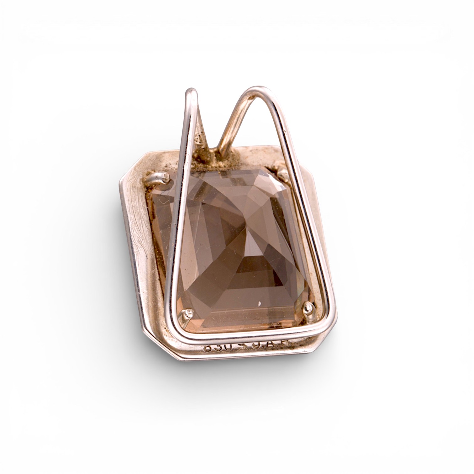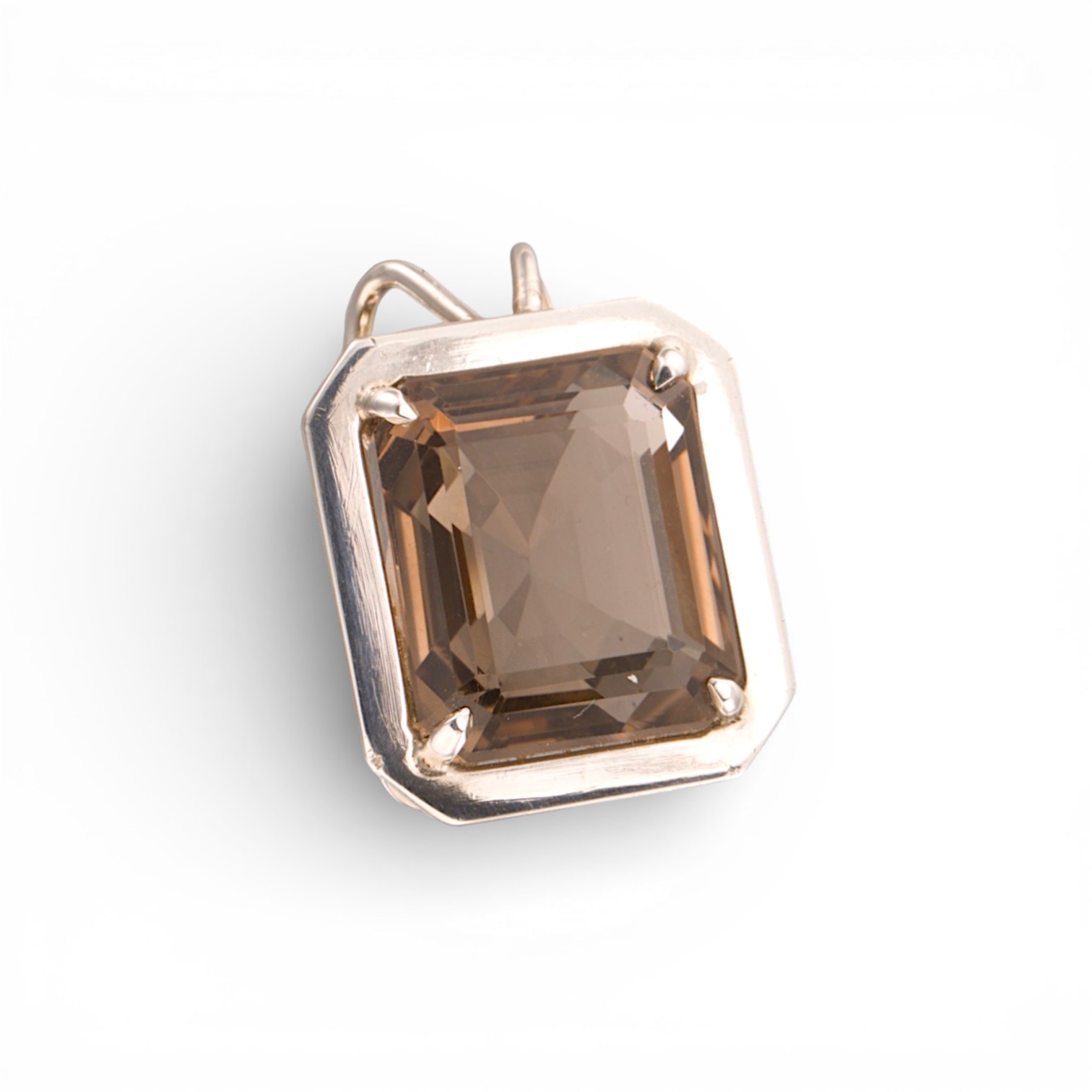 Anheng i sølv fattet med stor røkkvarts. Ansvarsmerket «J.A.B.» for Jørgen Ambrosius Berner. Stavanger. Modernisme. 1900-tallets andre halvdel.
