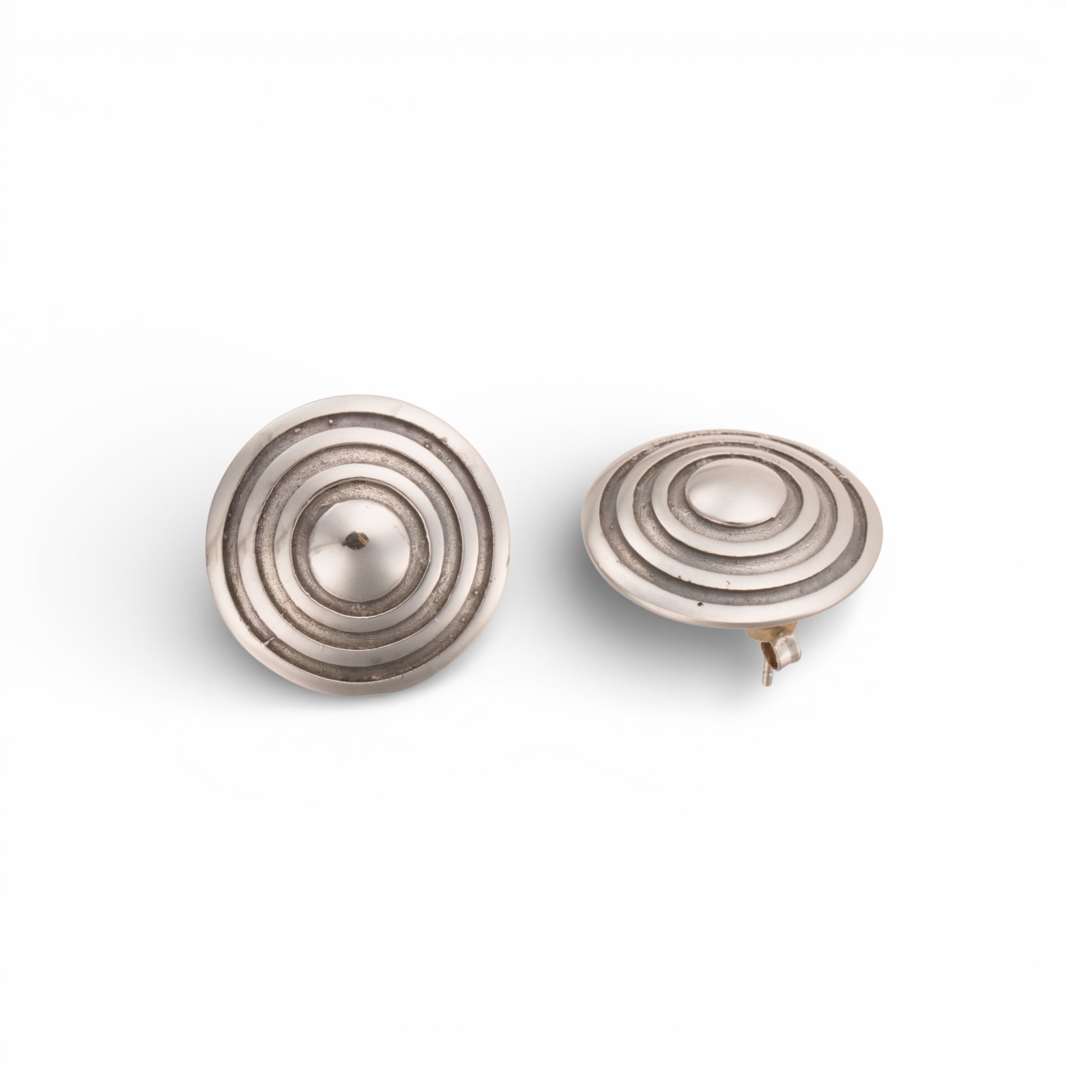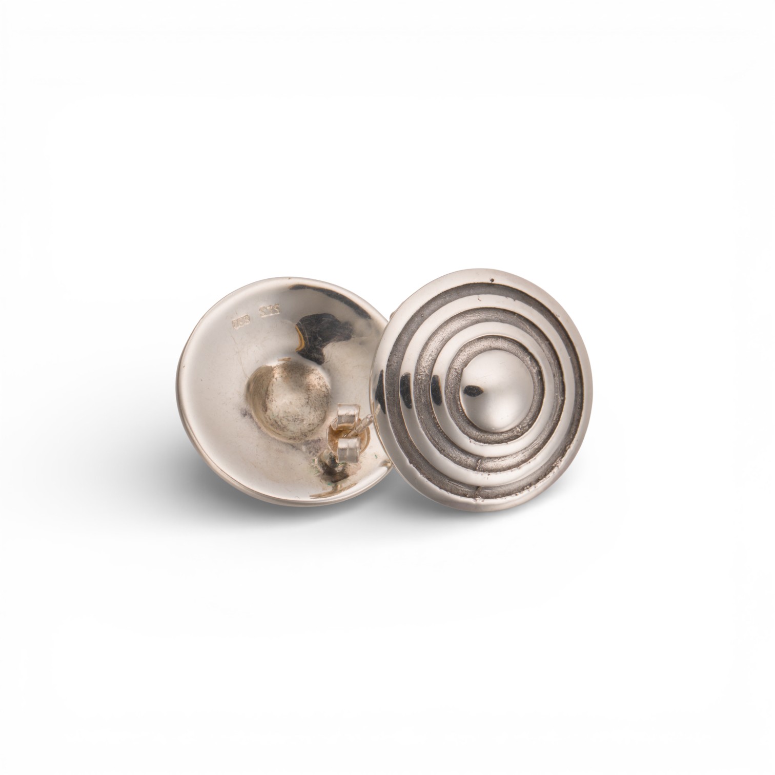 Par: Skjold øredobber i sølv. Ansvarsmerket «SLS» for Sandvik Lær & Smykker. Bergen. Sent 1900-tallet.