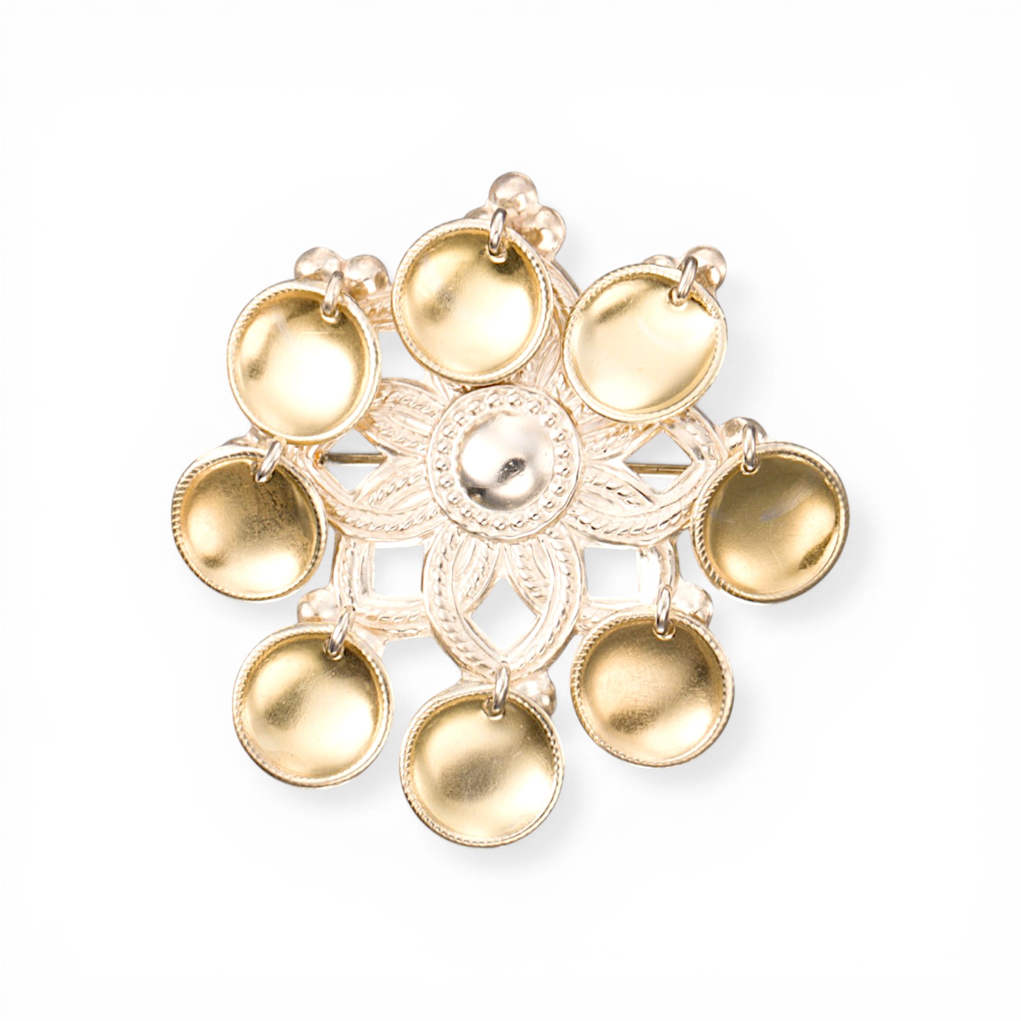 Liten sølje i sølv med åtte forgylte trådkantlauv. Ansvarsmerket for Clemet Berg. Oslo. Tidl. 1900-tallet.