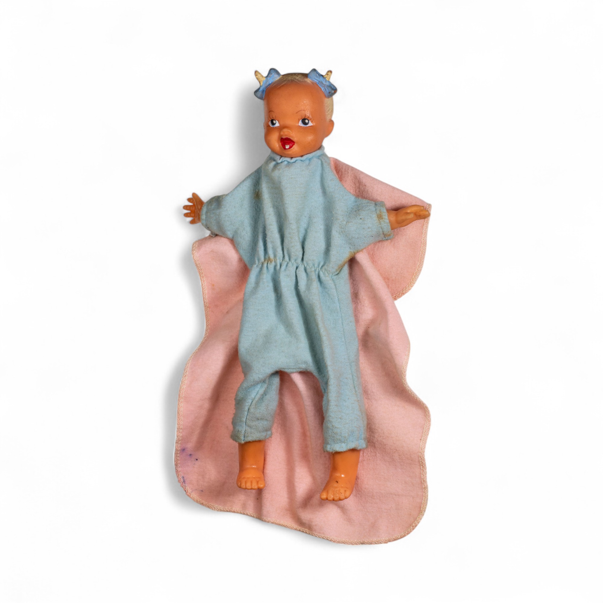 «Den Levende Dukken». Meget uvanlig «Bibbi» vinyl fingerdukke i original eske. Tomte Lærdal, Stavanger. 1900-tallets andre halvdel.