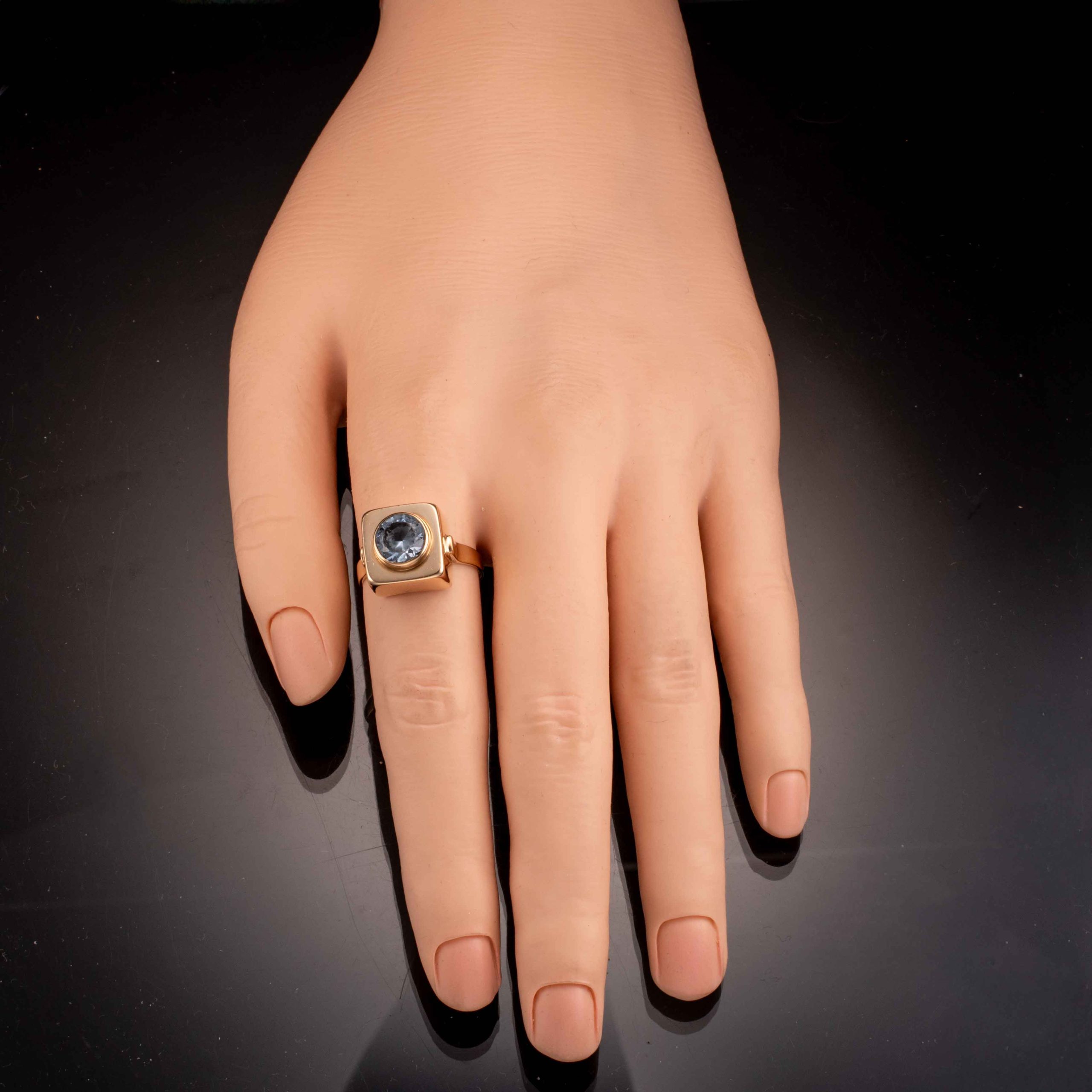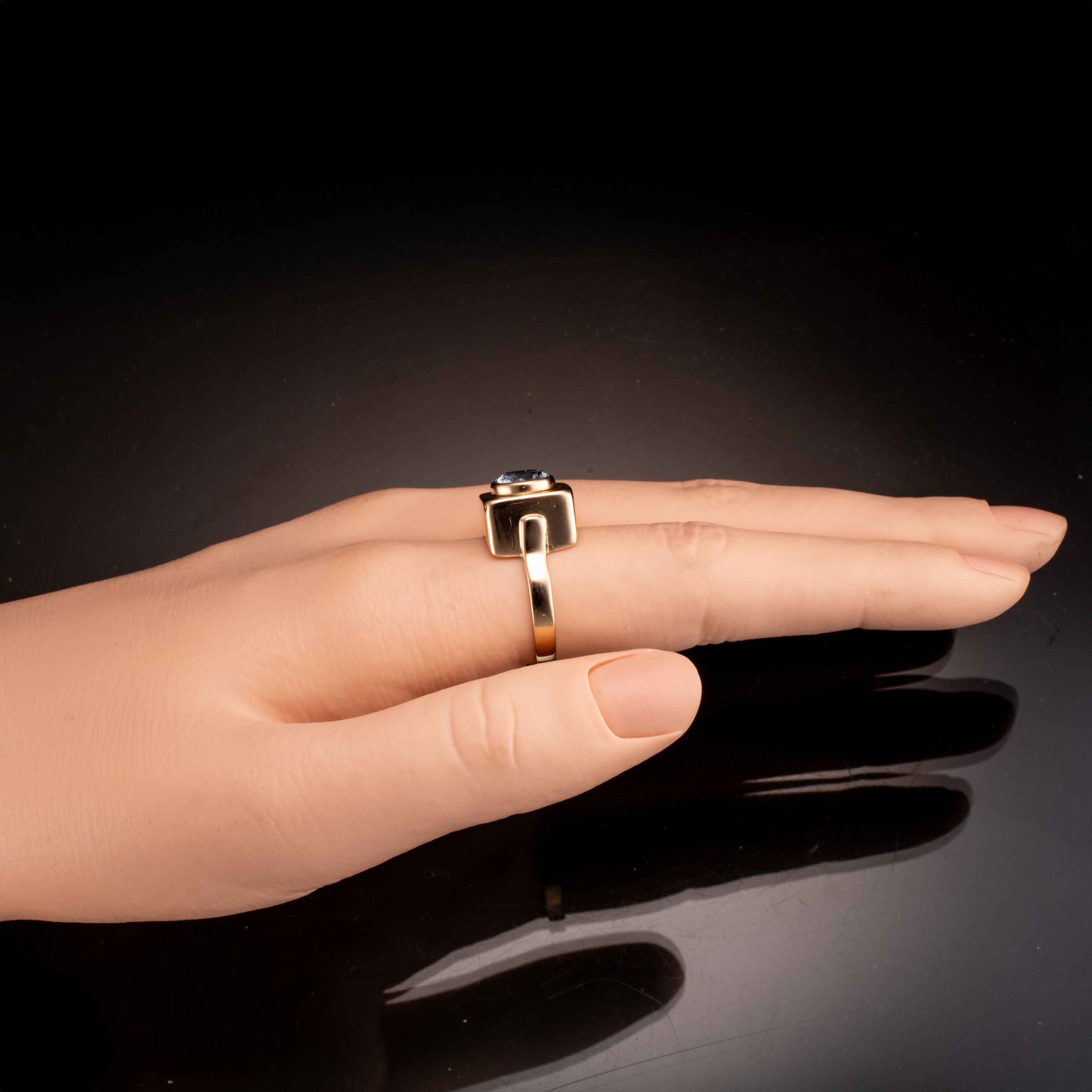 Ring i 14 karat gult gull. Fattet med topas i en glatt bokskrone. Ansvarsmerket «GIFA» for Guldsmed Inkøbsforening. Danmark. Modernisme. 1900-tallets andre halvdel.