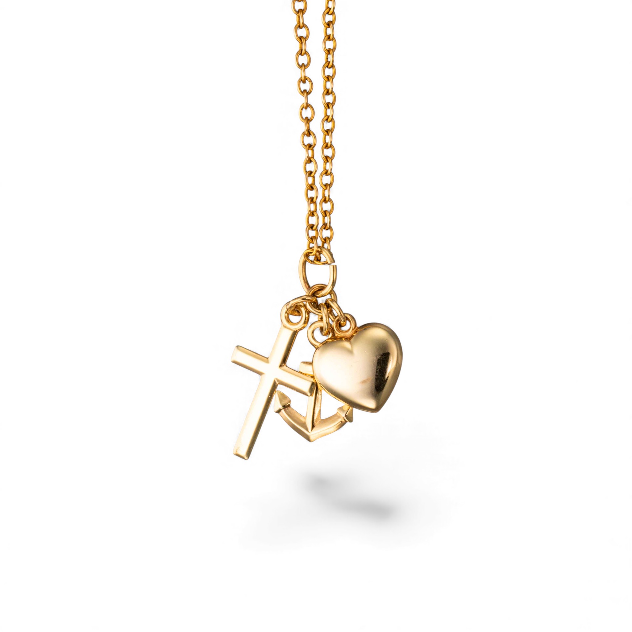 Tro – Håp – Kjærlighet anheng, charm, gult gull